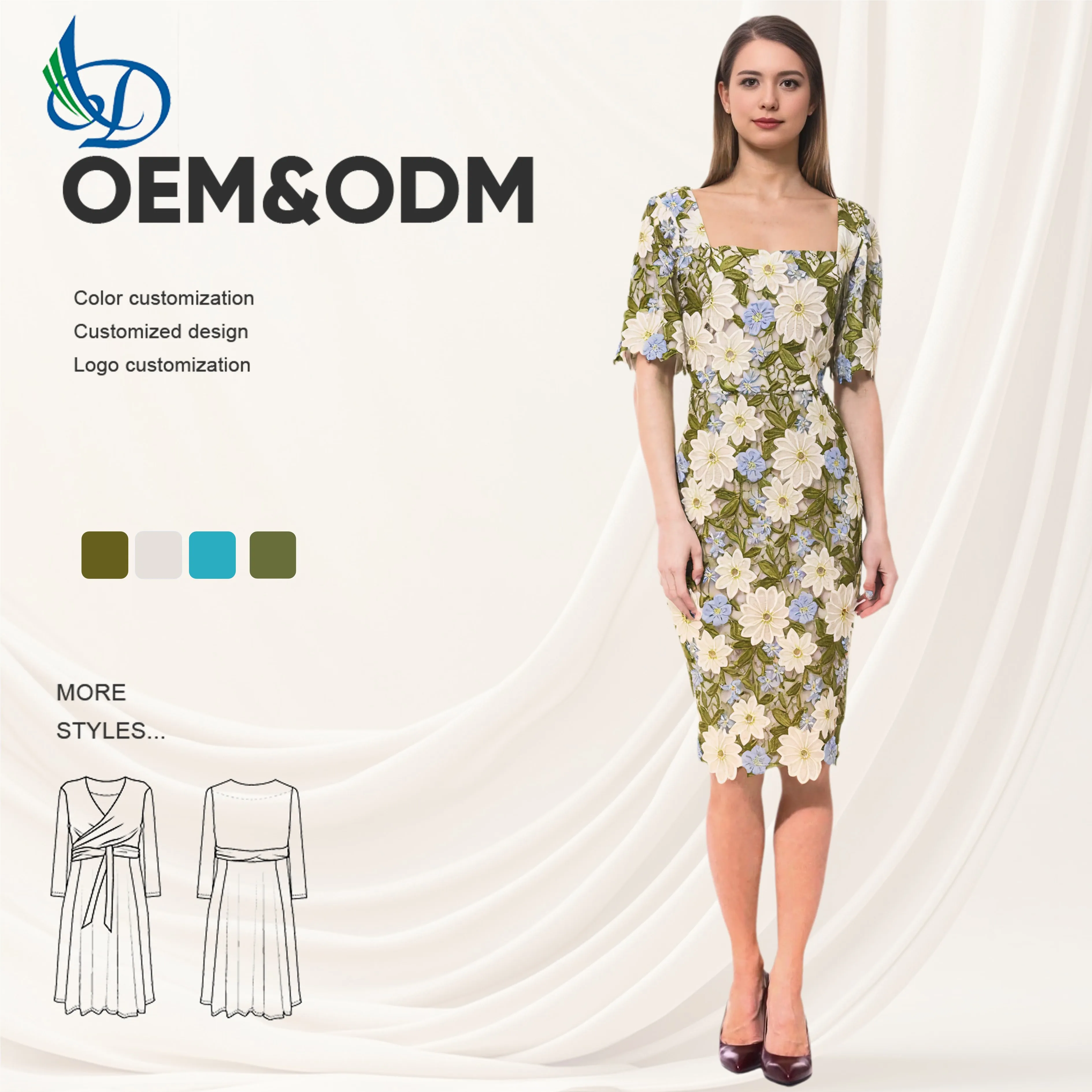 ZYHT 73902 Dark Green Blue Long Sleeve Simple Elegant Evening Dress Customize High End Women Clothing Manufacturer