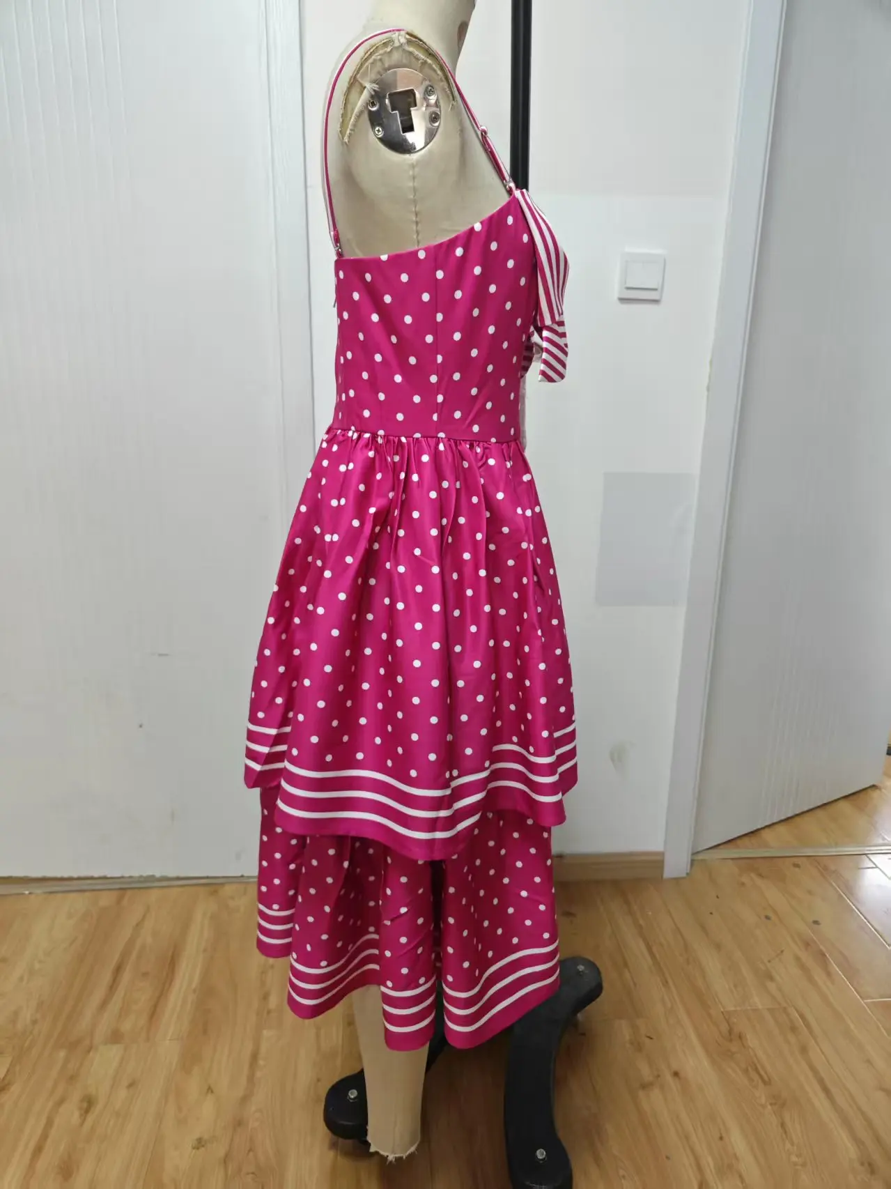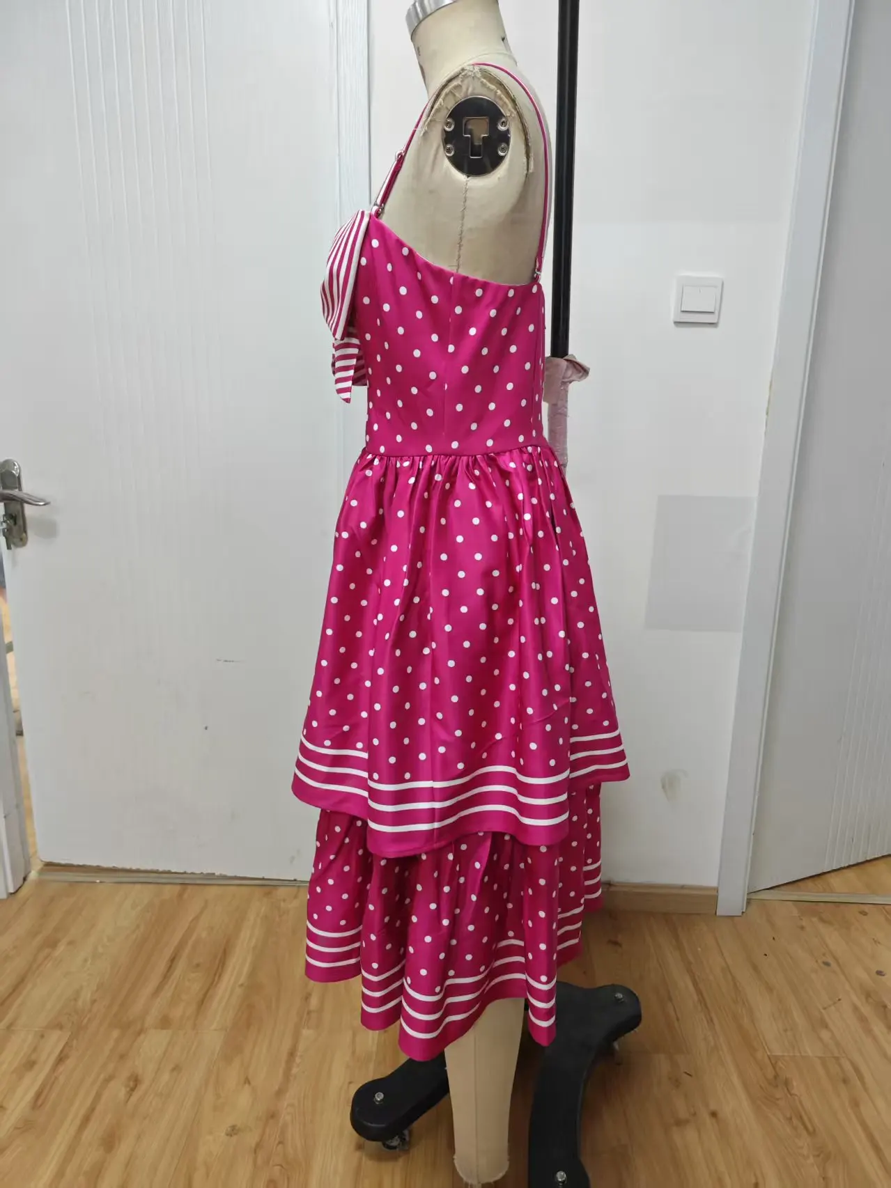 Bohemian Women's Summer Casual Dress with Digital Printed Striped Dress and Polka Dot Printed Bow Decoration Dress