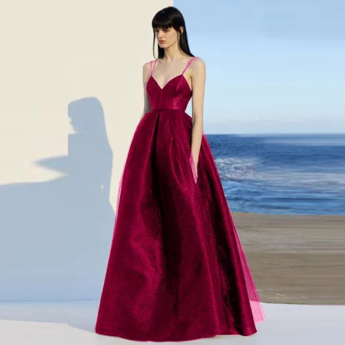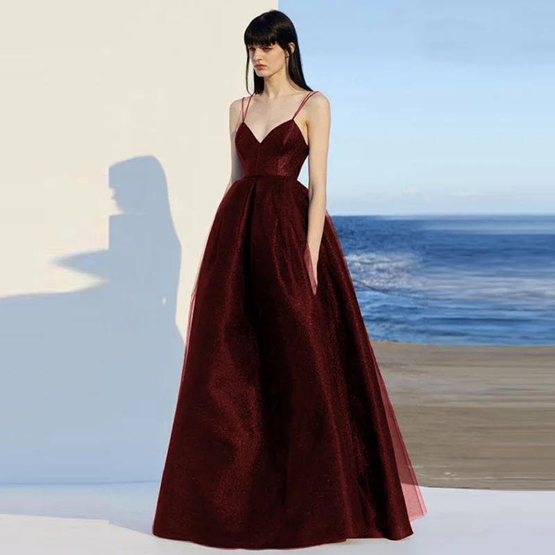Elegant Spaghetti Strap Evening Guest Prom Long Party Dresses for Women Sexy Deep V Neck Backless Summer Wedding Dress