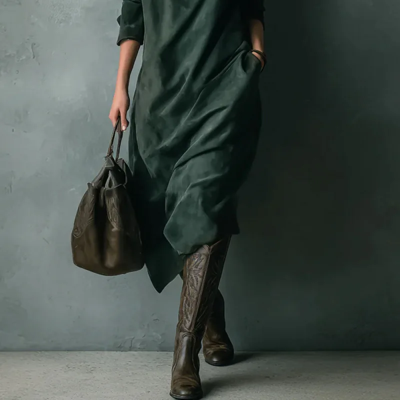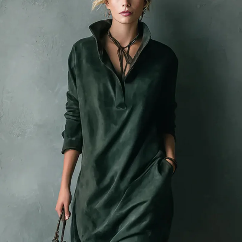 ZYHT 73902 Dark Green Blue Long Sleeve Simple Elegant Evening Dress Customize High End Women Clothing Manufacturer