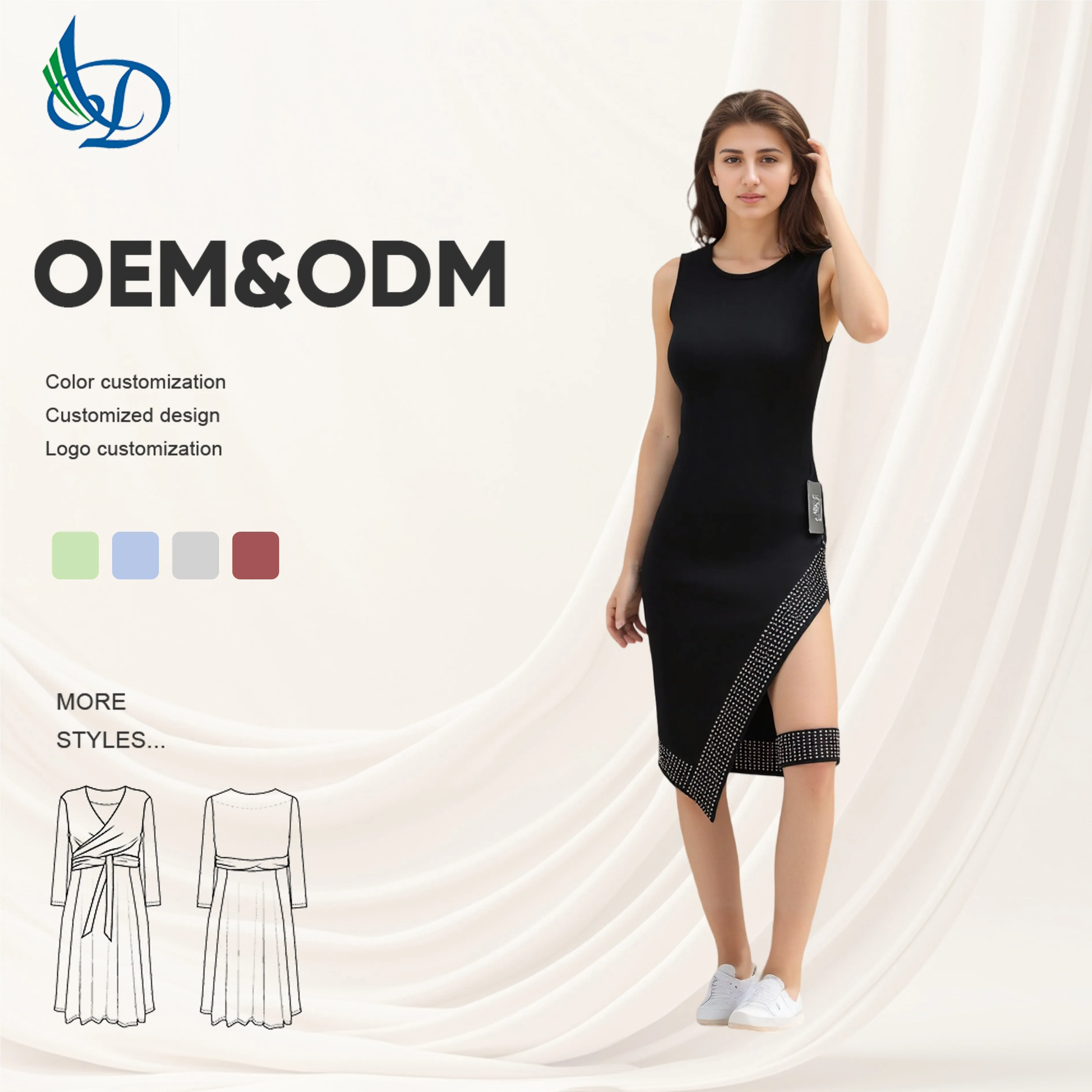 Fashion Wholesale Ladies Girls Midi Natural Waist Elegant Customized Casual Ruffle Hem Sleeveless Dress