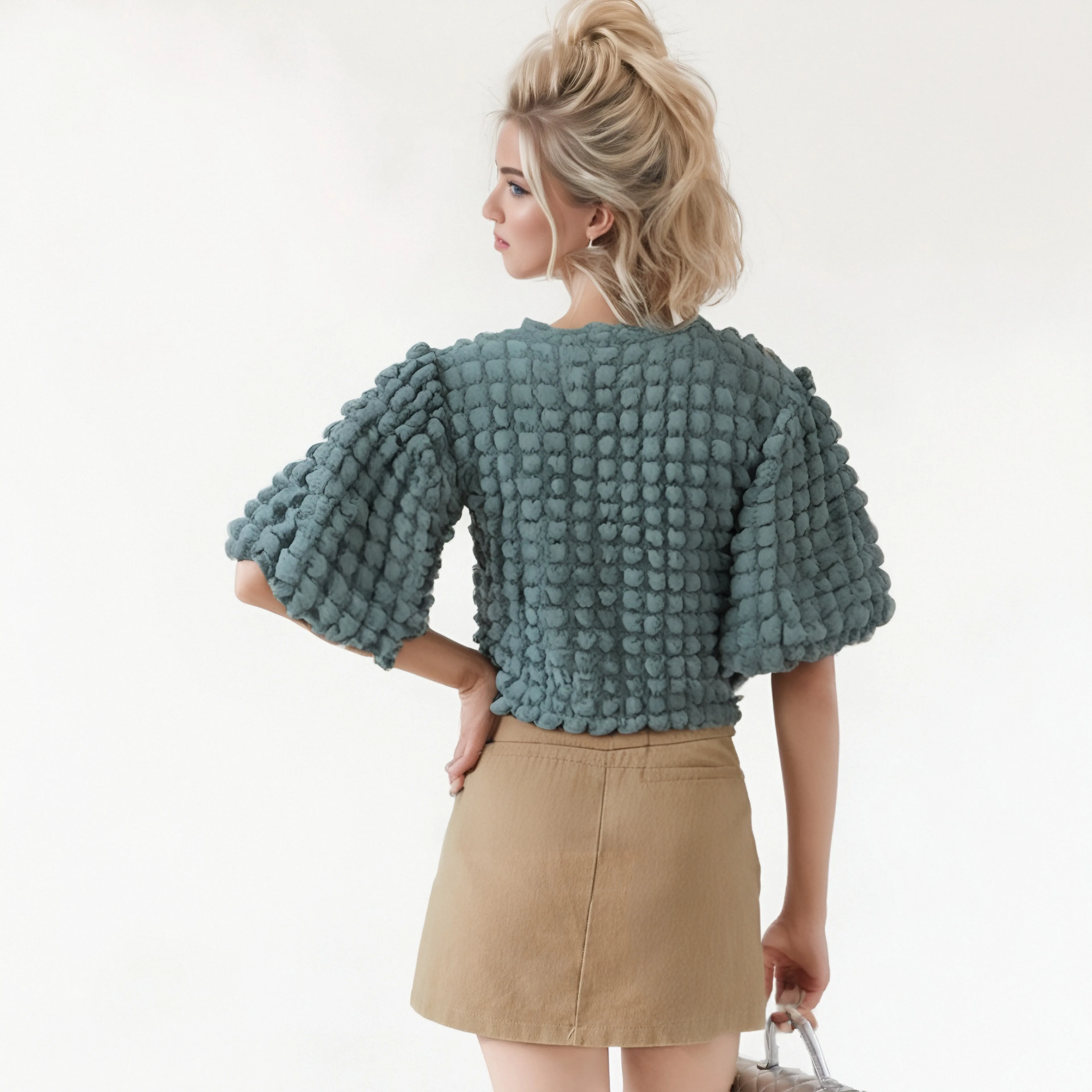 ZYHT 82055 Casual Summer Women's Black Peplum Top Blouse Contrast White Lace Scalloped Hem Puff Sleeves Fabric Floral Pattern