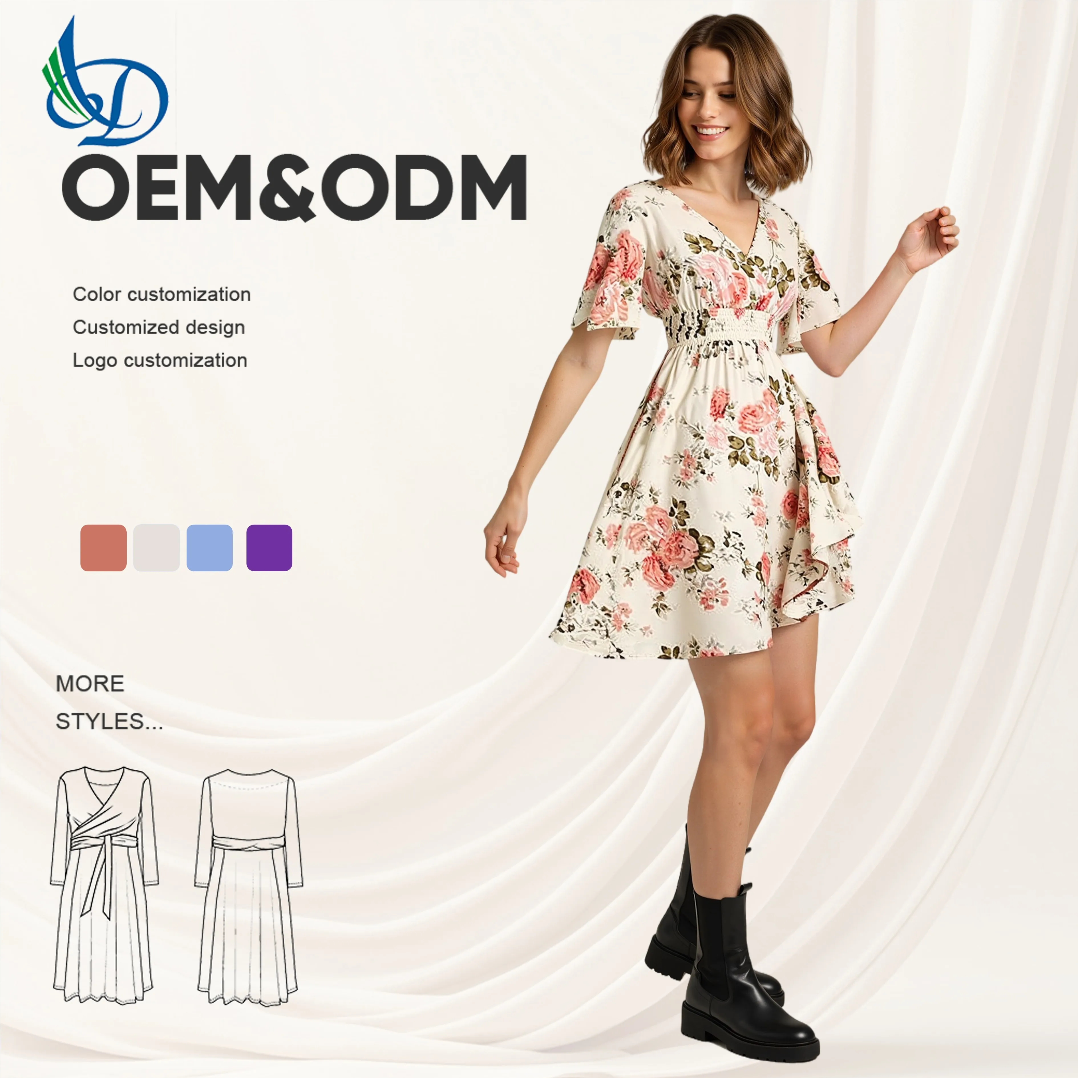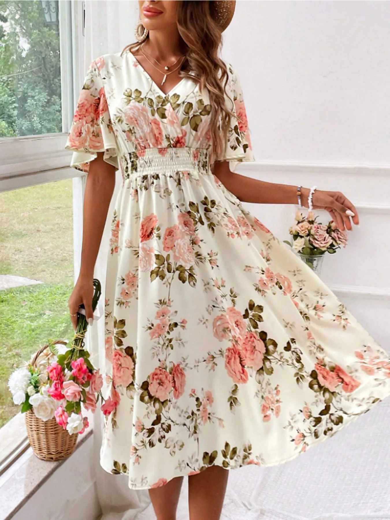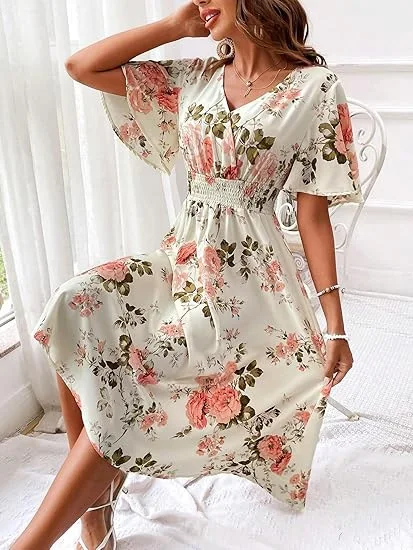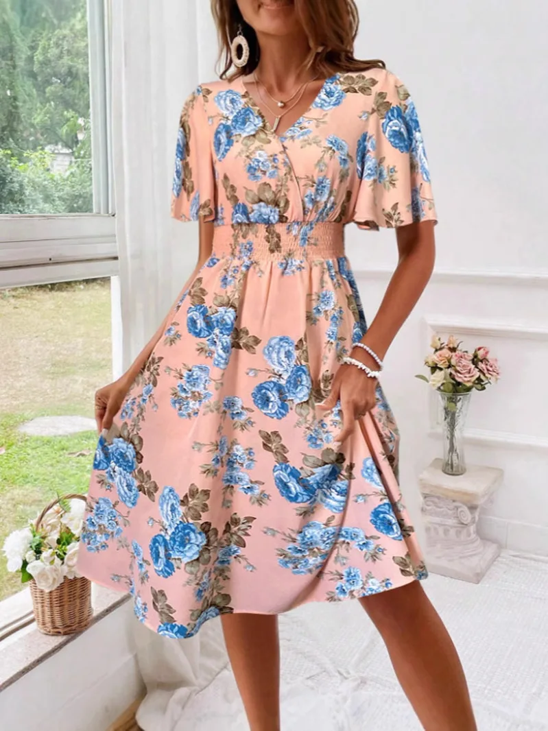 New Plus Size Floral Dress with Plant Flowers for Women's Slim Fit and Slimming Vacation Long Skirt Wholesale in Stock