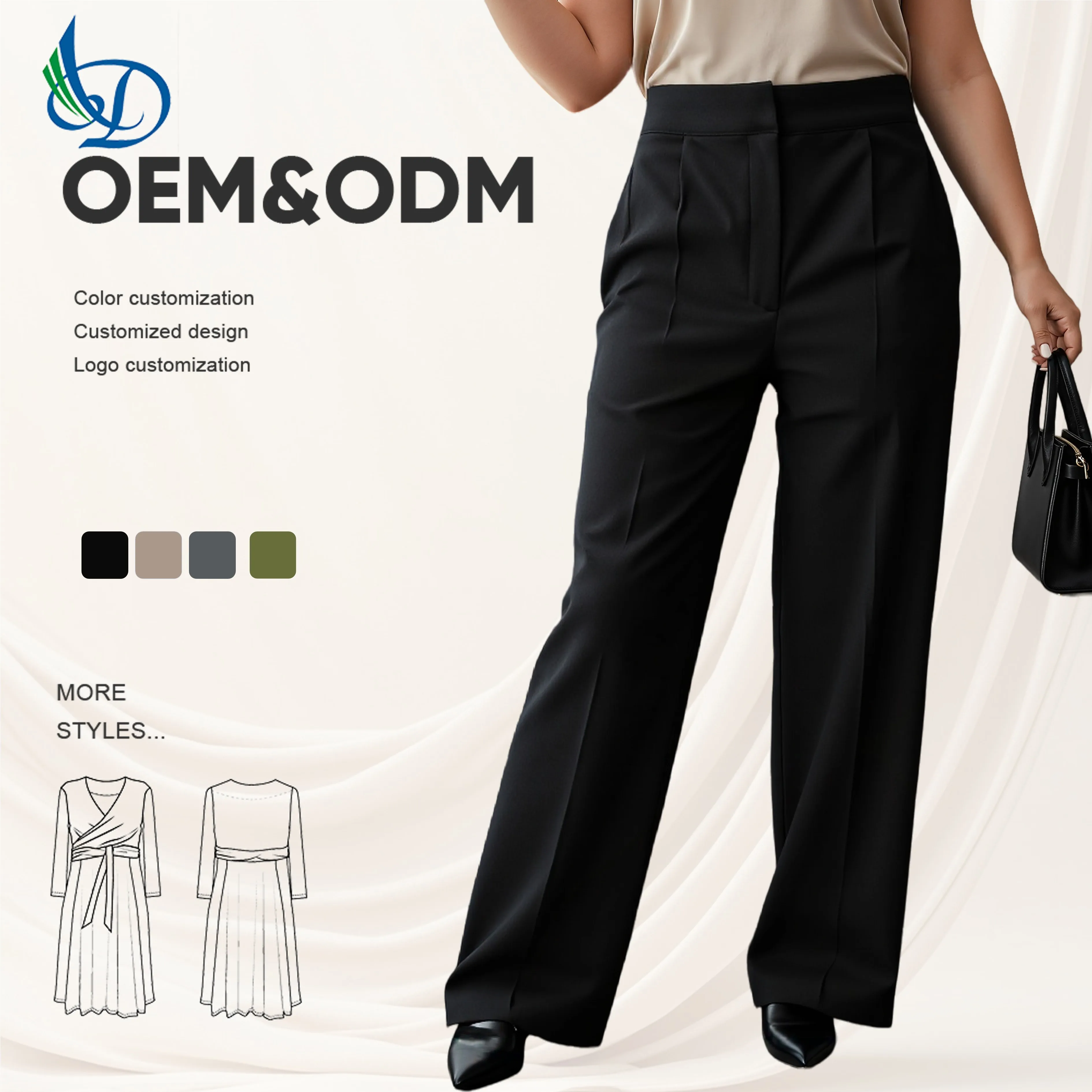 Women's Formal Office Pants with Solid Zipper Fly and Straight Leg Pockets Design for Spring