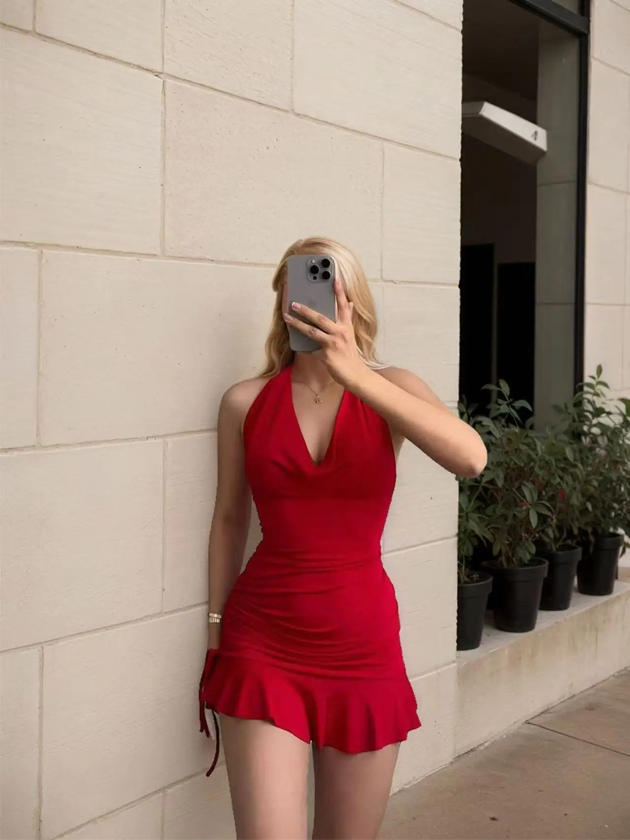 2026 Summer European American Style Sexy V-Neck Solid Mini A-Line Dress Girls Slimming Natural Waistline Breathable Eco-Friendly