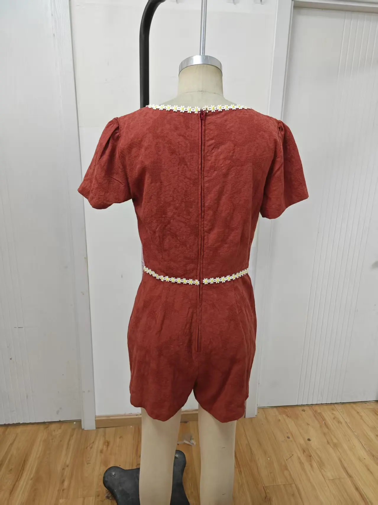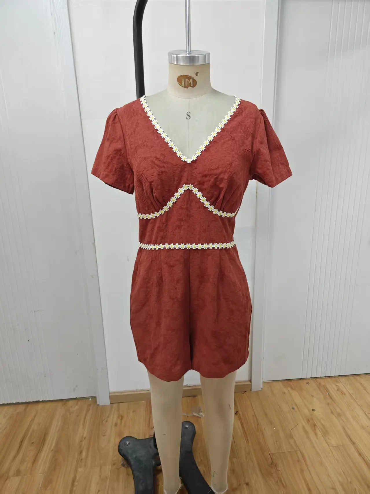 Women's Casual V-Neck Jumpsuit with Lace Solid Color Skinny Fit Formal Summer Style Above Knee Length