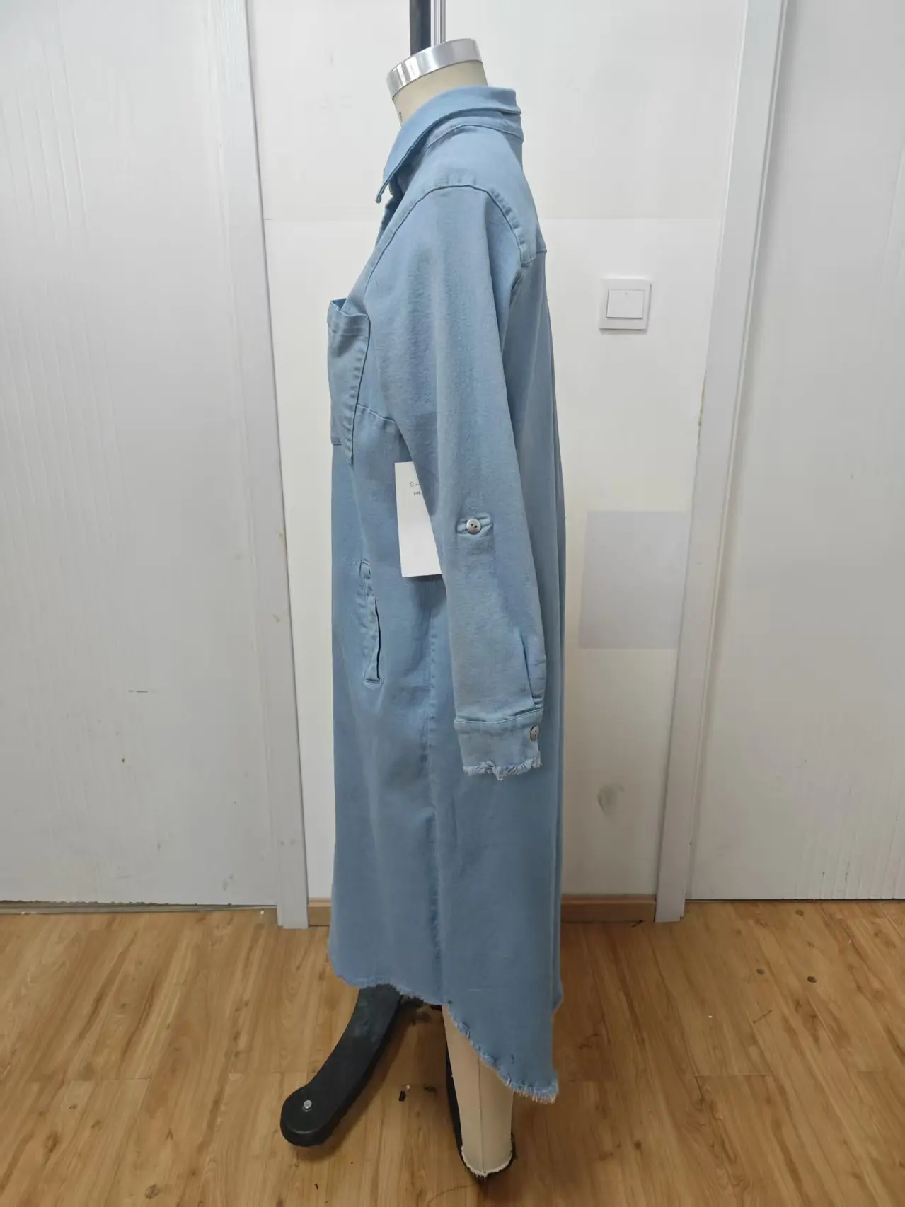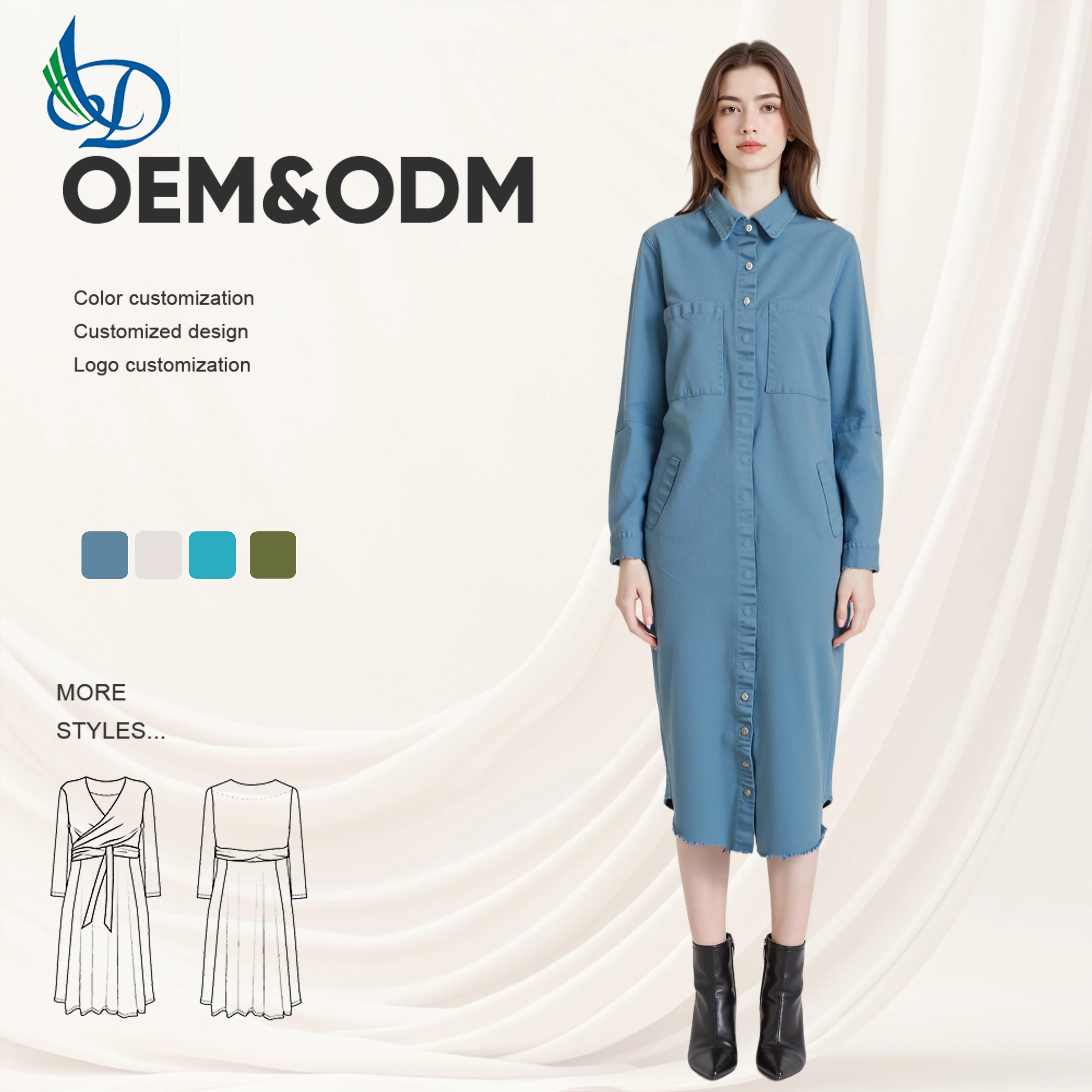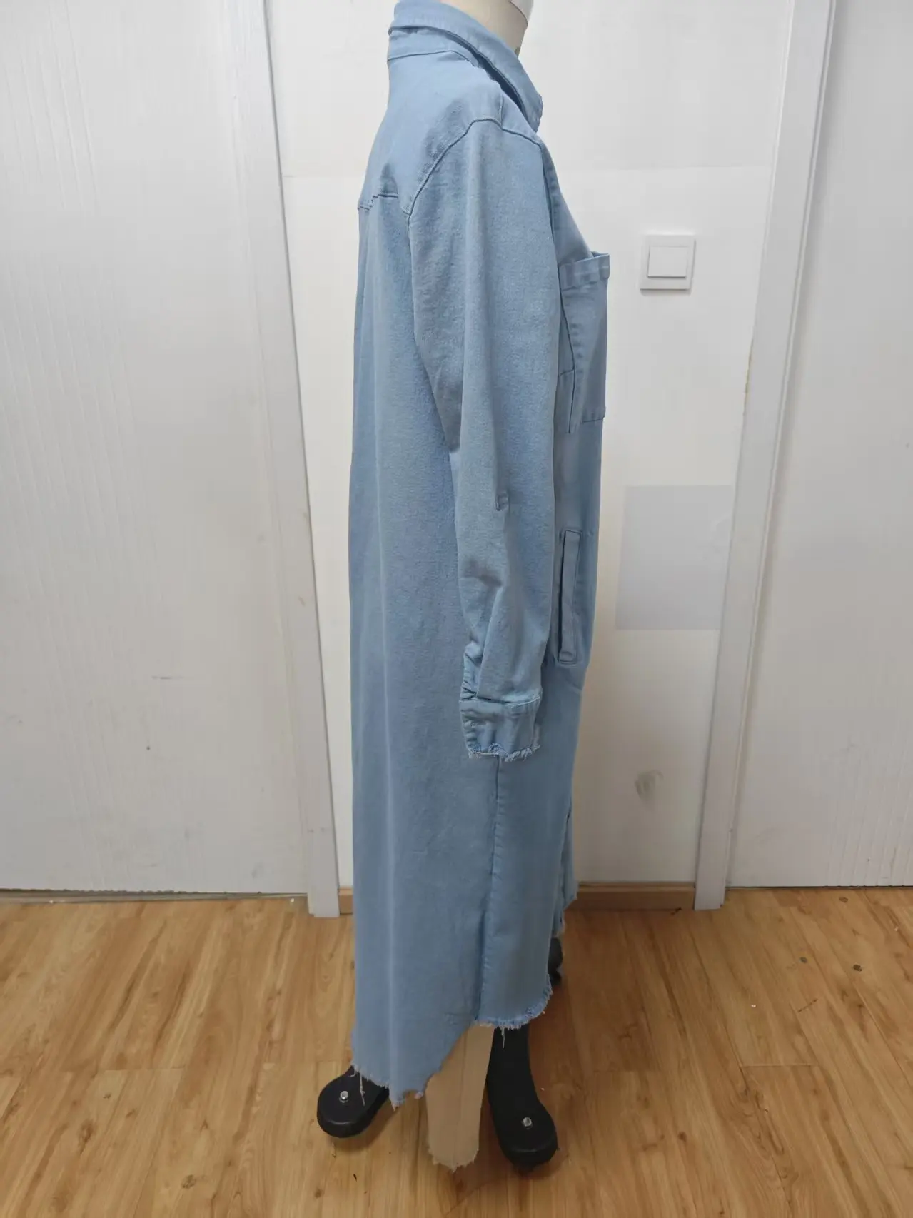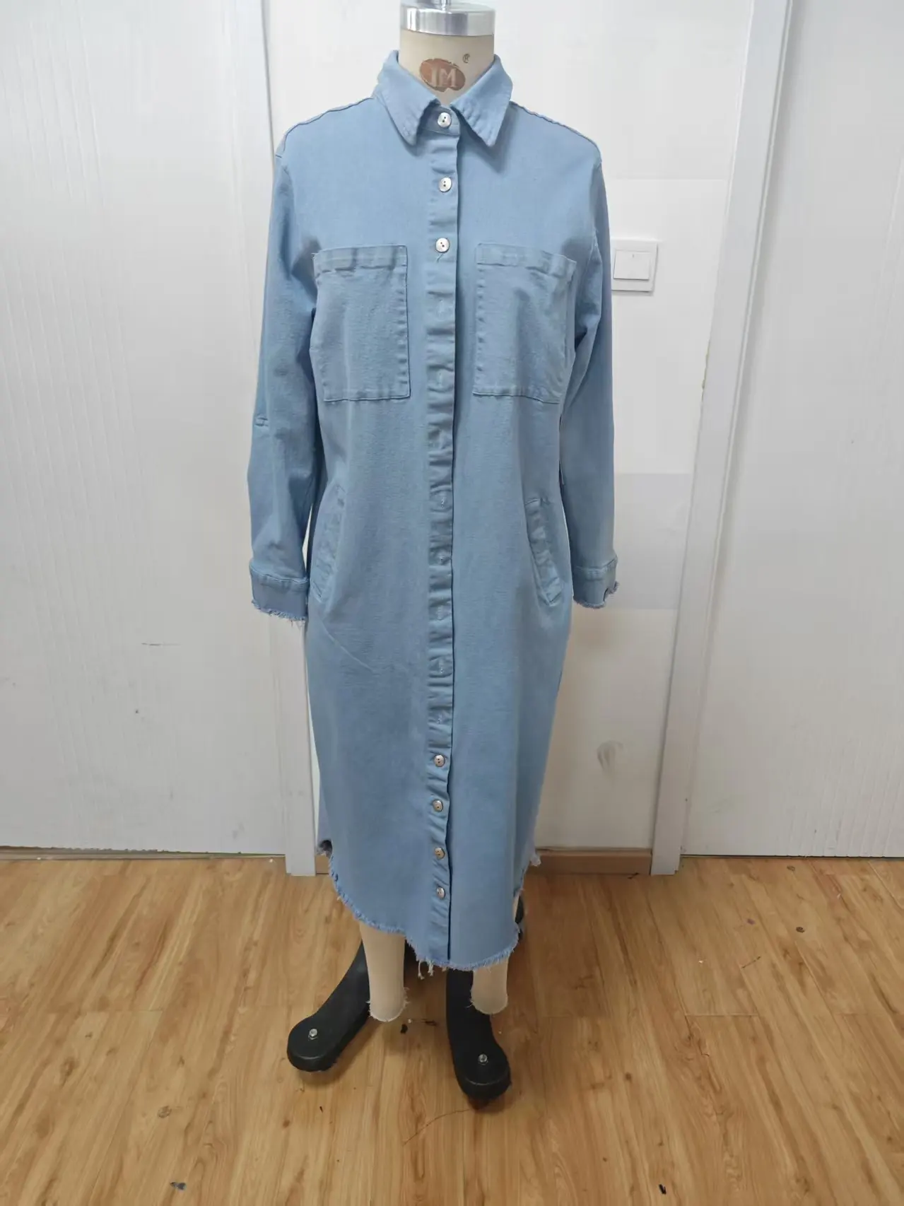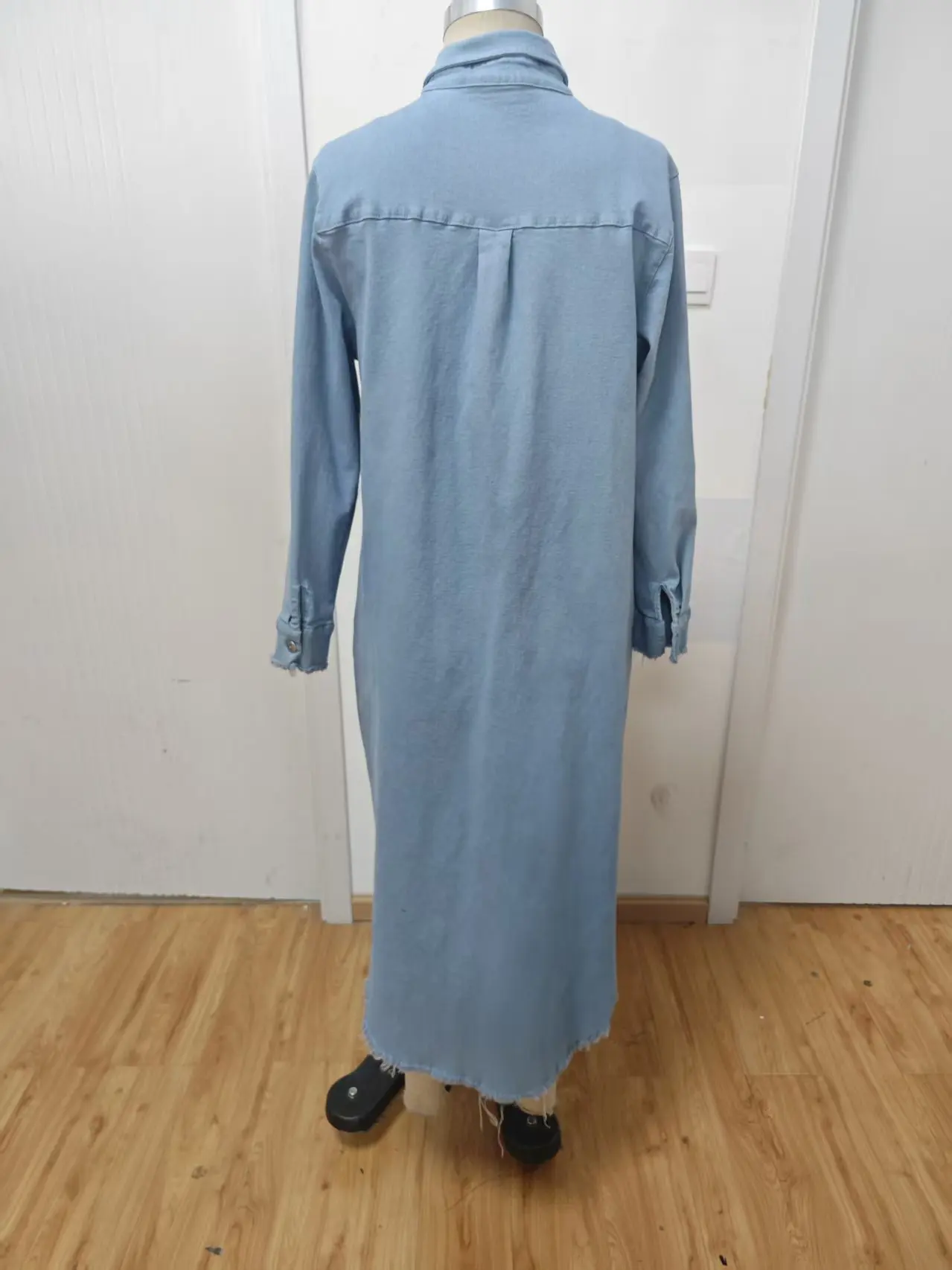 Women's Casual Dress with Long Buttons and Decorative Long Skirt, Solid Color Blue Denim, Spring and Autumn Casual Wear