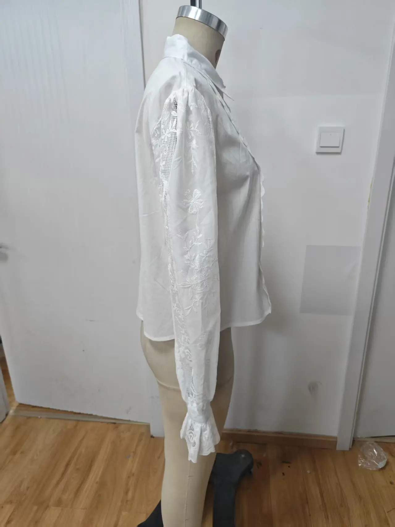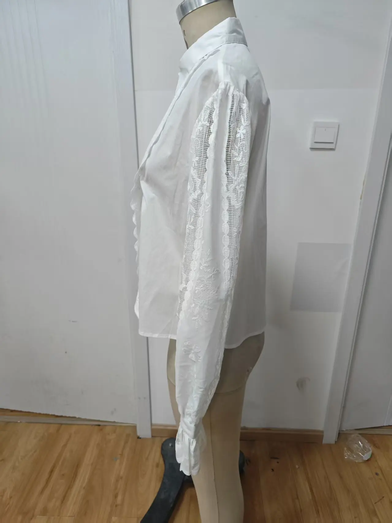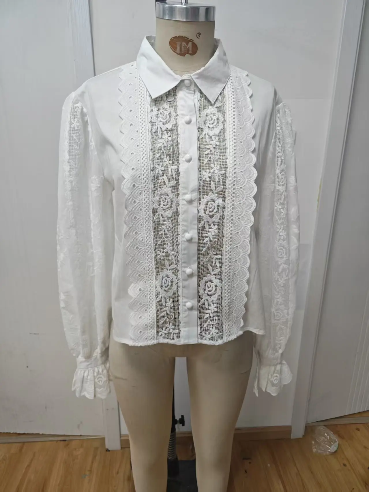 2026 New Women's Chic Retro Style Flower Lace Bubble Sleeve Shirt Casual Outdoor Spring Woven Clothing Simple