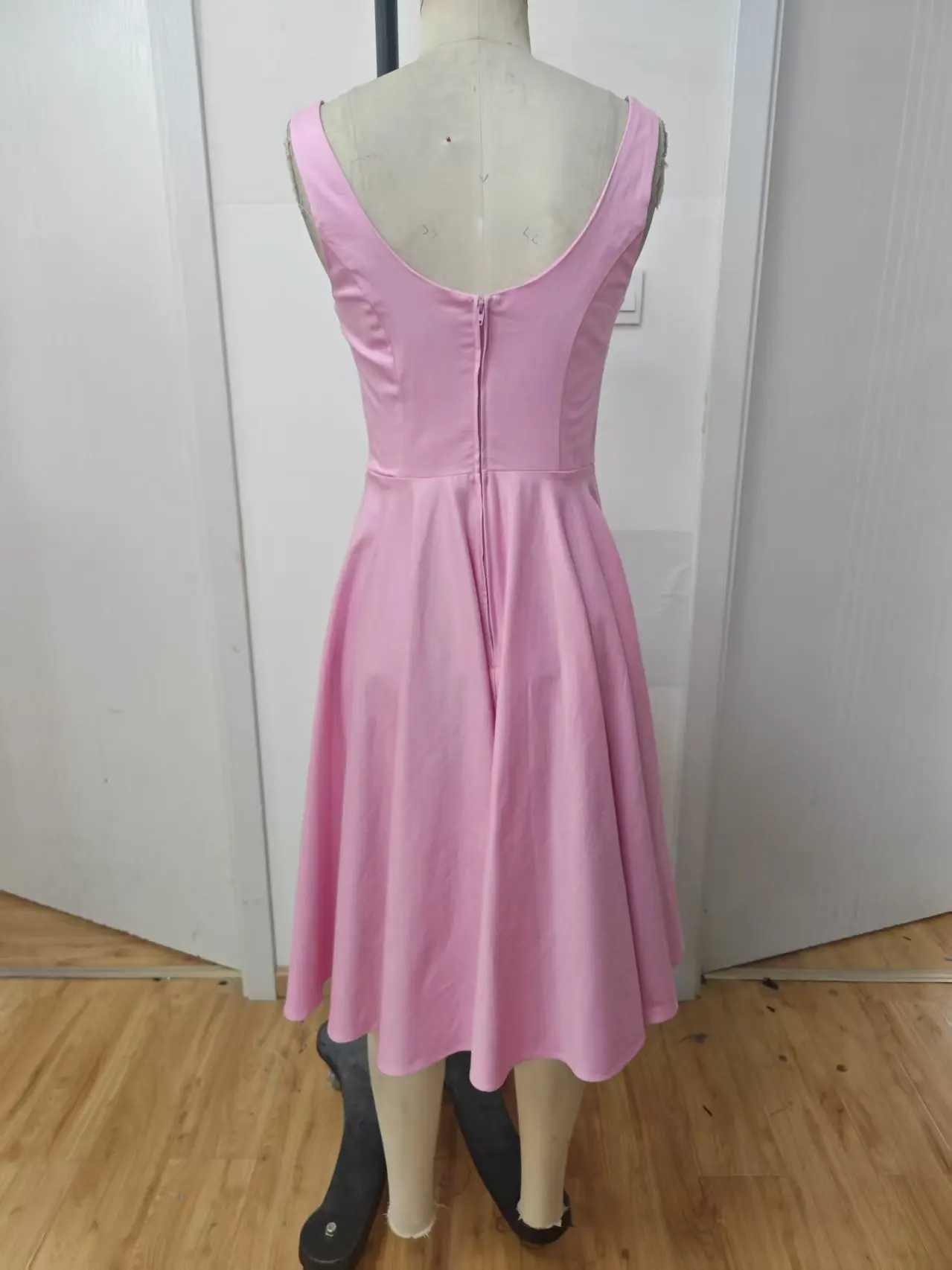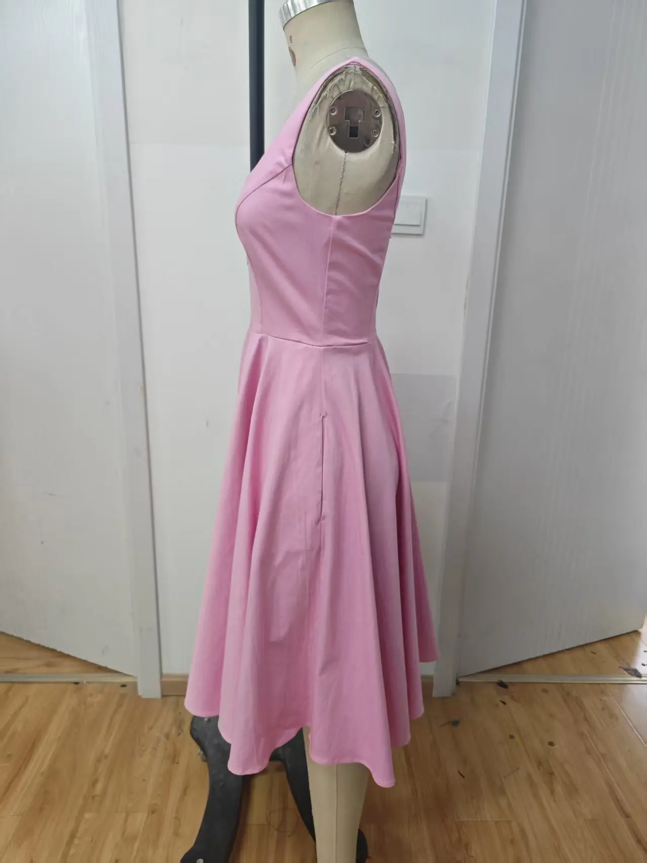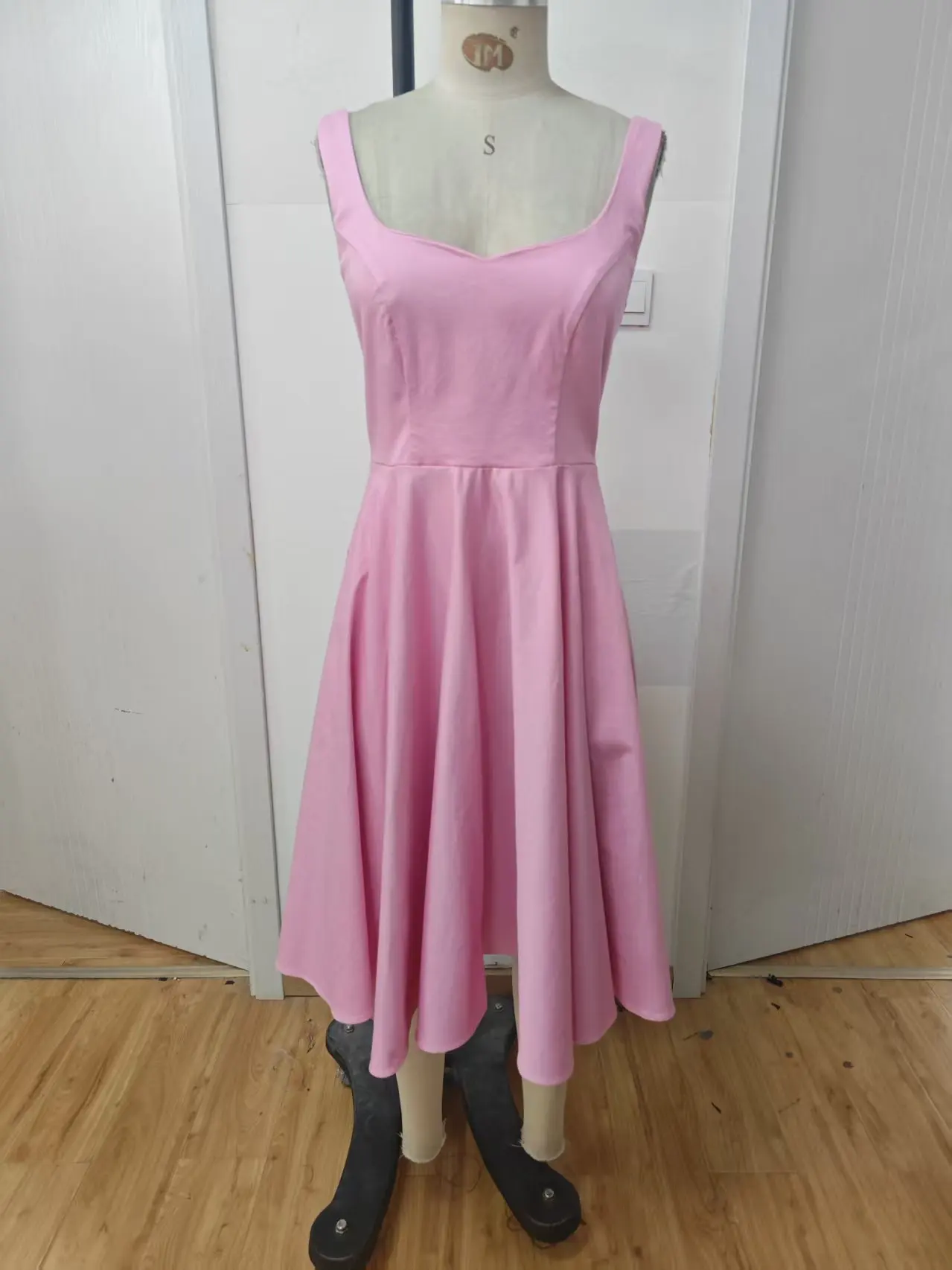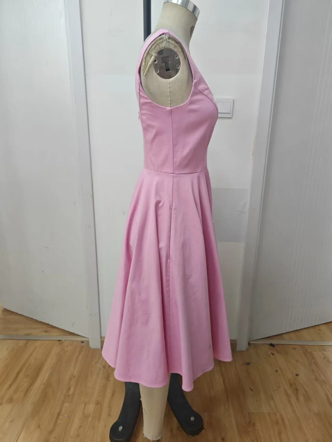 Women's New Fashionable Linen Summer Dress Casual Elegant Party Midi Solid Breathable Natural Waistline Eco-Friendly Sexy