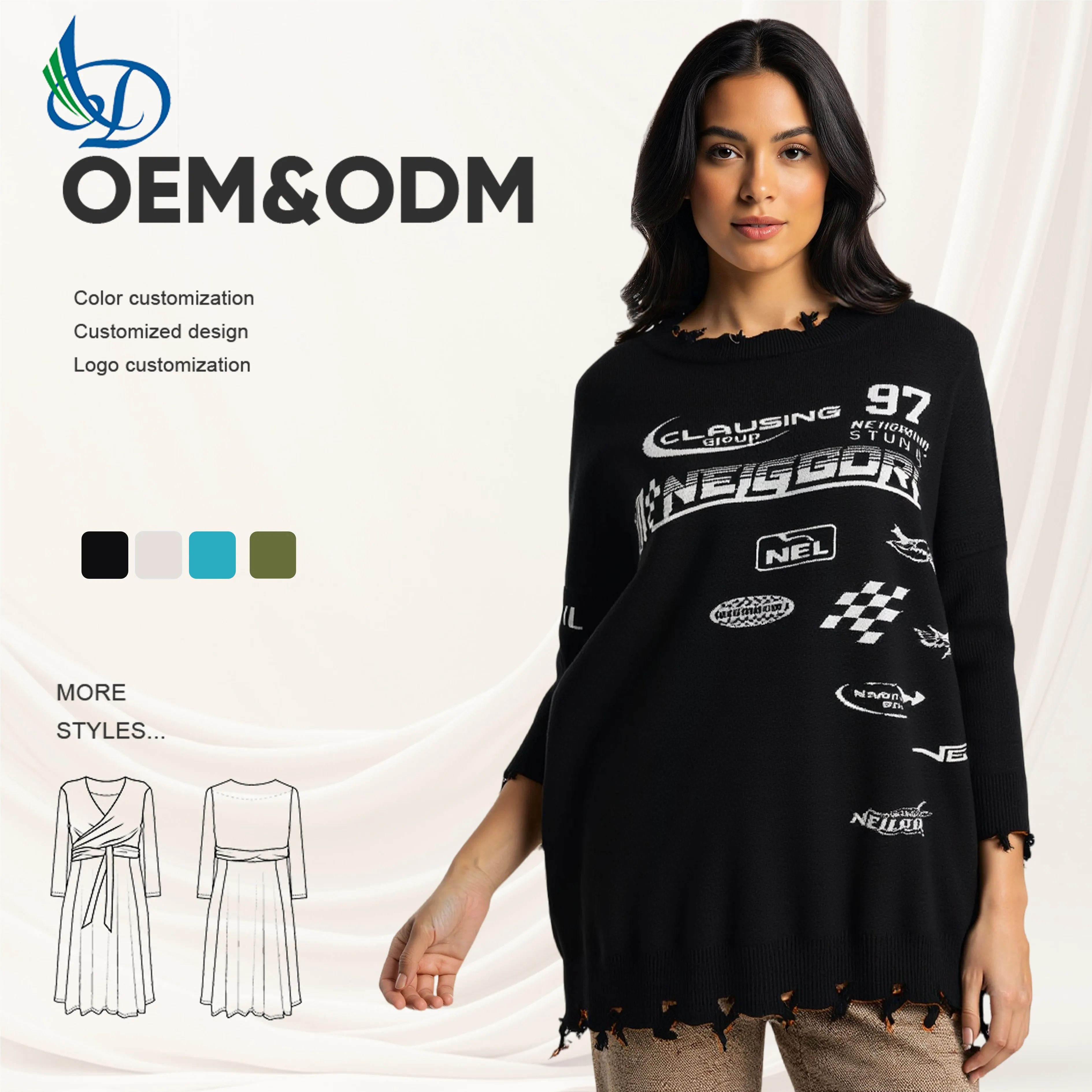 Women's Autumn Sweater, Printed Solid Color Sweater, Breathable Casual Sweater