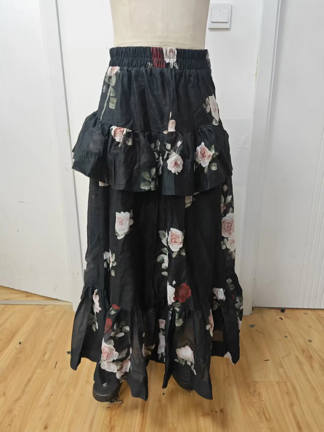 2026 Casual Solid Color Cake Skirt Half Skirt, Decorated with Flower Patterns, Printed Half Skirt, Suitable for Daily Wear