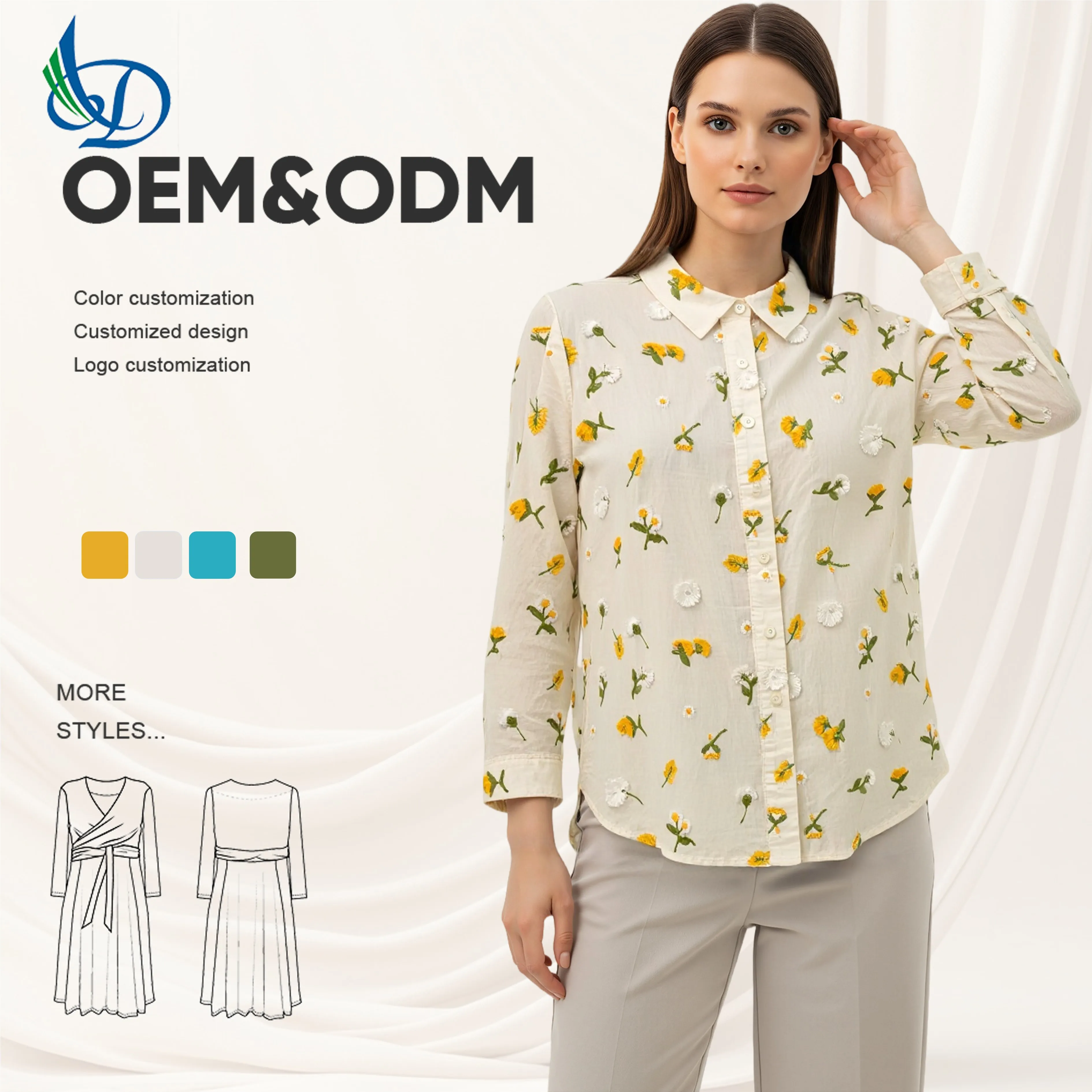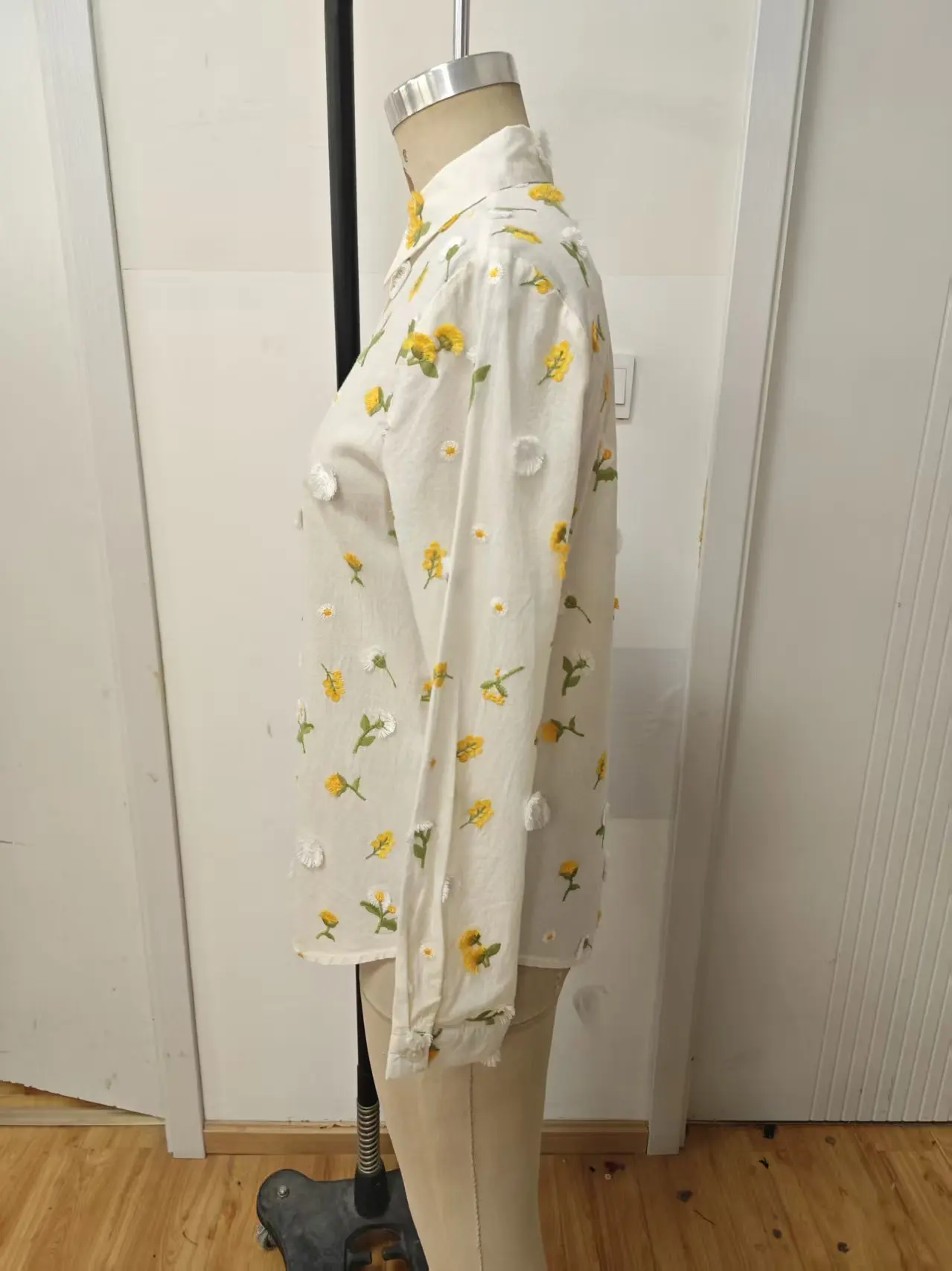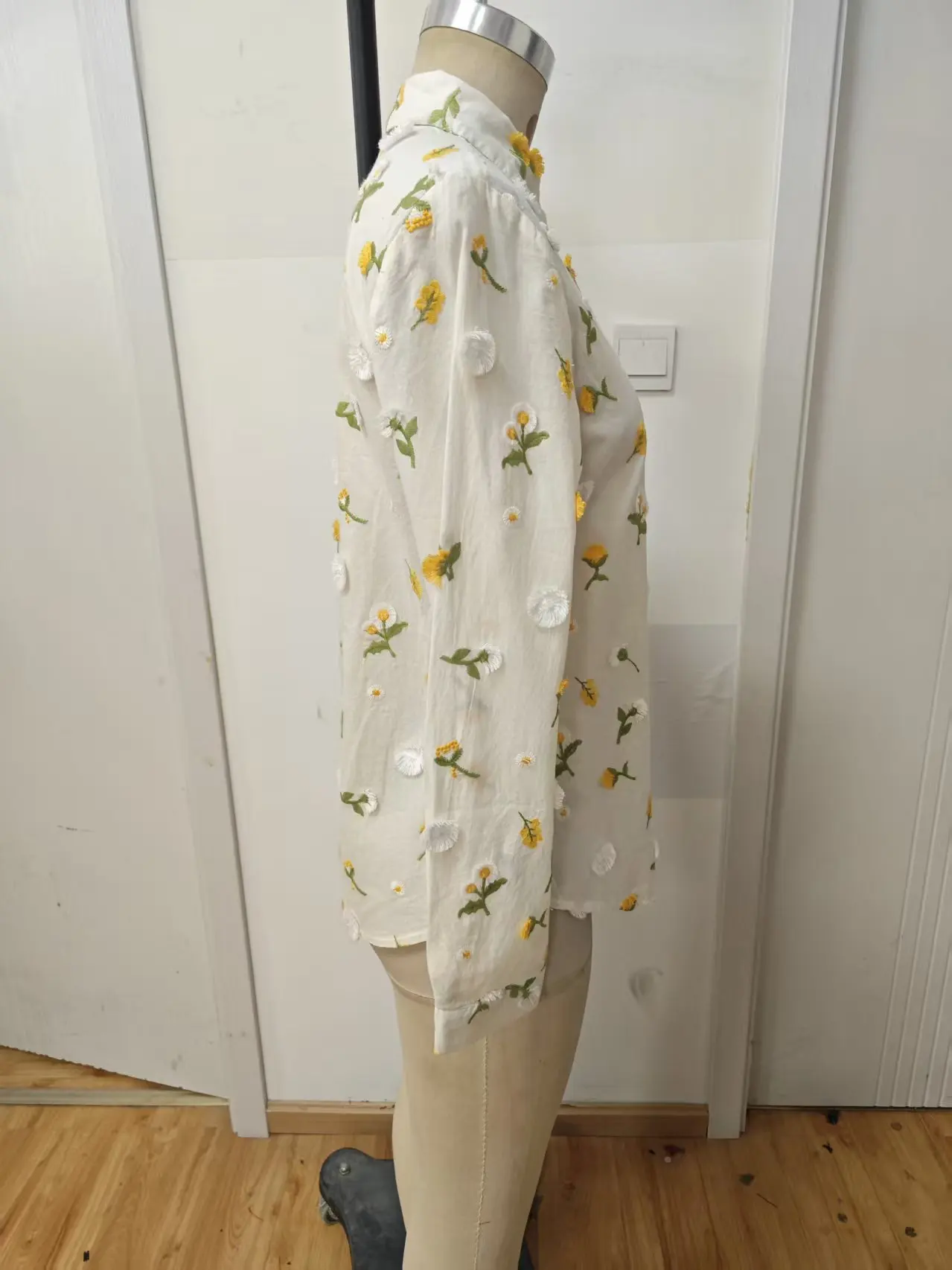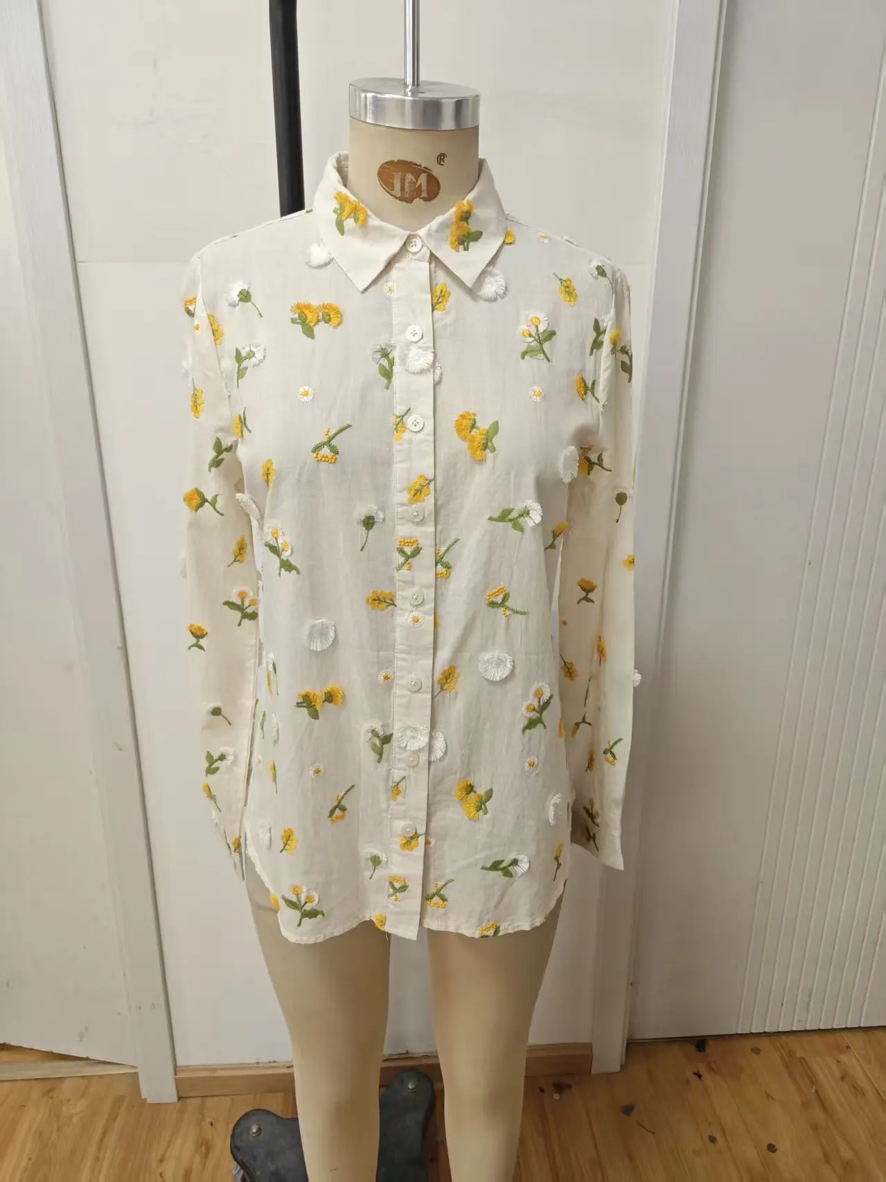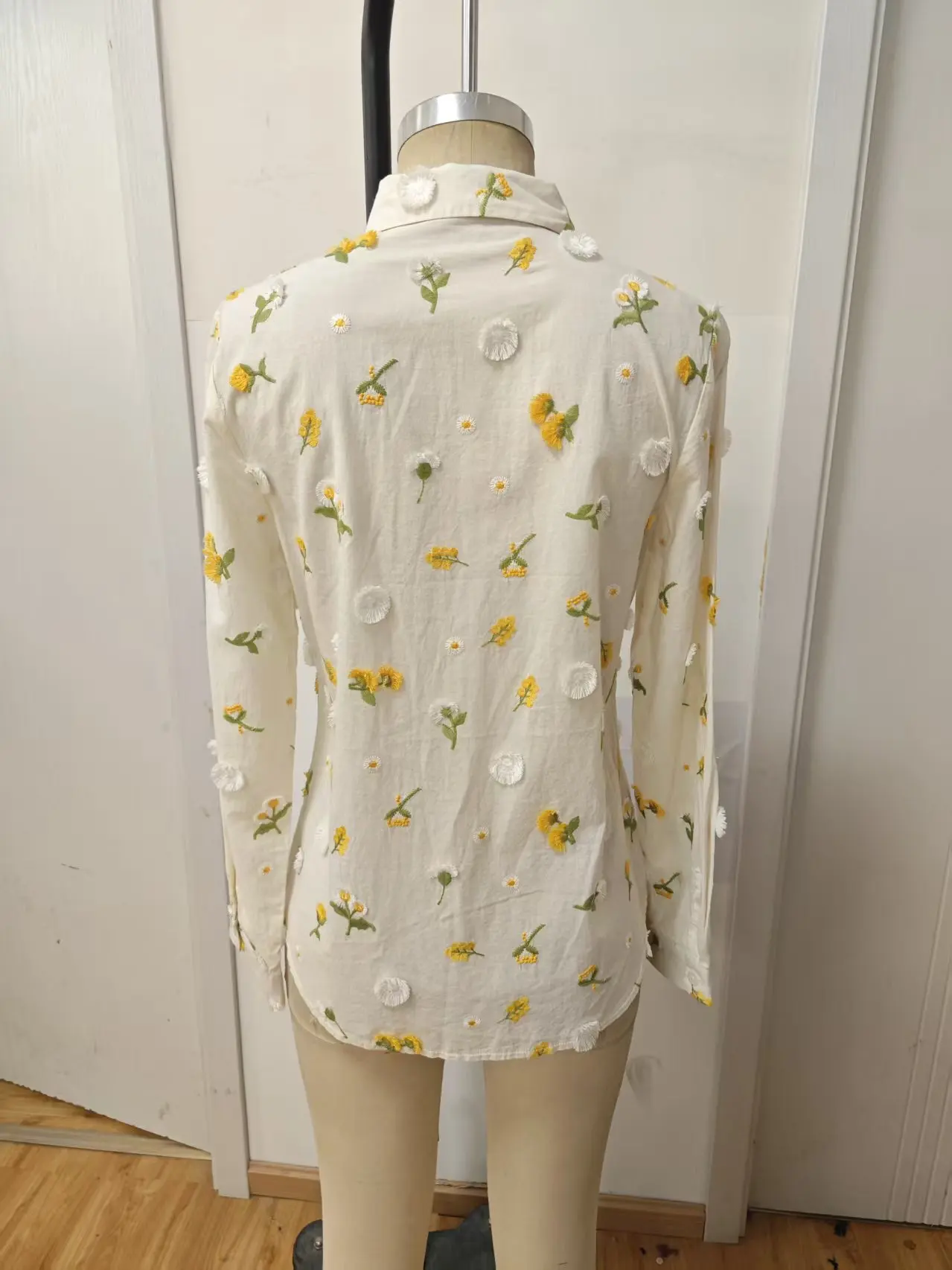 2026 Women's Loose Printed Summer Cotton Shirt Embroidered Flower Yellow Quick Drying Breathable Casual Suitable for Daily Life