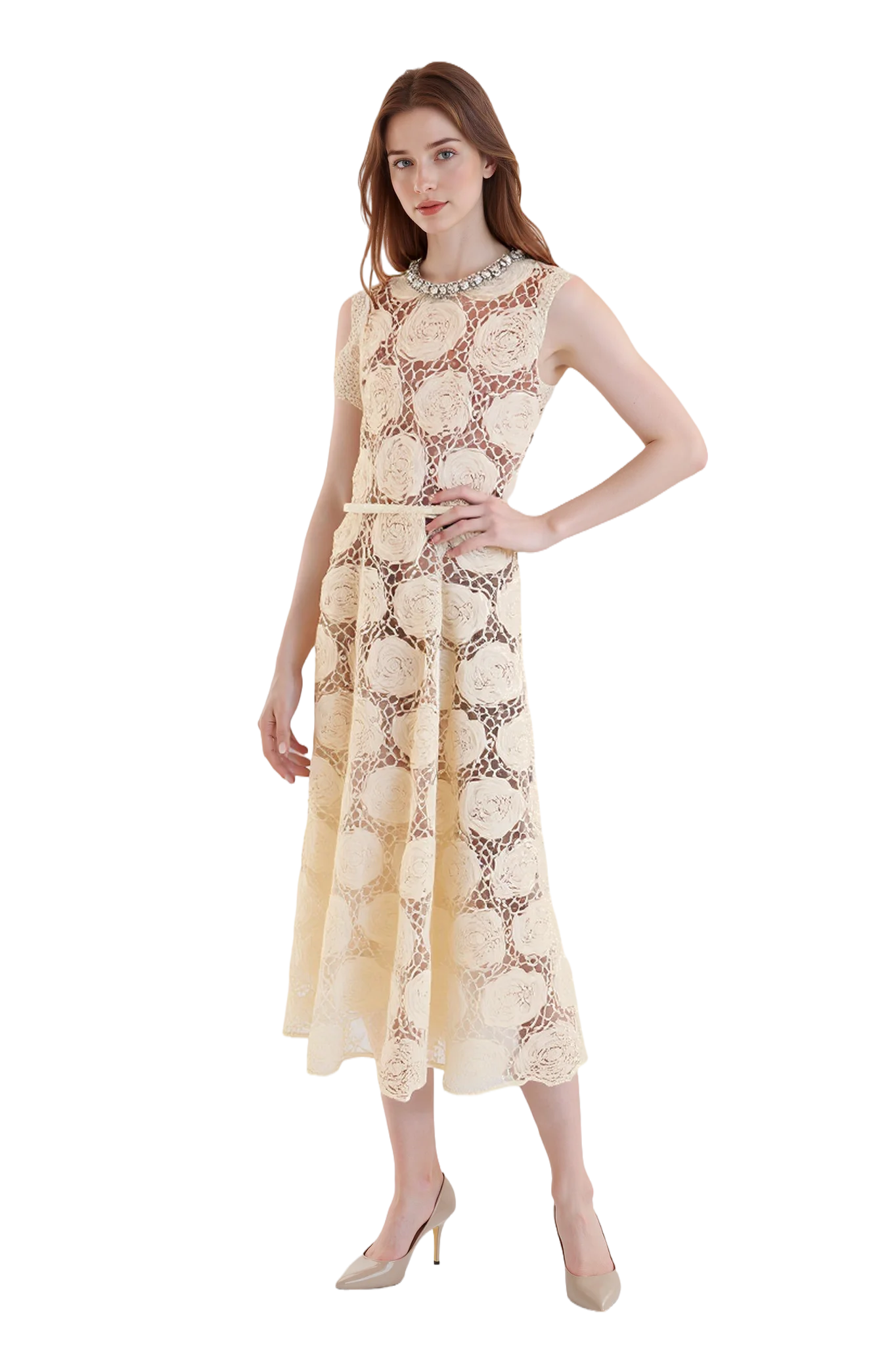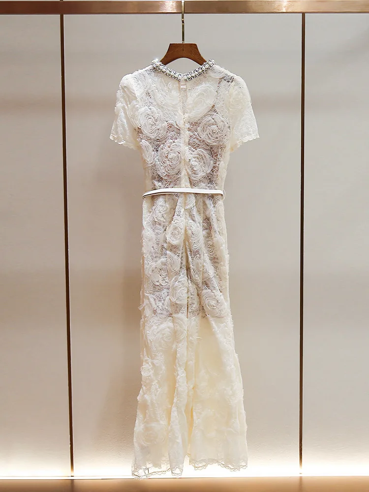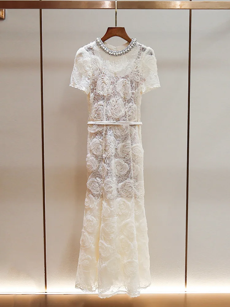 2026 New Women's Casual Diamond Lace Dress, Neck Floor Dragging Long Dress Suitable for Parties