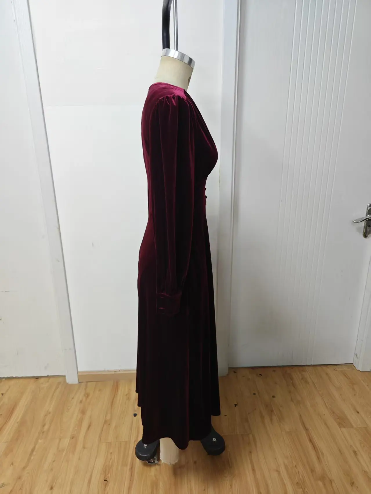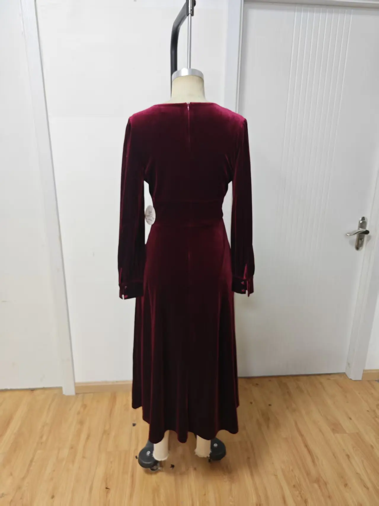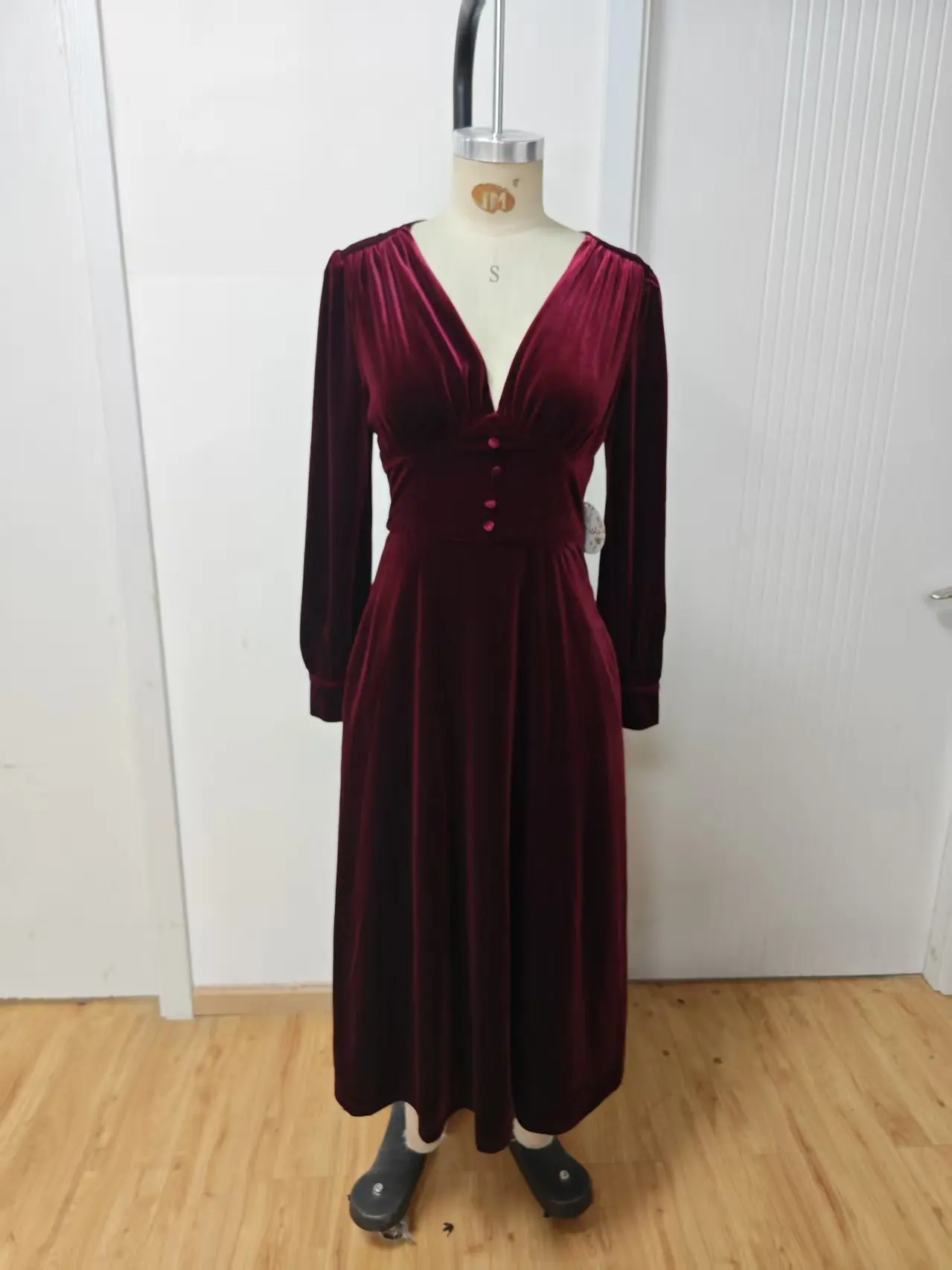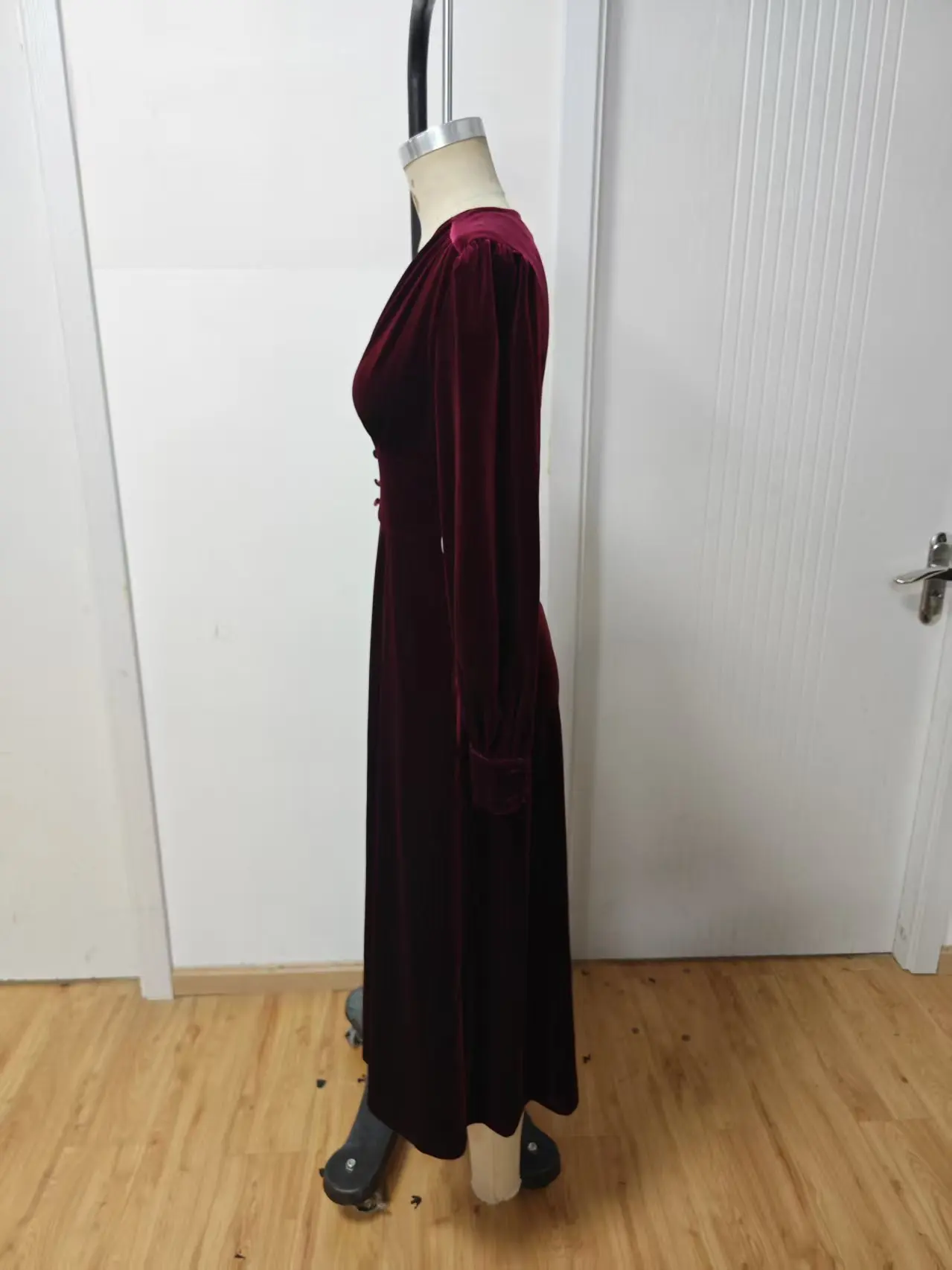 Velvet V-neck Long Dress with Retro Style and Anti-static, Suitable for Autumn Evening Dresses
