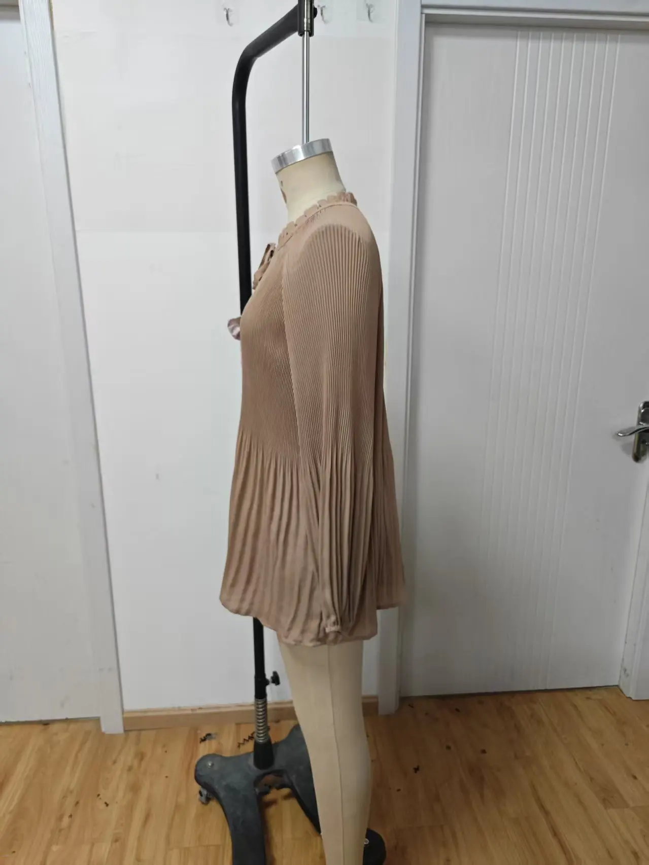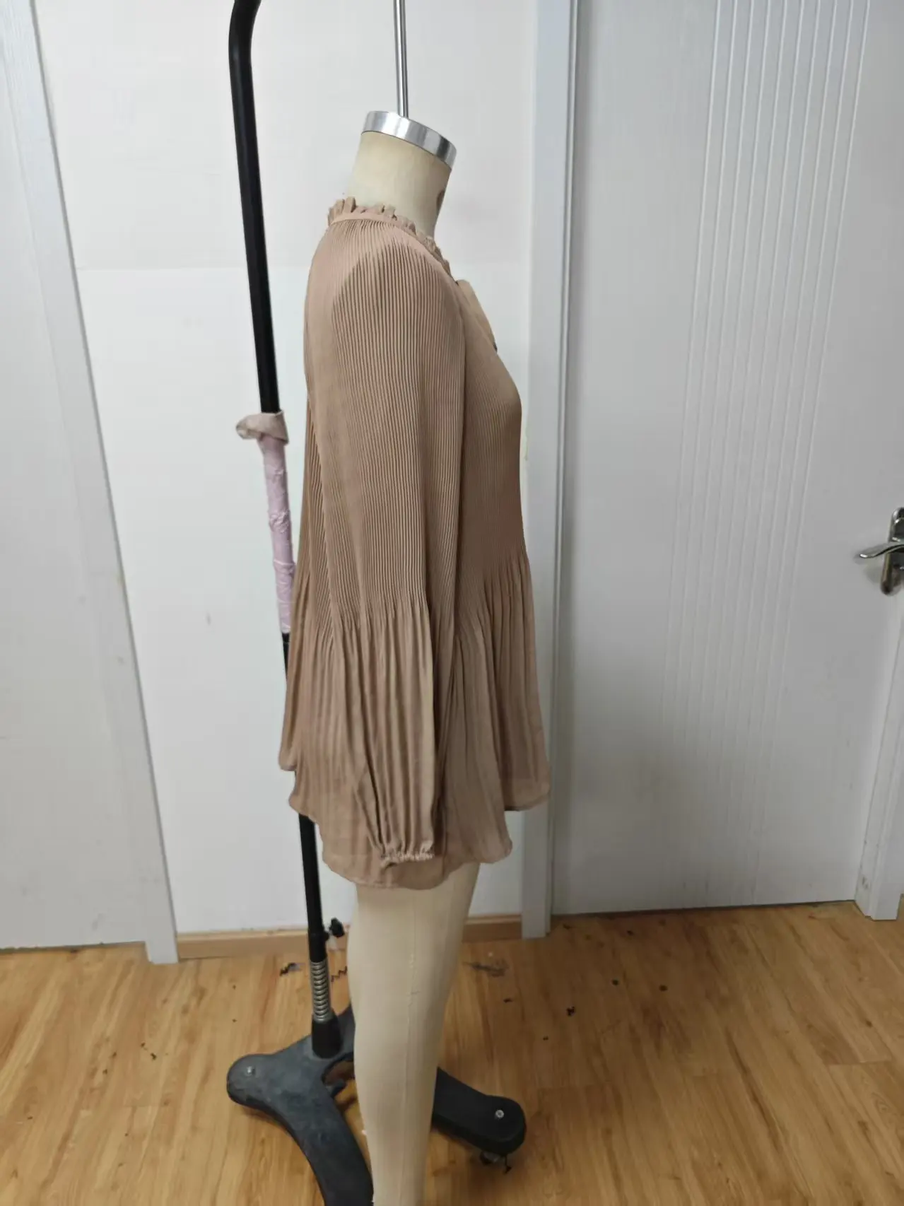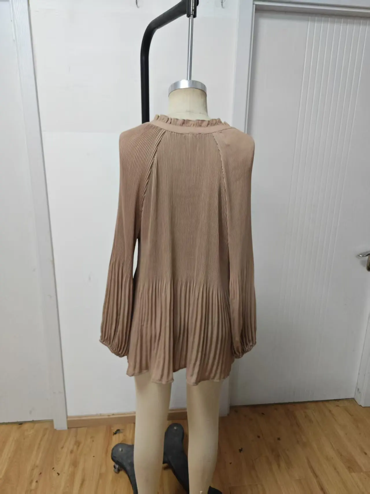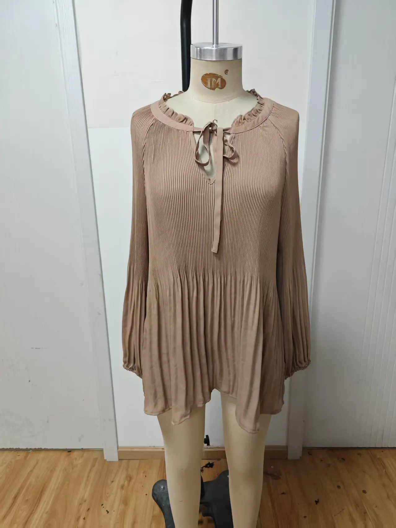 ZYHT 82053 Apricot Lace Top with Tiered Ruffled Sleeves V-Neck & Gold Buttons Blouse Wanita Elegan Women Blouse