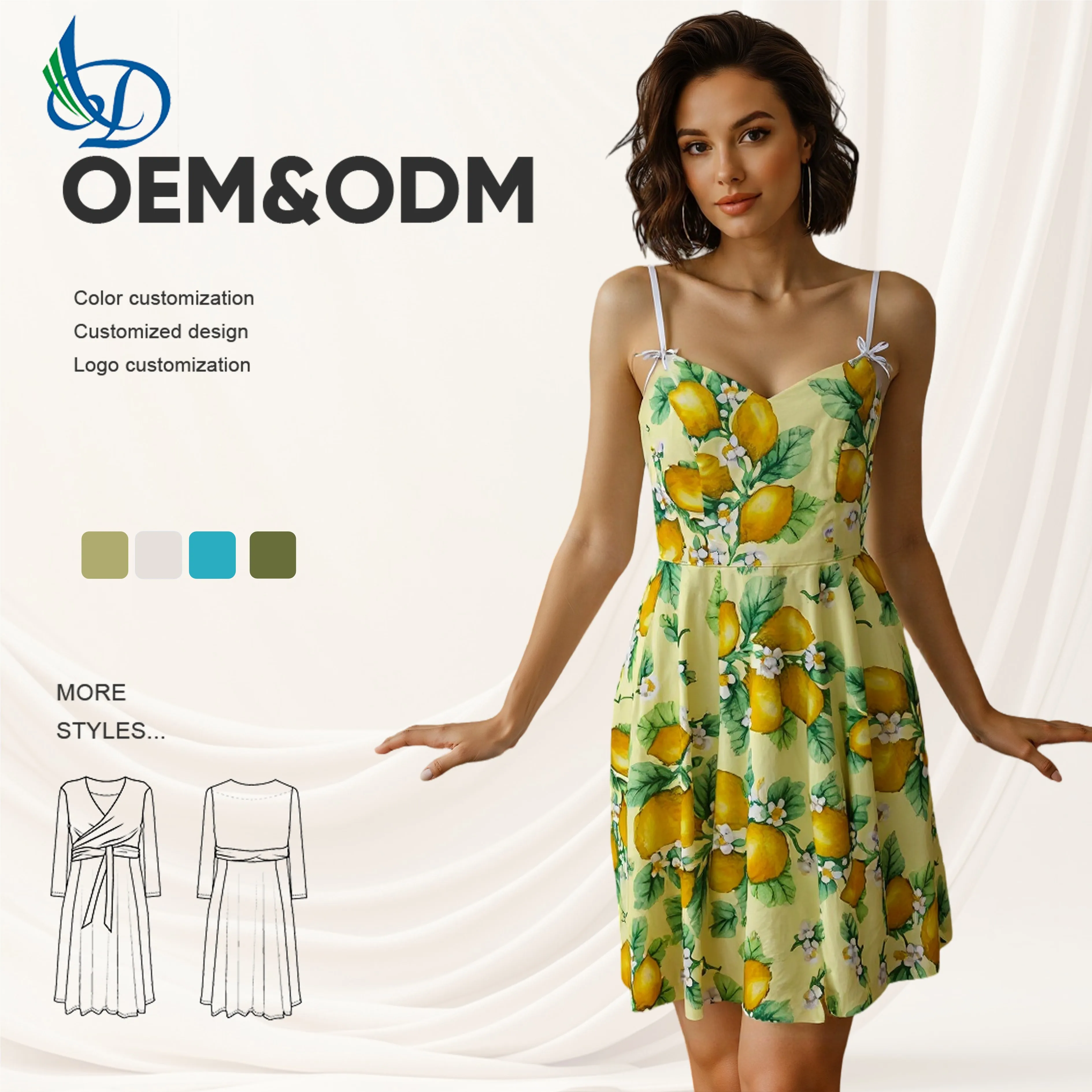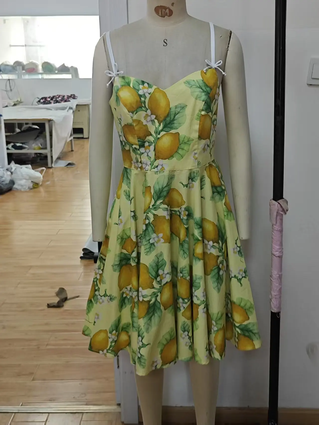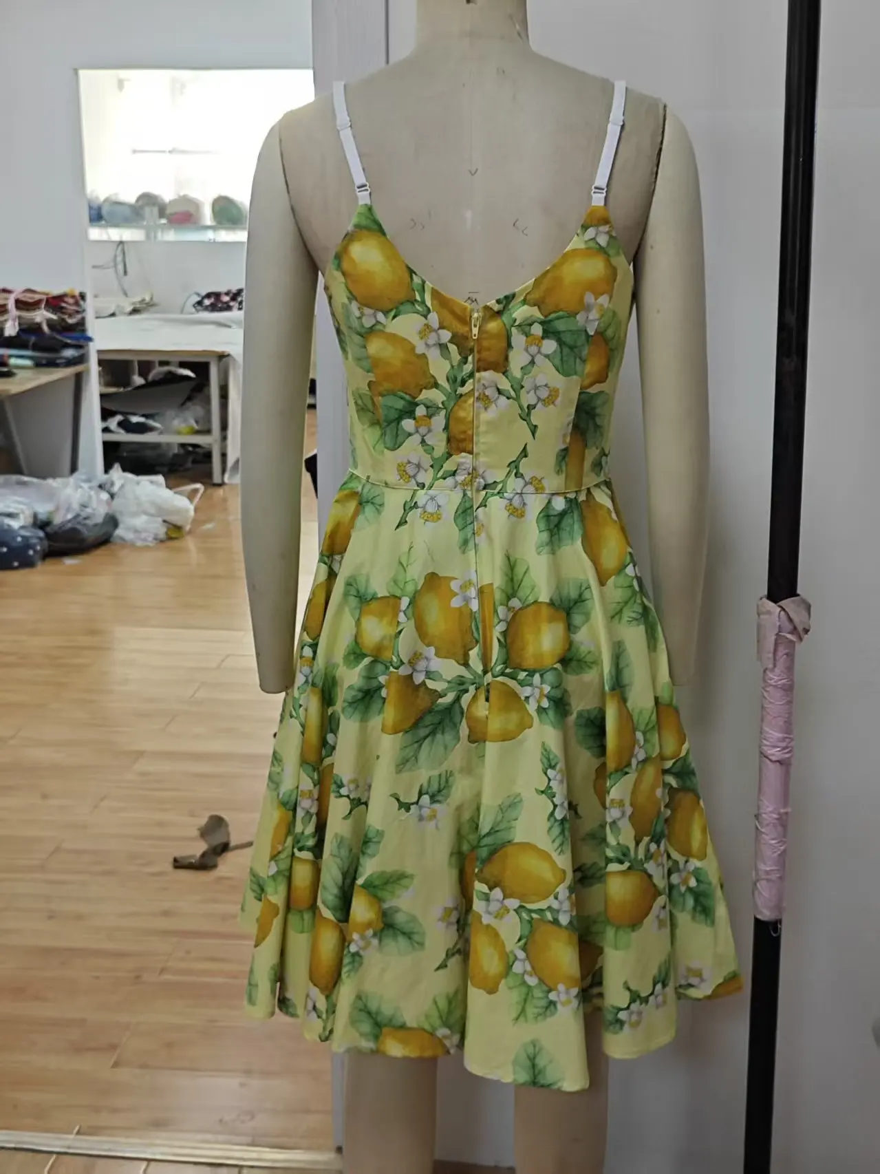 Retro Dress Slim Waist Dress Breathable Washable Lemon Print Summer Dress