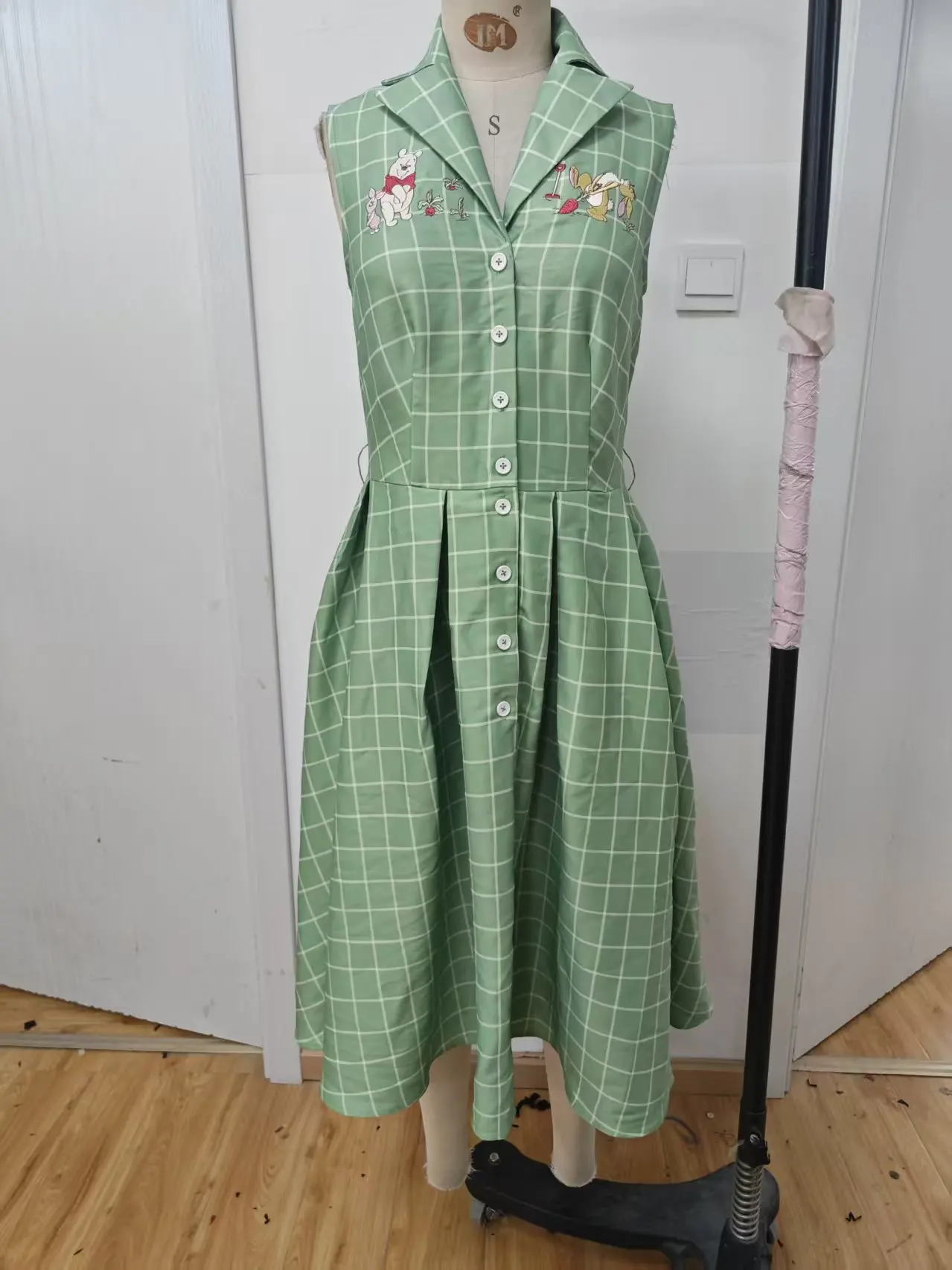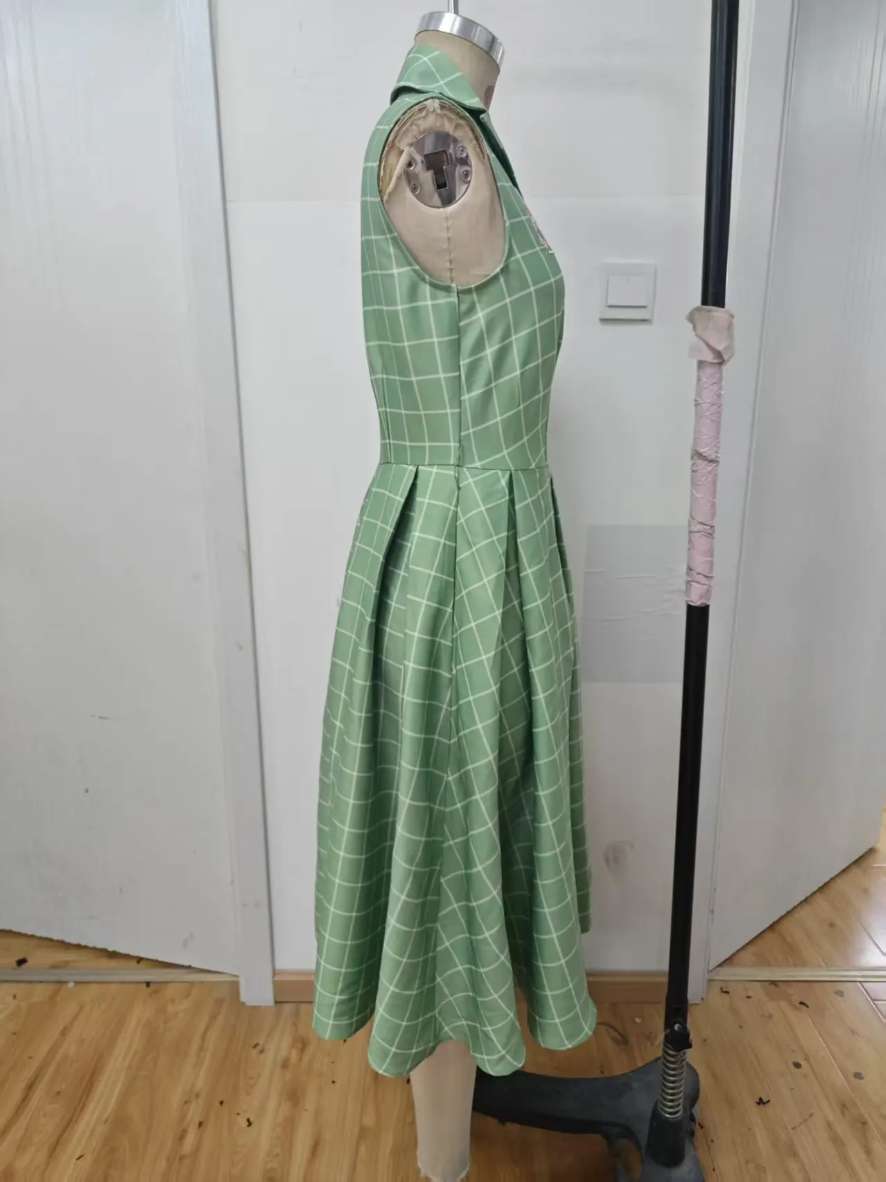 100% Pure Cotton Dress, Casual Style, Comfortable Summer Plaid Print Dress