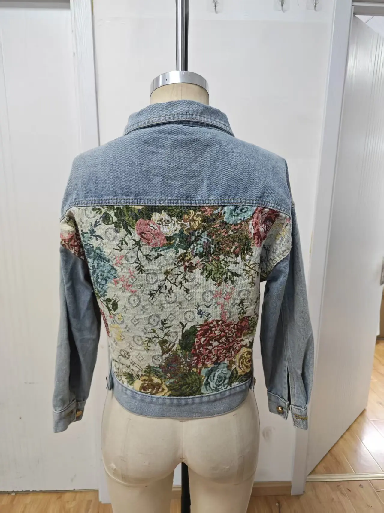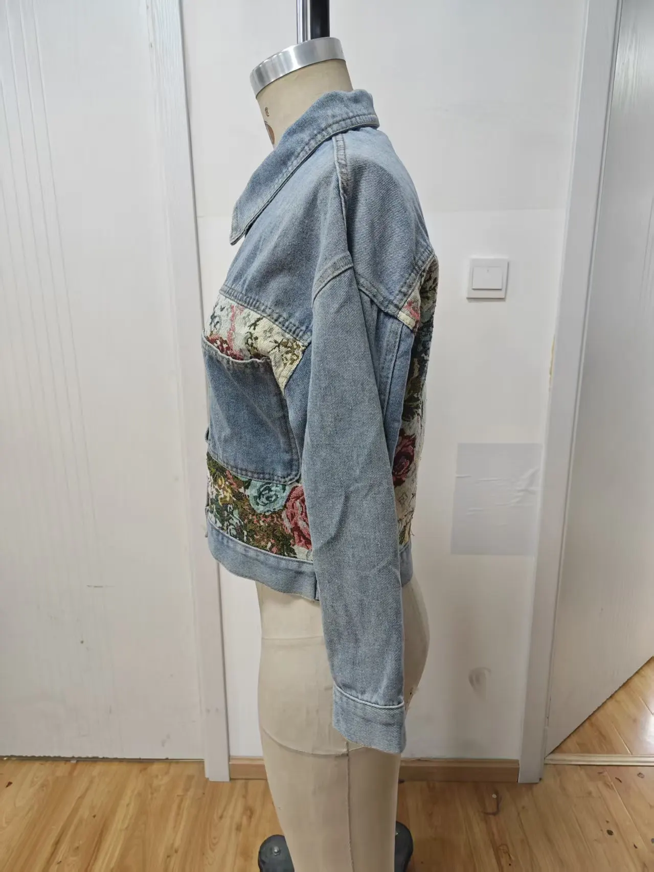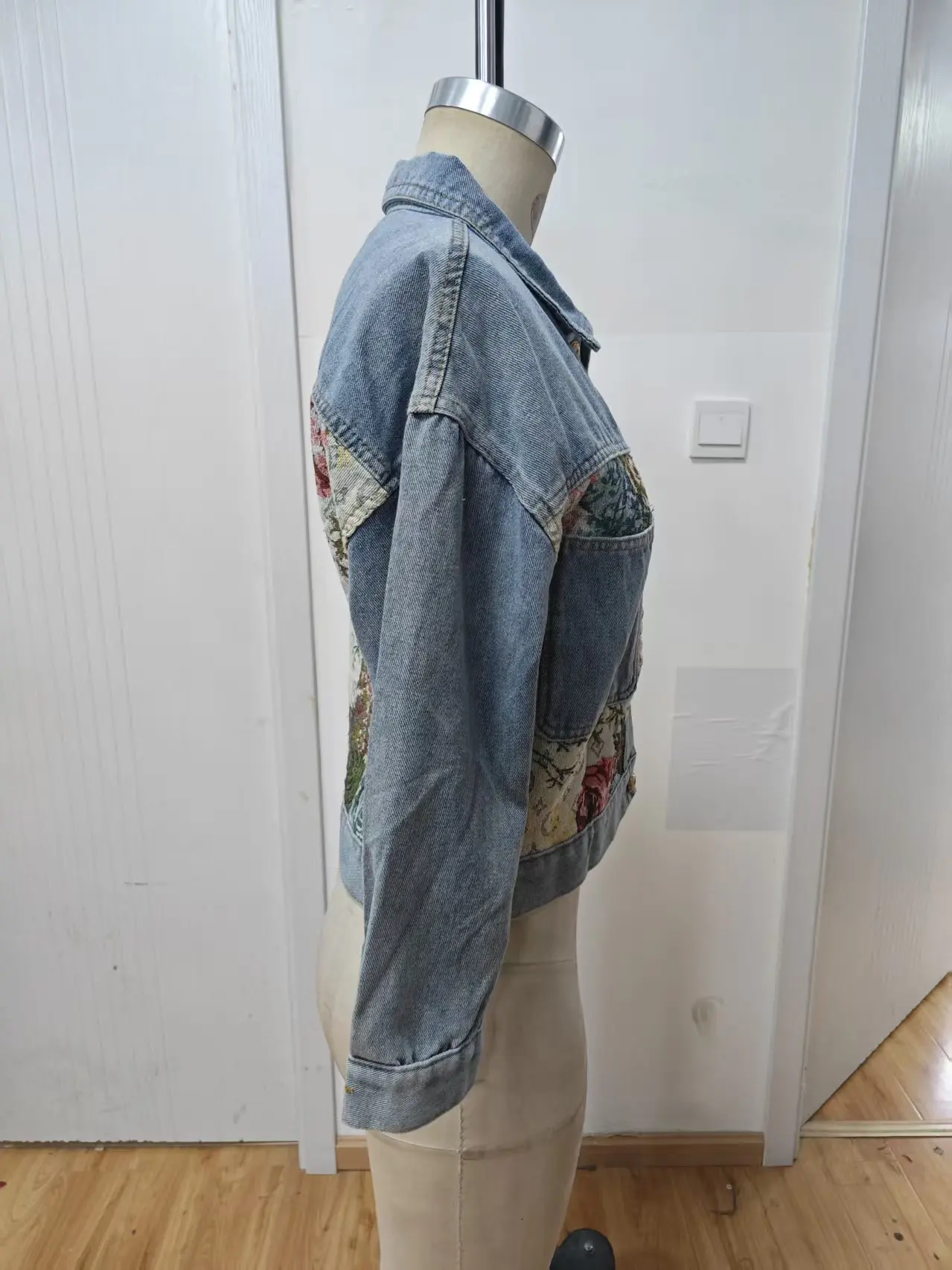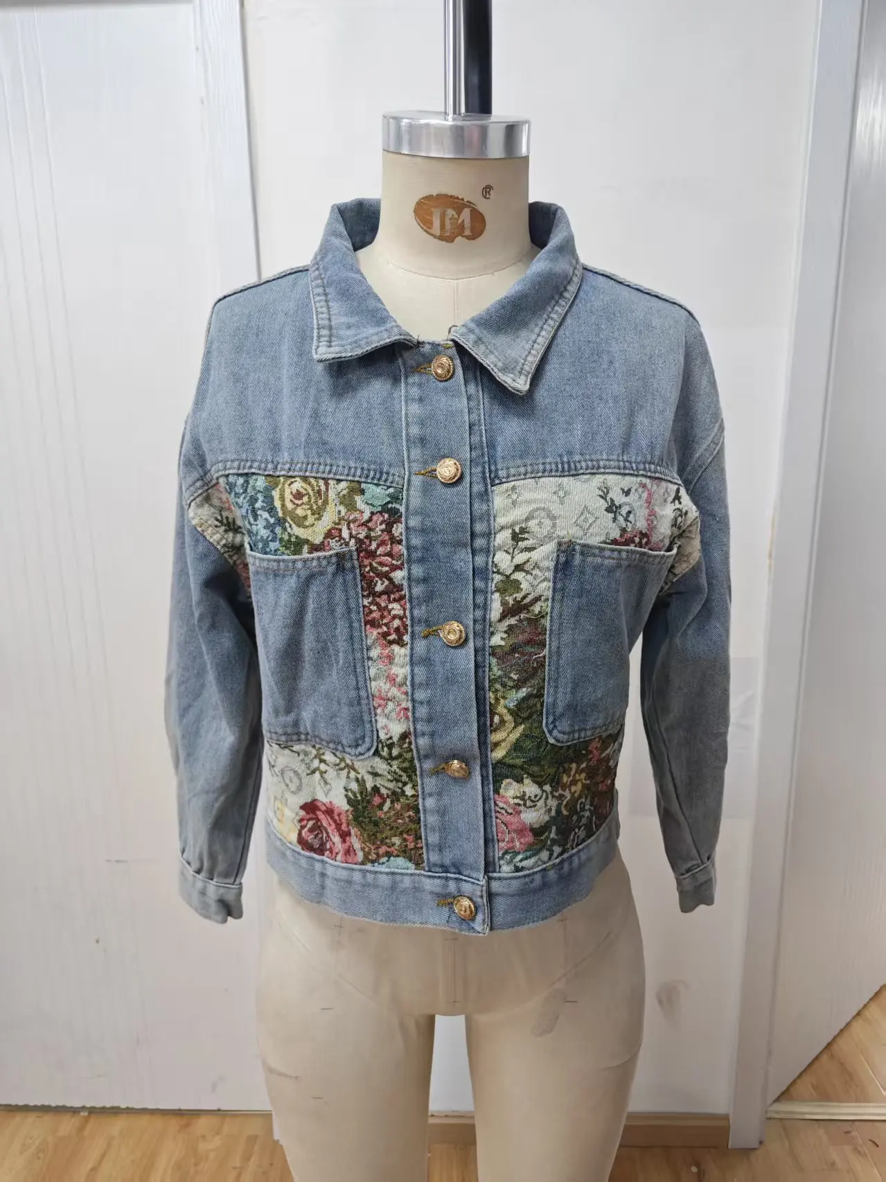 Denim Jacket for Women Long Sleeve Button Closure Jeans Coat Embroidered Lady's Daily Wear for Autumn