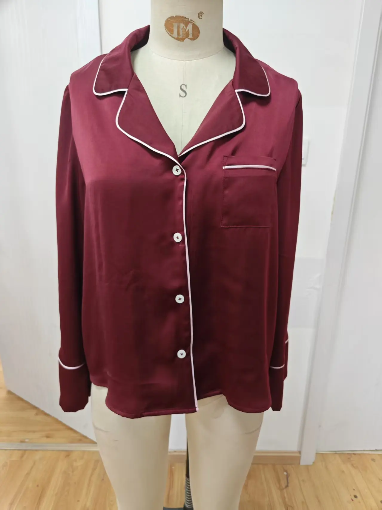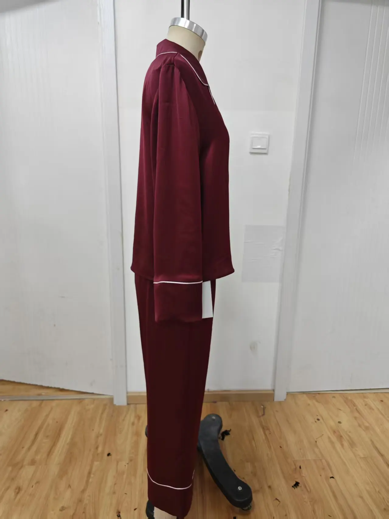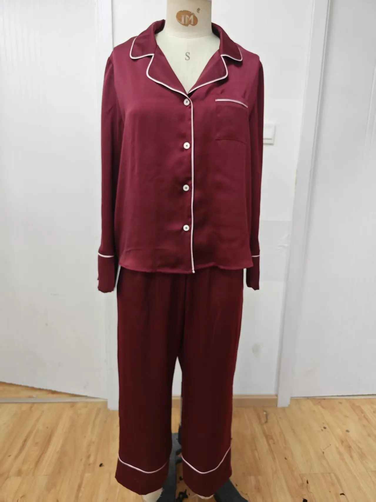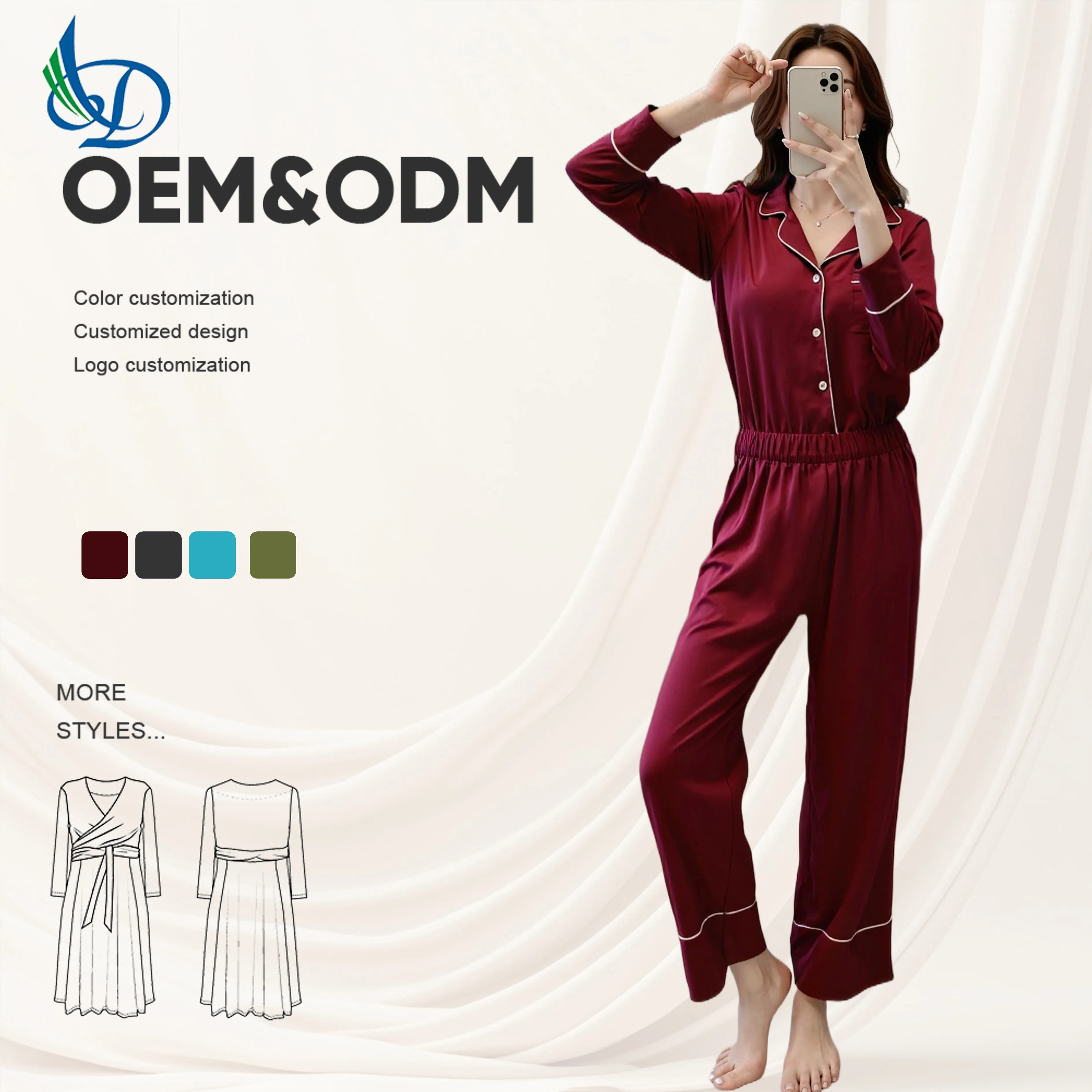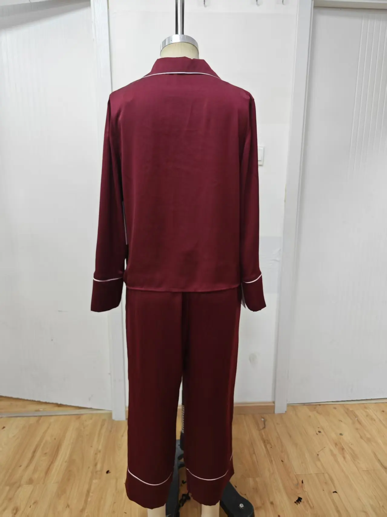 Elegant Women's Silk Satin Sleepwear Long Spring Elastic Waistband Spandex Polyester Dyed Breathable Sleepwear