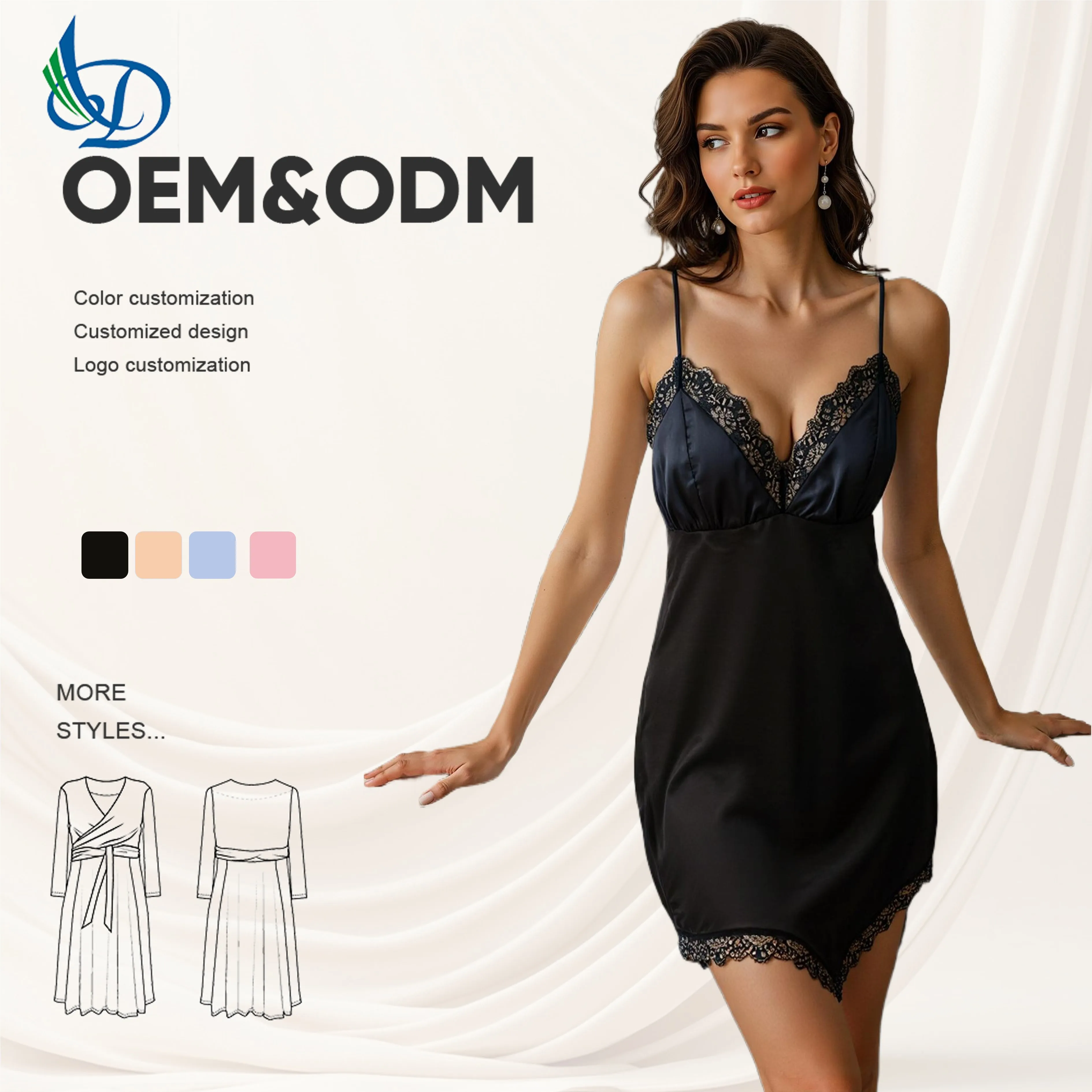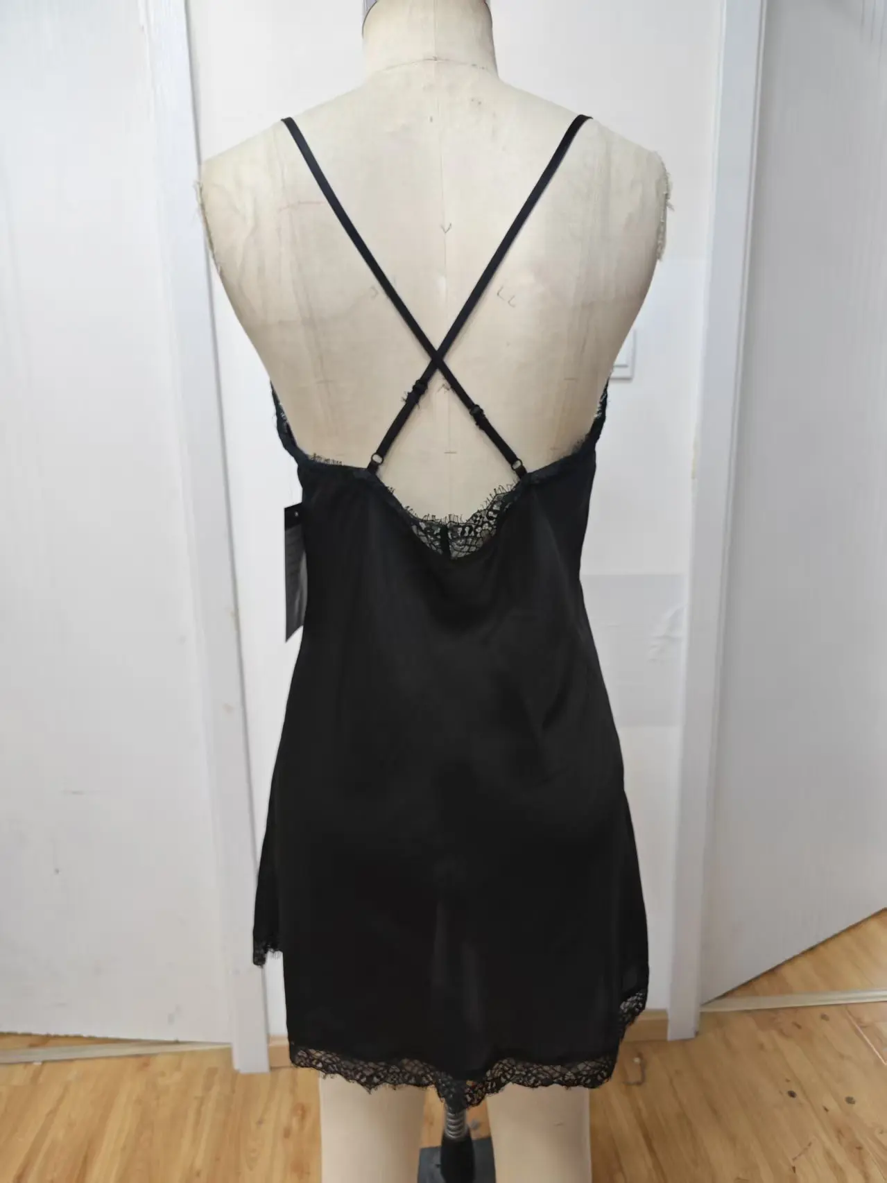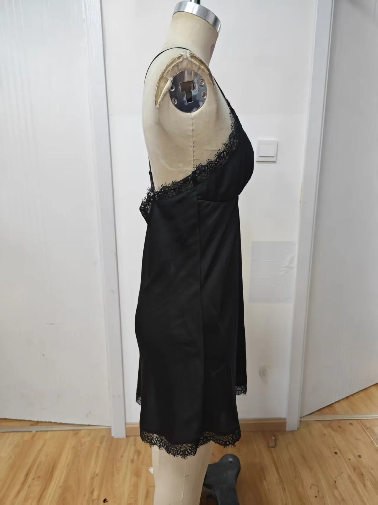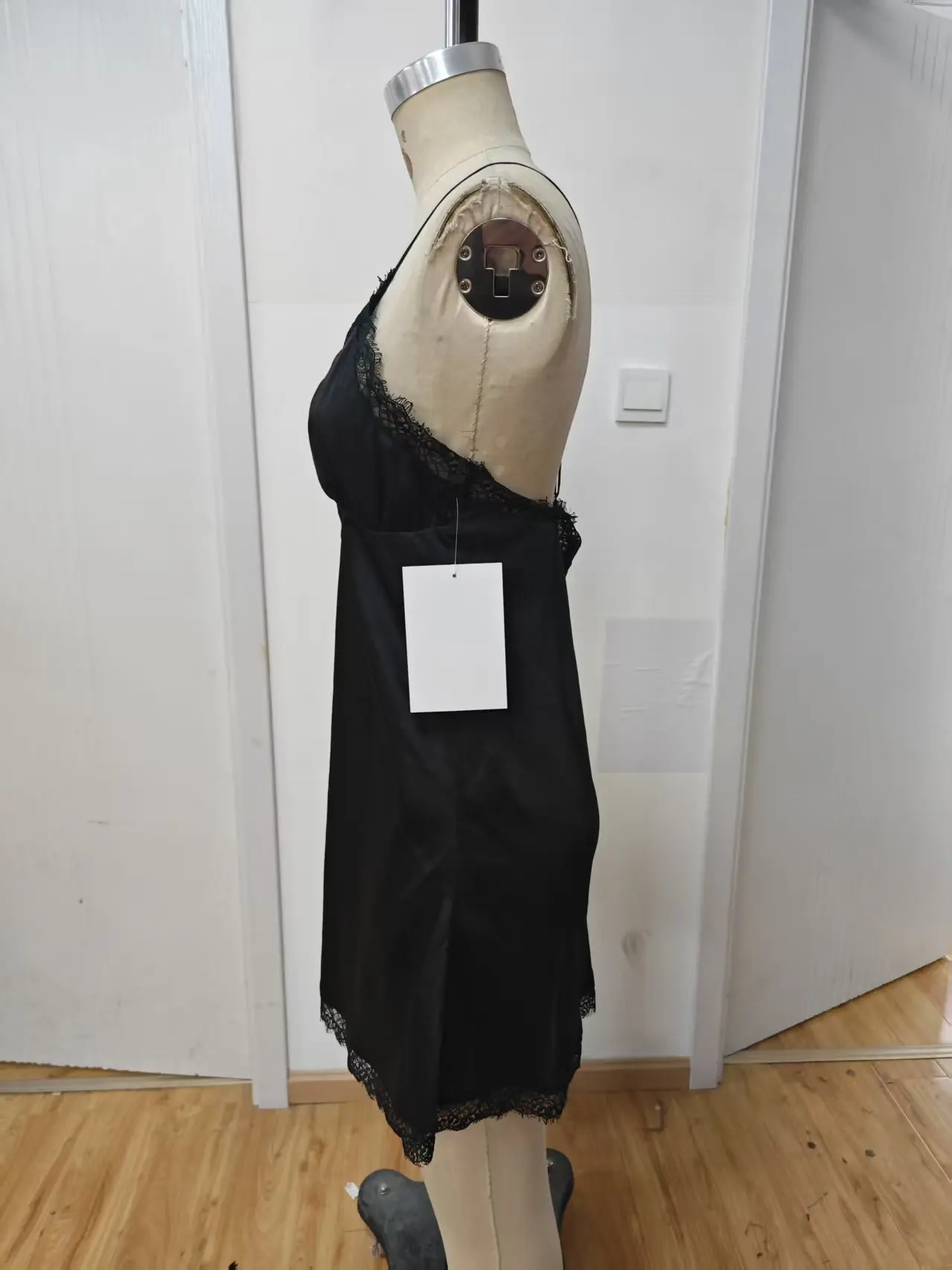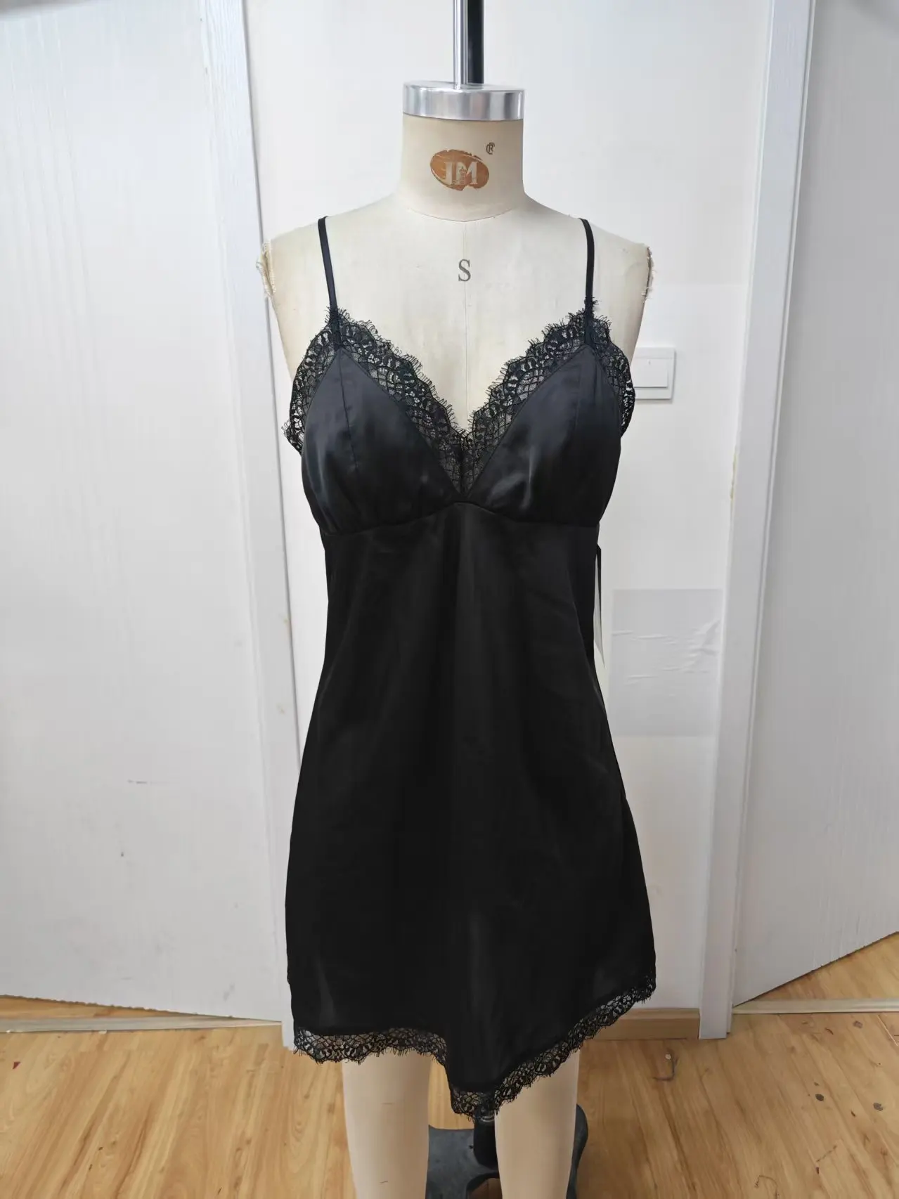 Women's Black Satin Pajamas Elegant Solid Color Lace Design Adjustable Shoulder Straps Soft and Breathable Summer