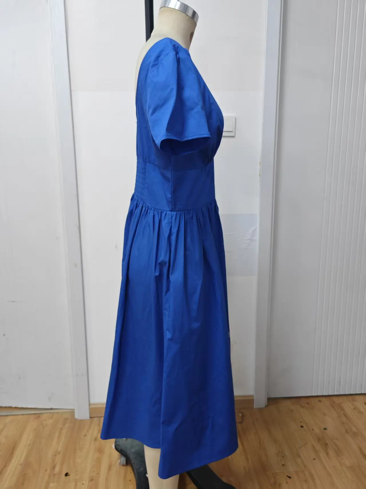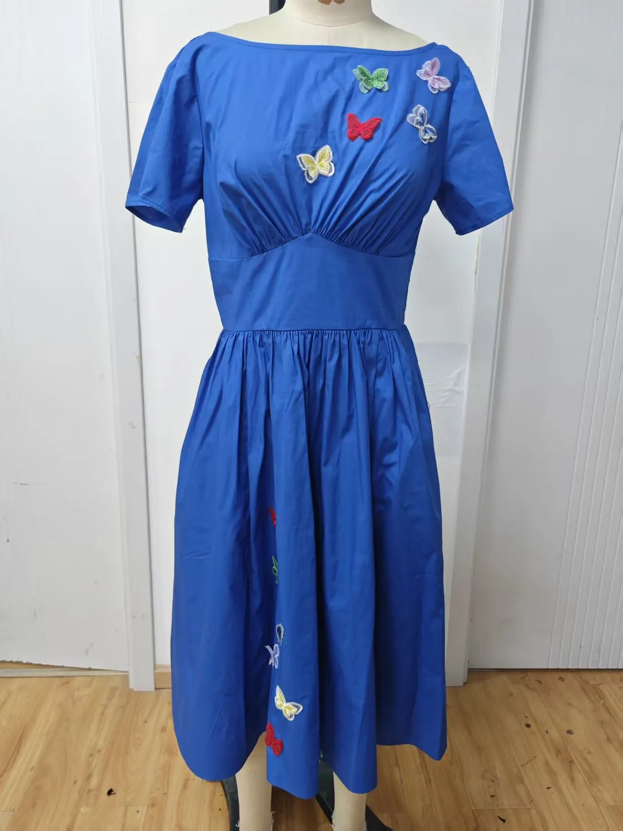 Women's square Neck Long Dress with Embroidered butterfly Decoration