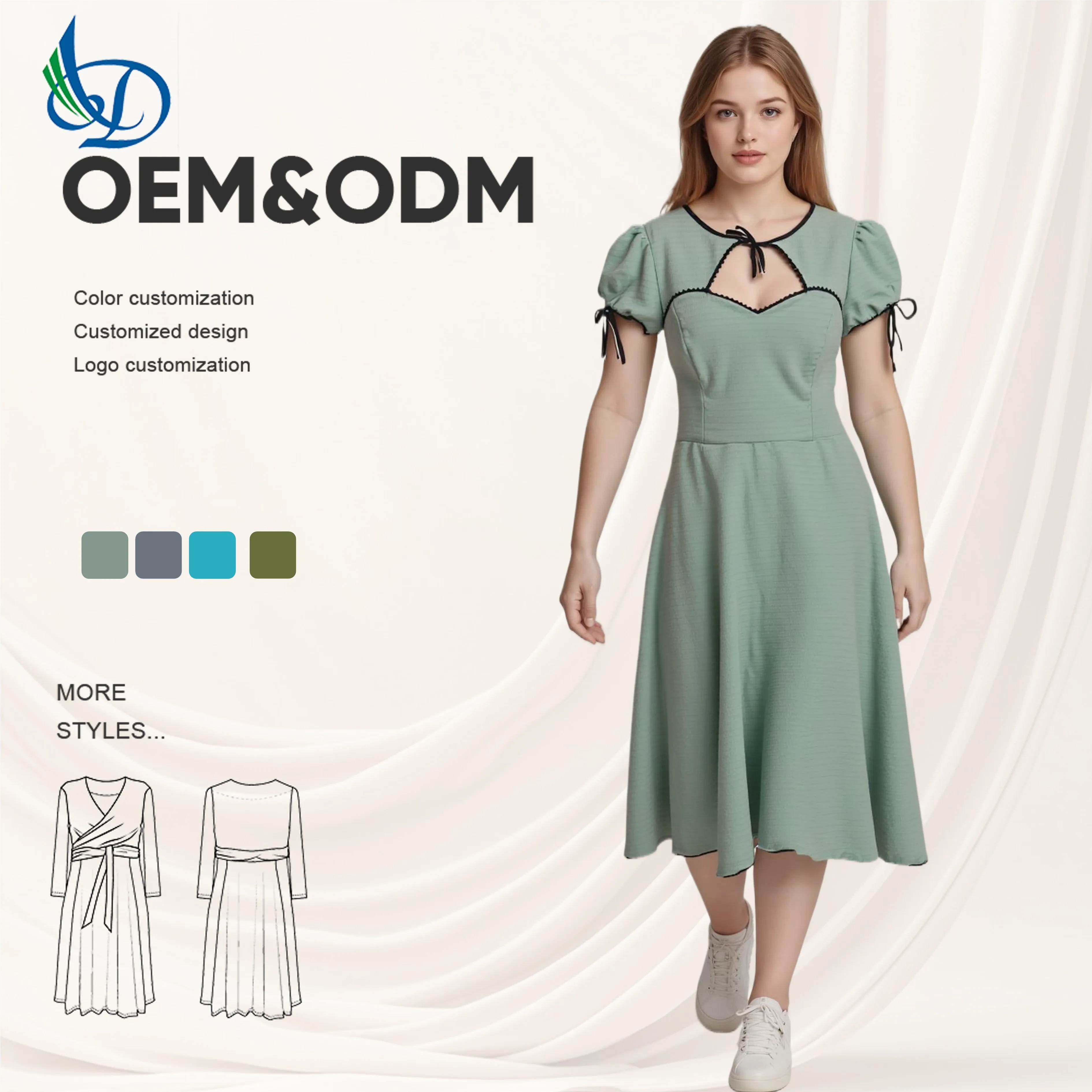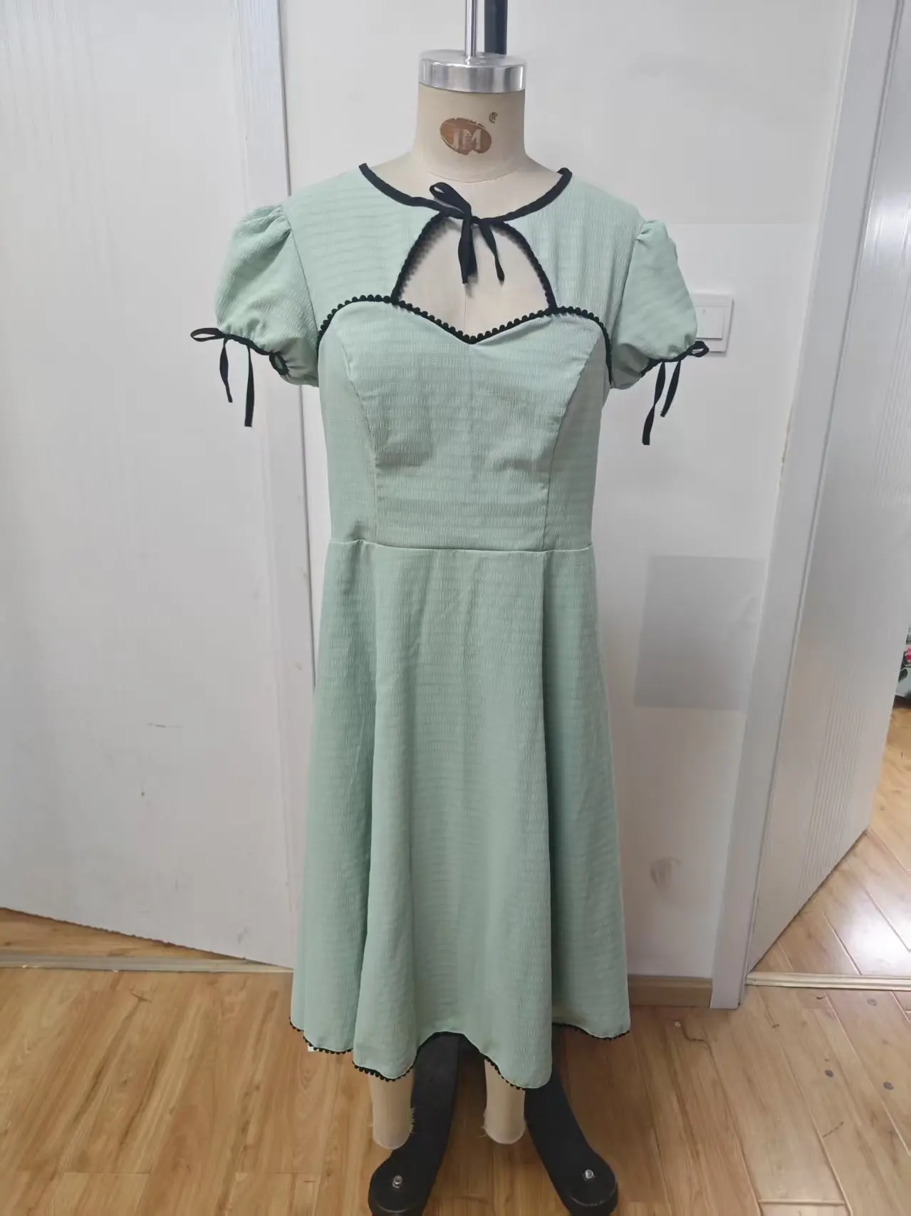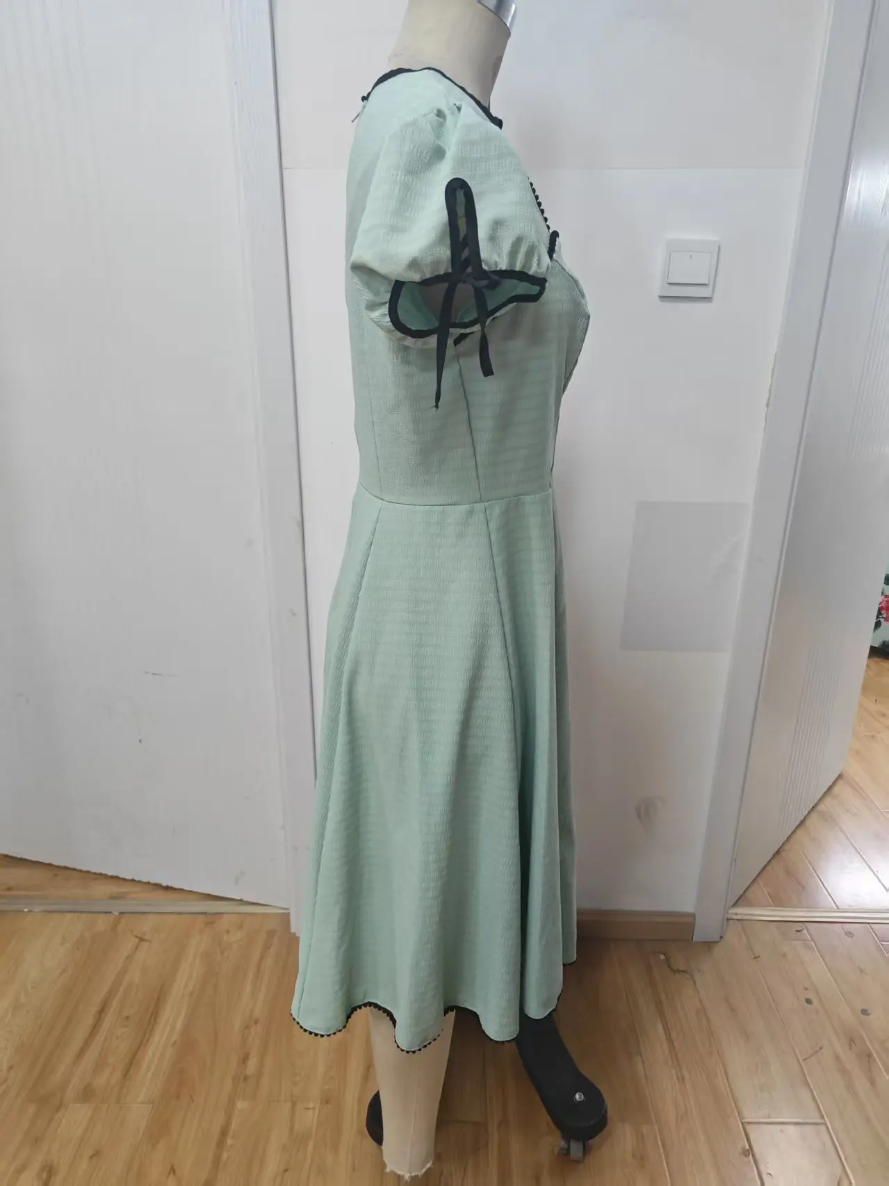 Women's Classic Short Sleeved Dress with a Natural Waistline That Can Be Washed with Water