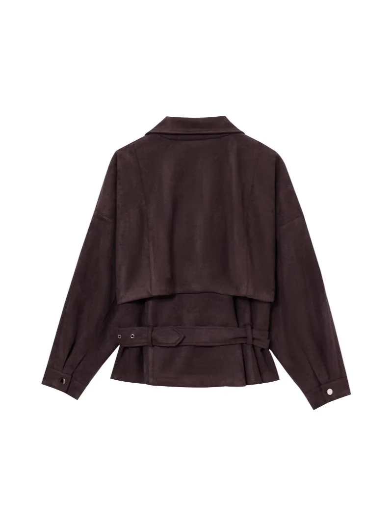 2026 Women's Retro Belted Jacket New Fashion Solid Color Long-Sleeved Casual Short Jacket Breathable for Autumn
