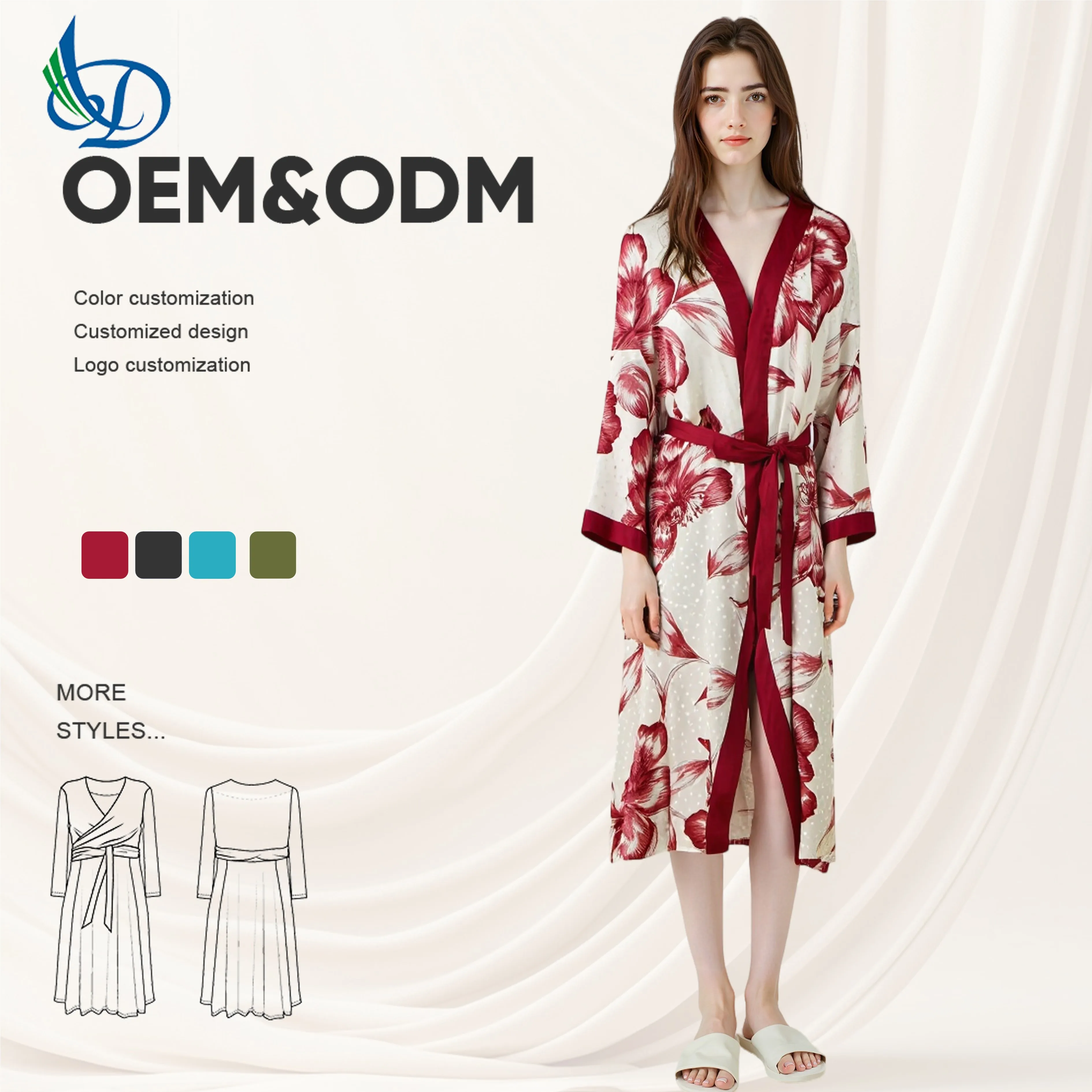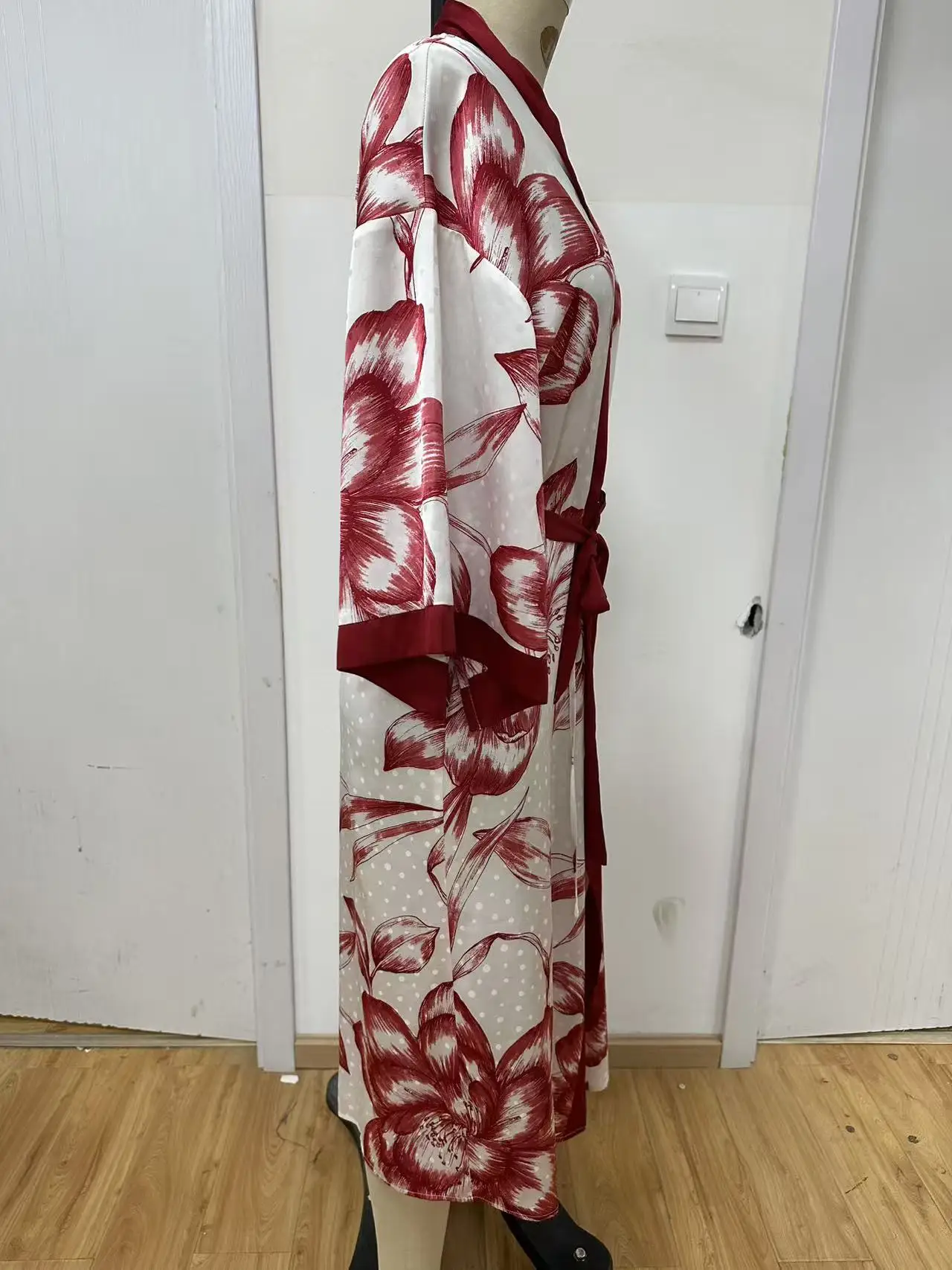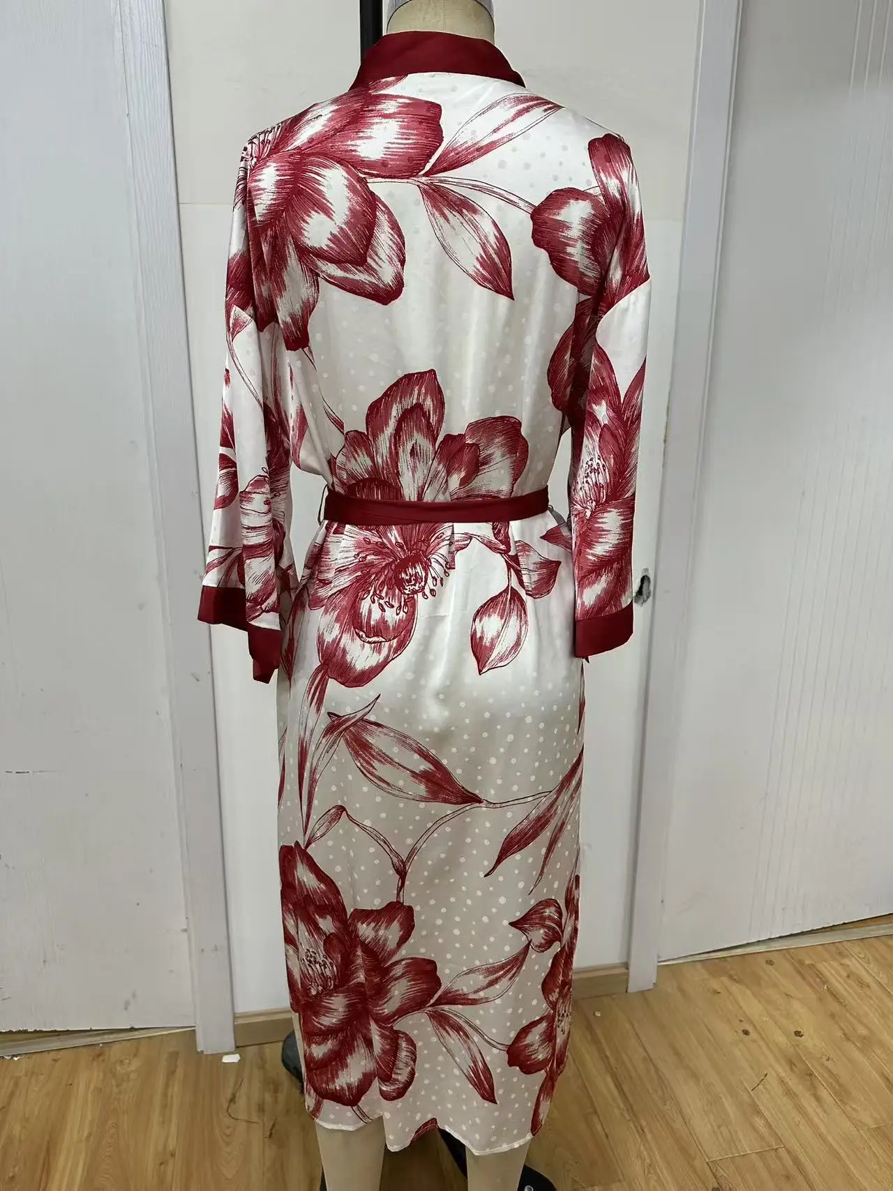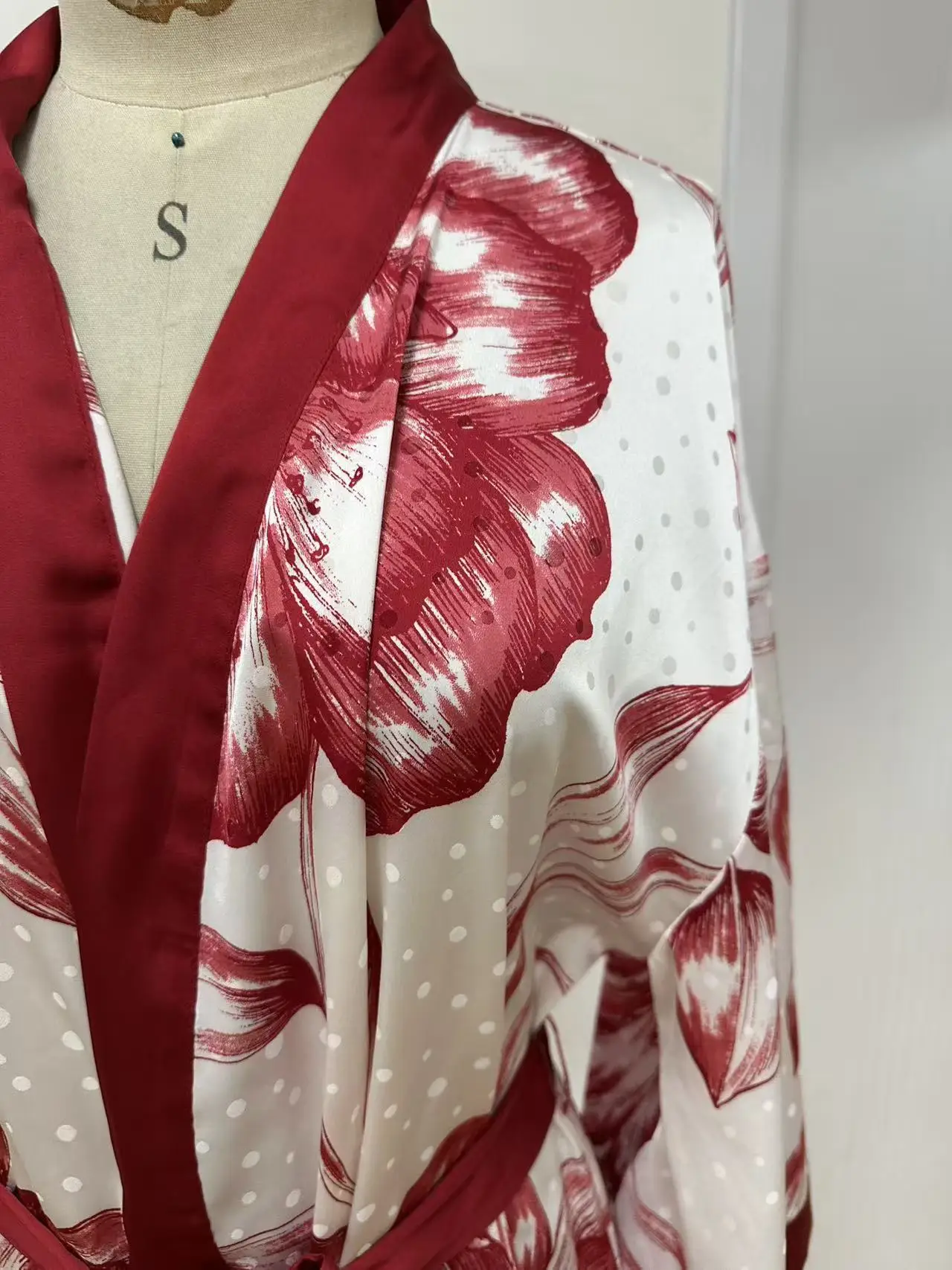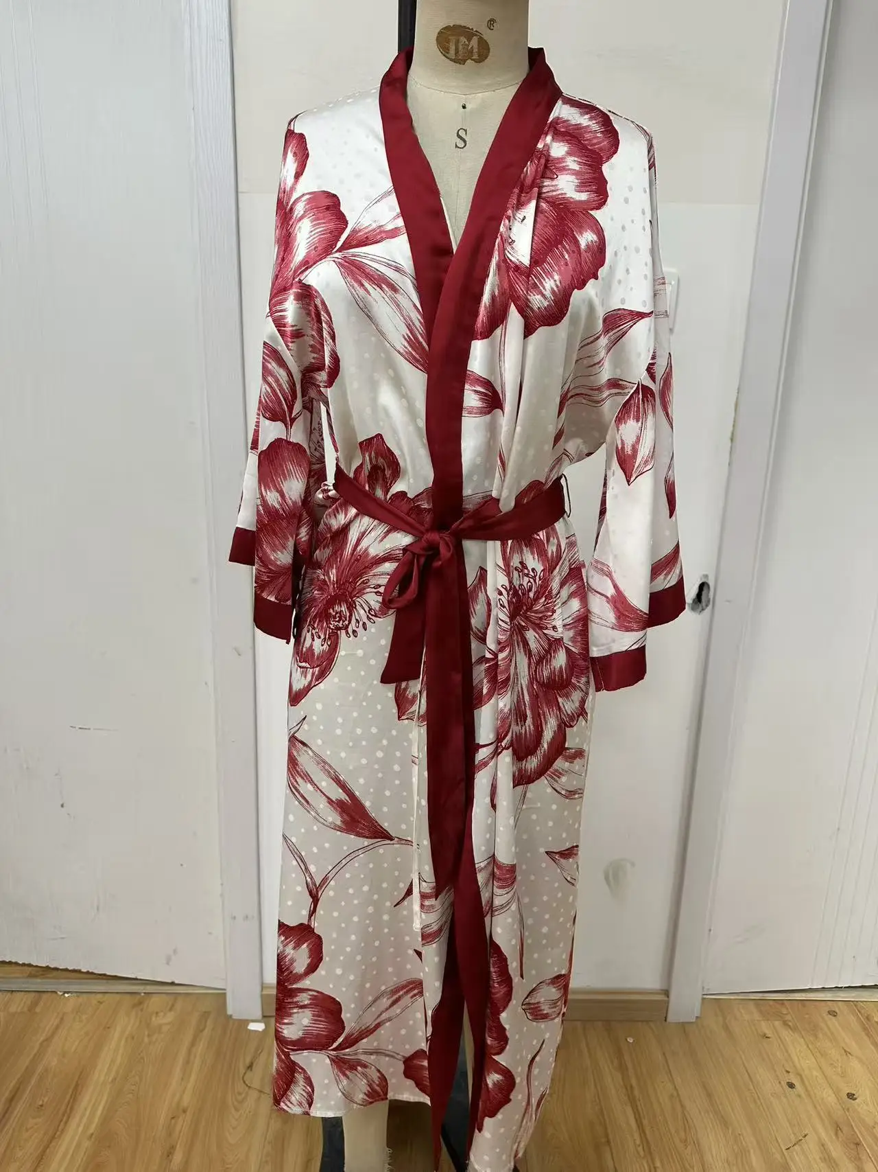 Red Satin Wedding Gown with Fashionable Design, Breathable Drawstring Robe, Pajamas