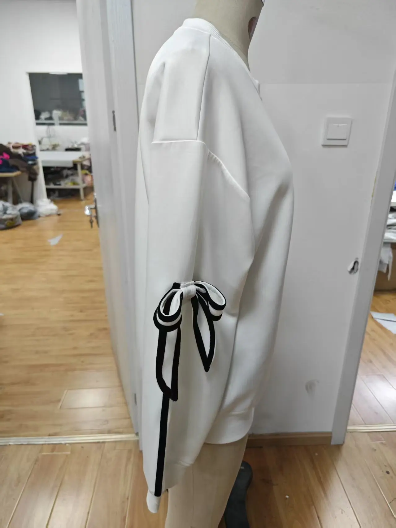 Women's White Bow Decoration Sportswear Casual Wear Autumn