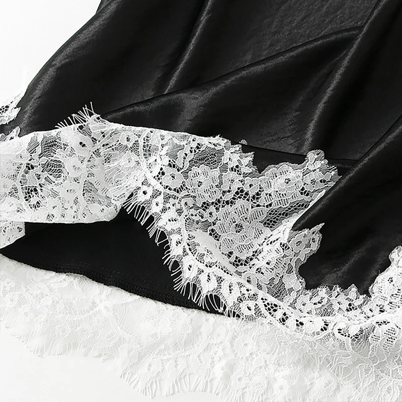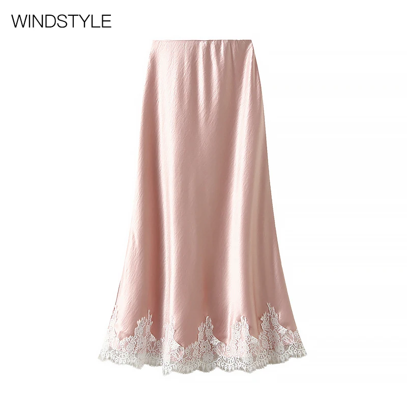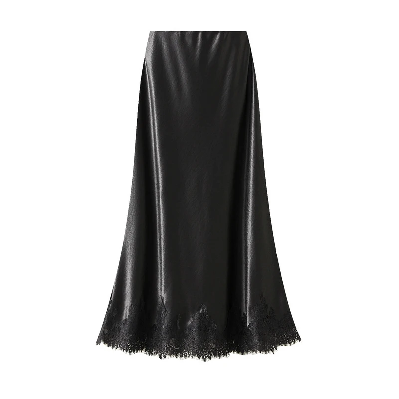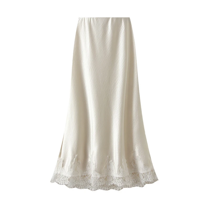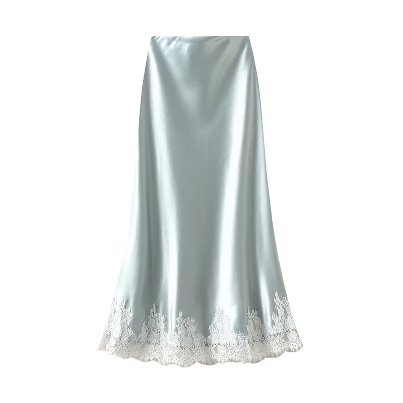 Women's Fashion Skirt Lace Stitching Summer Empire Waist Long Drape Short Length Glossy Knitted Print