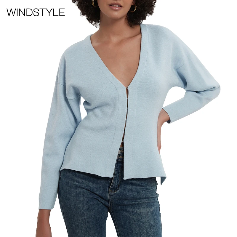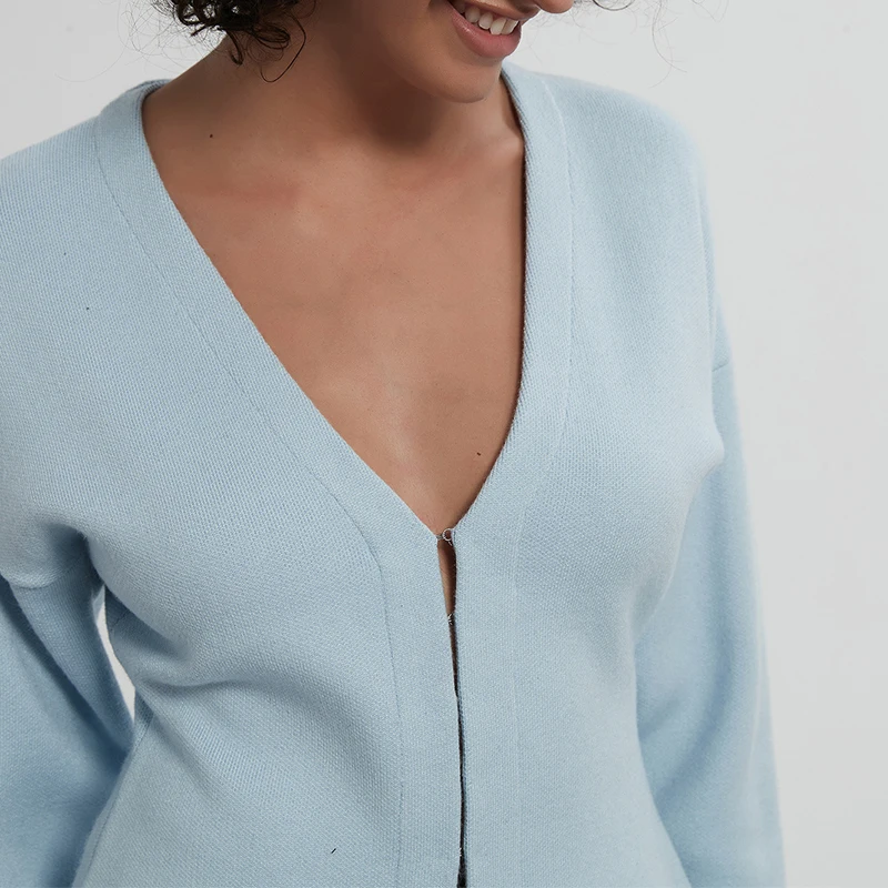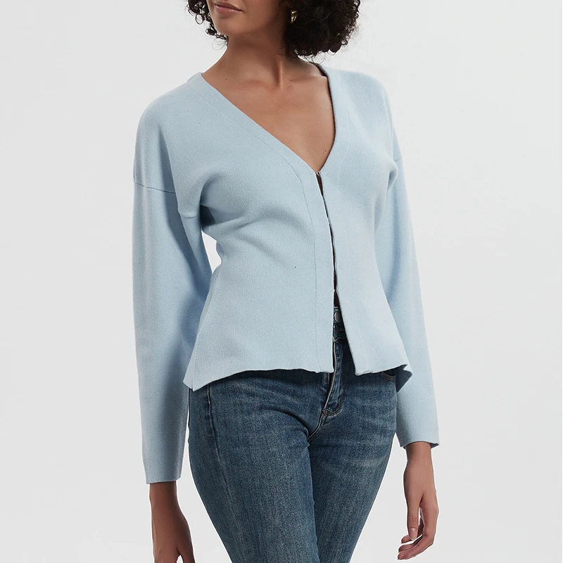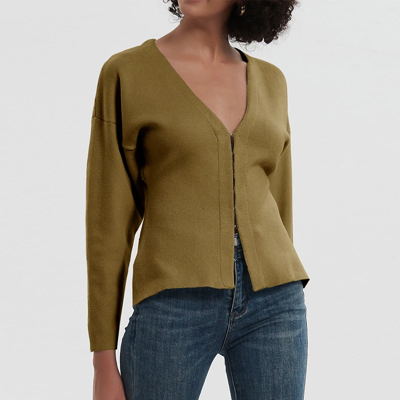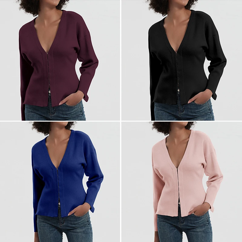 Knitted Cardigan Autumn V-Neck Breathable Simple Casual Solid Zipper Waist-Cinching Slimming Sweater Coat