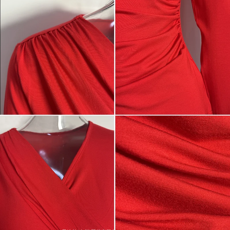 ZYHT 73849 European Wholesale Fashion Casual One Shoulder Ruched Maxi Dress Side Slit Pleated Long Sleeve Dresses for Women