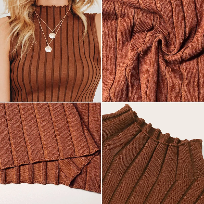 European and American Women's Sleeveless Pit Slim Waistcoat Solid Color Knit Top Breathable Short Length