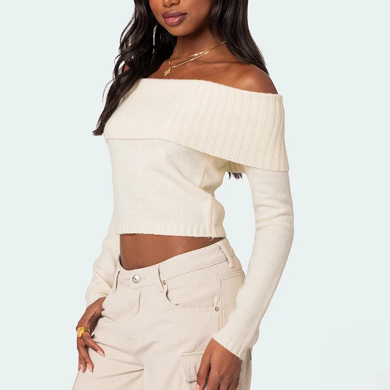 Women's Knitted Long Sleeve Pullover Jacket Solid Color Slim Fit Breathable Spandex Collarless Autumn Season