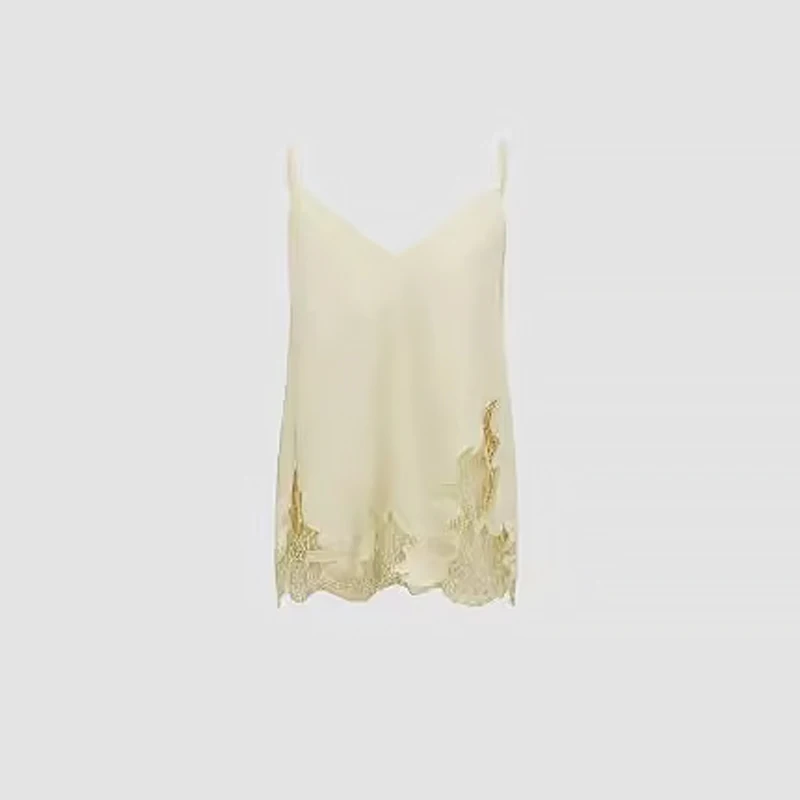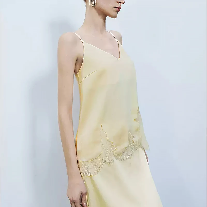 Women's Casual Halter Collar Tank Tops with Hollow Lace Solid Pattern 100% Polyester Breathable Woven Fabric