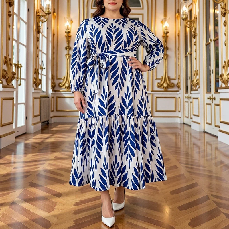 Lady's Large Size Printed Casual Knee-Length Summer Party Breathable Fabric Elegant Floor-Length Banquet OEM Service Available