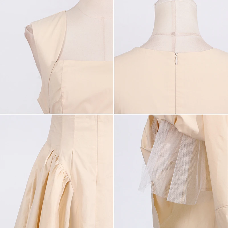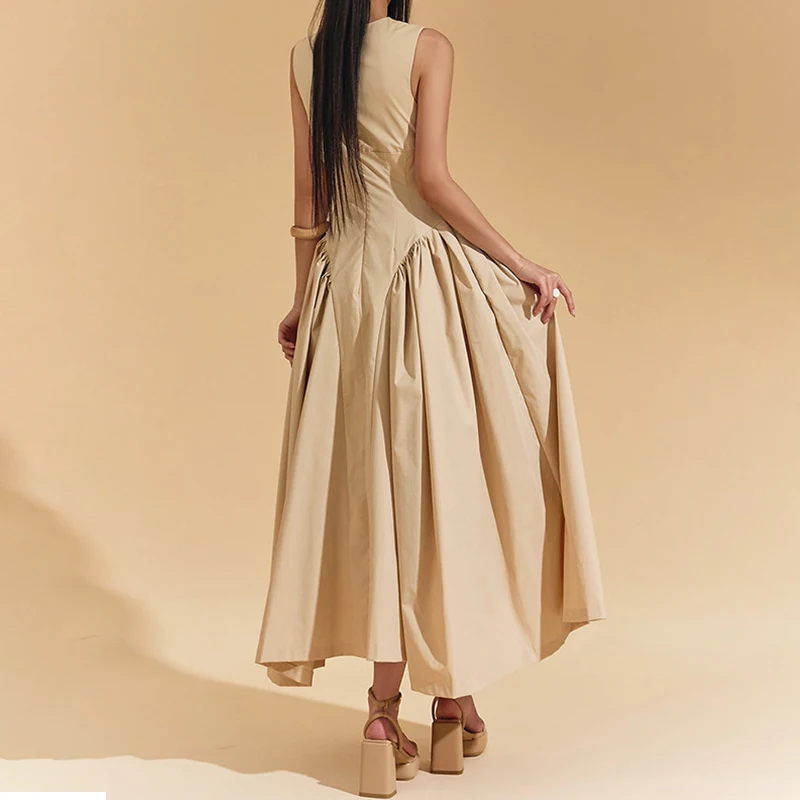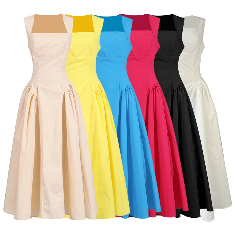 Antique Suspender Dress XS Size Solid Color Sleeveless Fashion Stitching Ruffled Knee-Length Breathable Summer Casual for Day