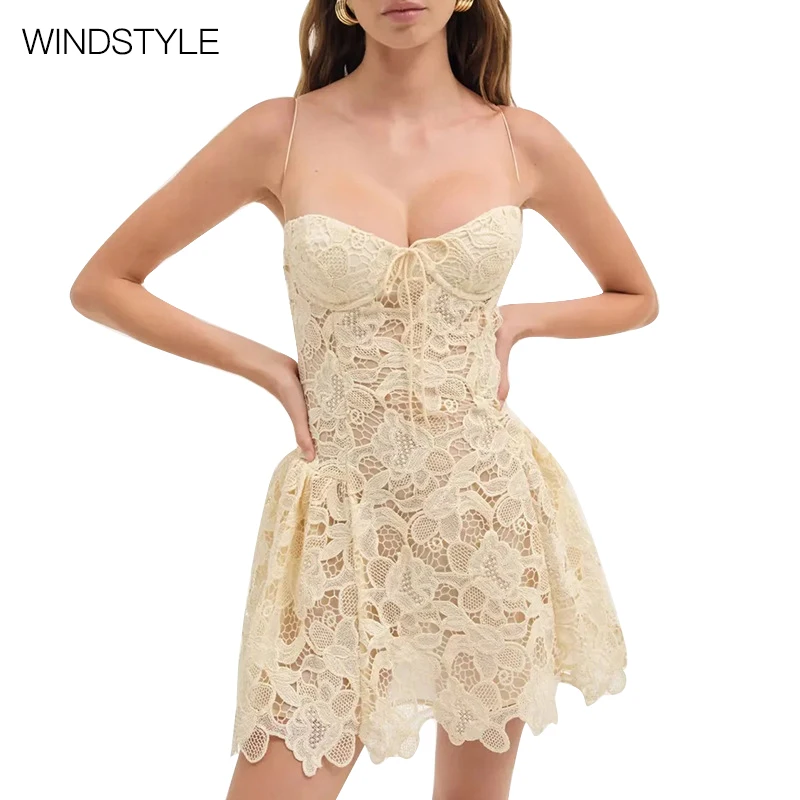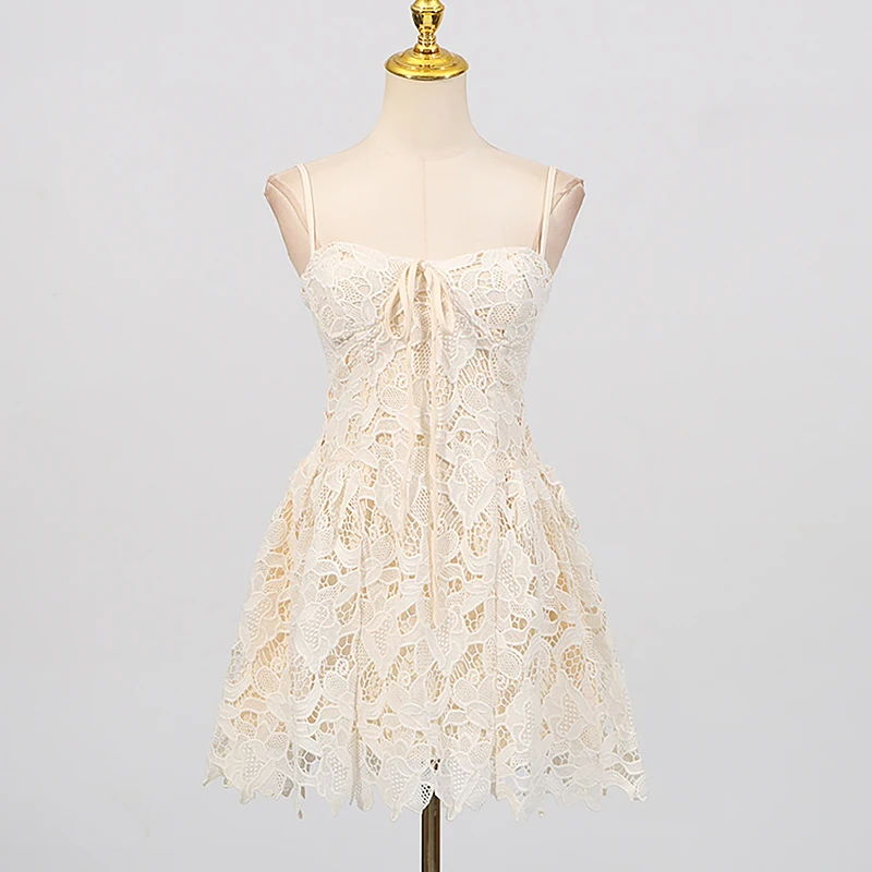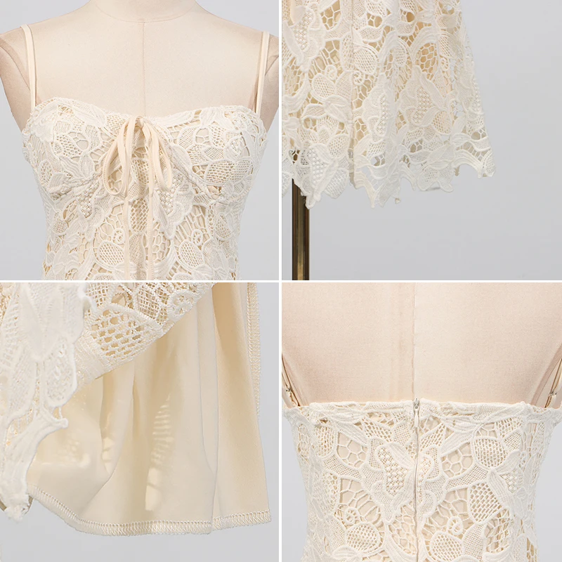 Casual Floral Solid Pattern Sleeveless Strapless Dress for Women Sexy Lace Embroidered High Sensation Midi Length Breathable Mix