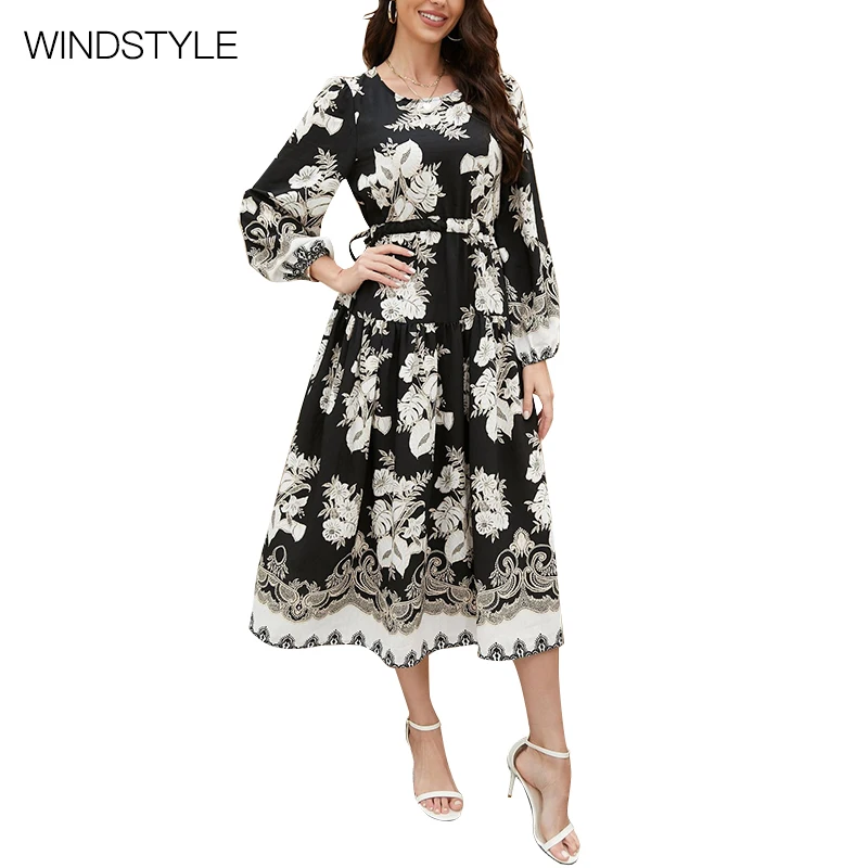ZYHT 21541 Wholesale Crew Neck High Waist Casual Dresses Elegant Lace Velvet Mermaid Hem Ruched Long Sleeve Dresses for Women