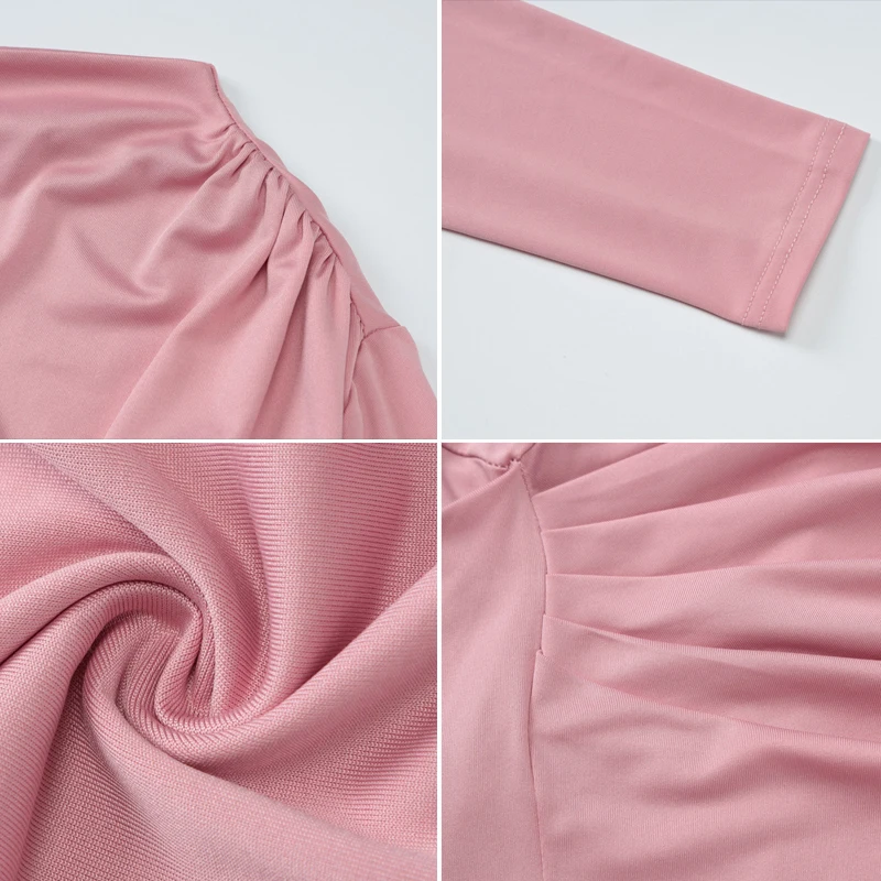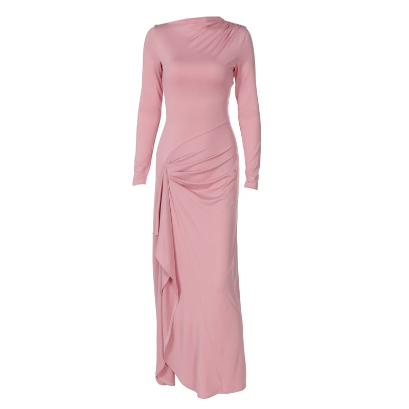 ZYHT 73849 European Wholesale Fashion Casual One Shoulder Ruched Maxi Dress Side Slit Pleated Long Sleeve Dresses for Women