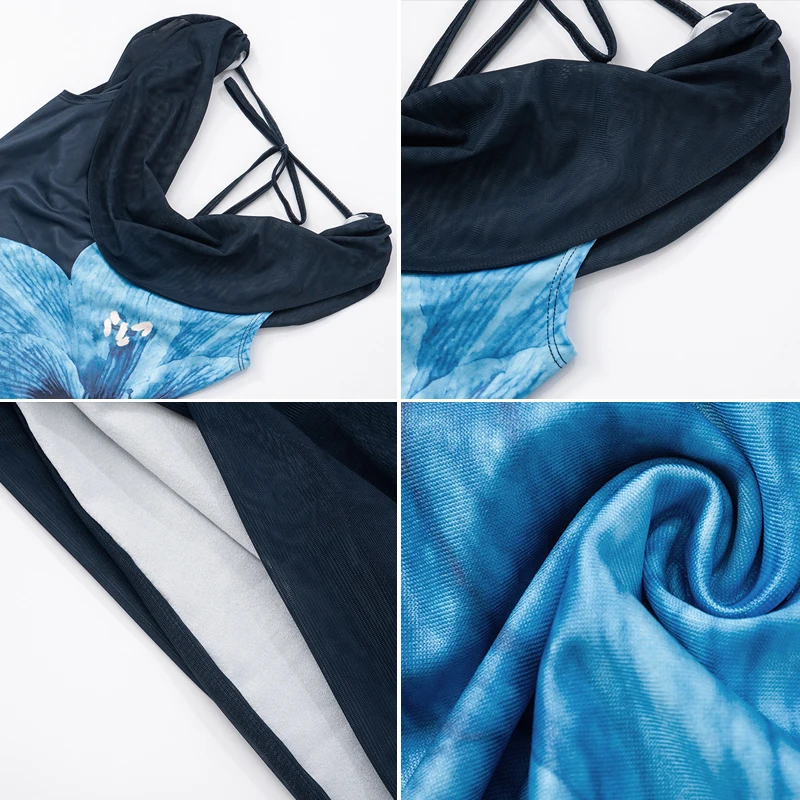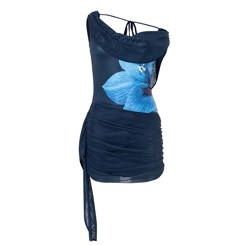 Sexy Club-Style Midi Skirt Dress Backless Collar Floral Print Side Ribbon Woven Breathable Summer Party OEM Service Available
