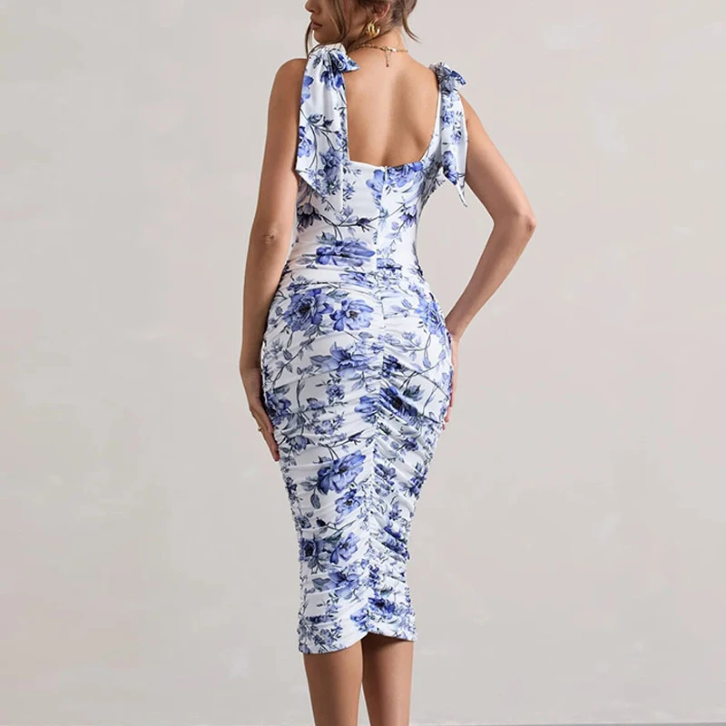 ZYHT 73963 Matte Satin Printed Geometric Pattern Maxi Women Asymmetric One Shoulder Ruched Hem Women Dress