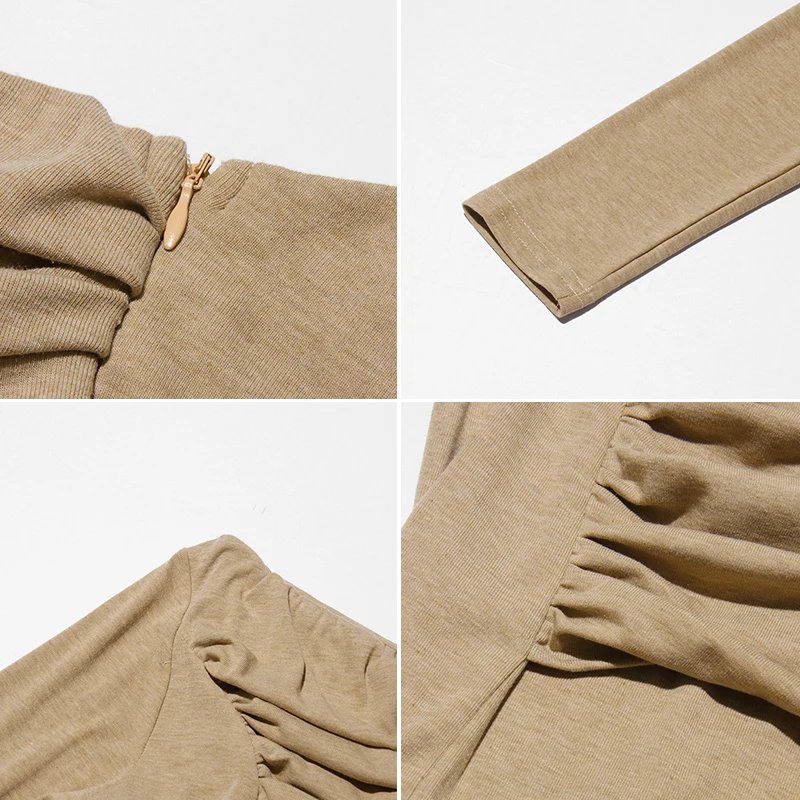 ZYHT 21541 Wholesale Crew Neck High Waist Casual Dresses Elegant Lace Velvet Mermaid Hem Ruched Long Sleeve Dresses for Women