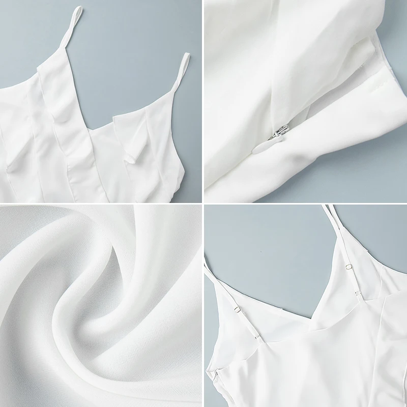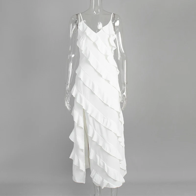 Long Satin Patchwork Ruffled Strap Breathable Slim Summer Casual Knee-Length Sexy Split Design for Day OEM Service Available