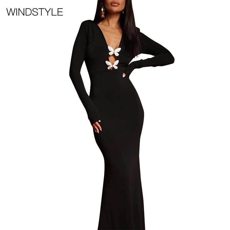ZYHT 73906 Long Sleeve Deep V Neck High Slit Sexy Elegant Knot Long Floor Length 3D Flower Dark Green Purple Women Evening Dress