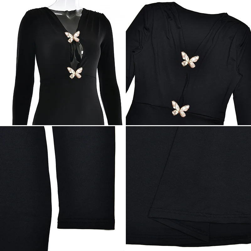 ZYHT 21938 Black Velvet Mini Dress Square Neck Long Puff Sleeves with Pearl Trim & Crystal Dess Flared Scalloped Hem Dresses