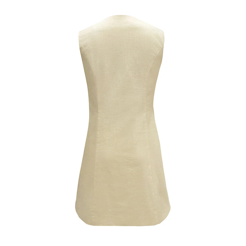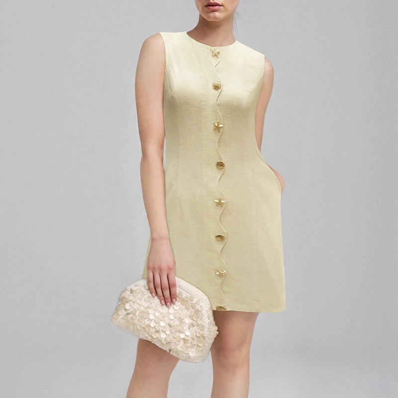 Elegant Socialite Mini Dress Button Sleeveless Summer Decoration Casual Style Direct Order Model