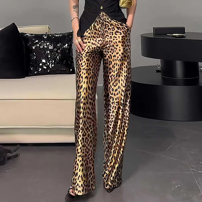 Yellow Leopard Print Casual High Waist Wide Leg Harem Pants Autumn Baggy Barrel Design with Elastic Anti-Wrinkle Feature
