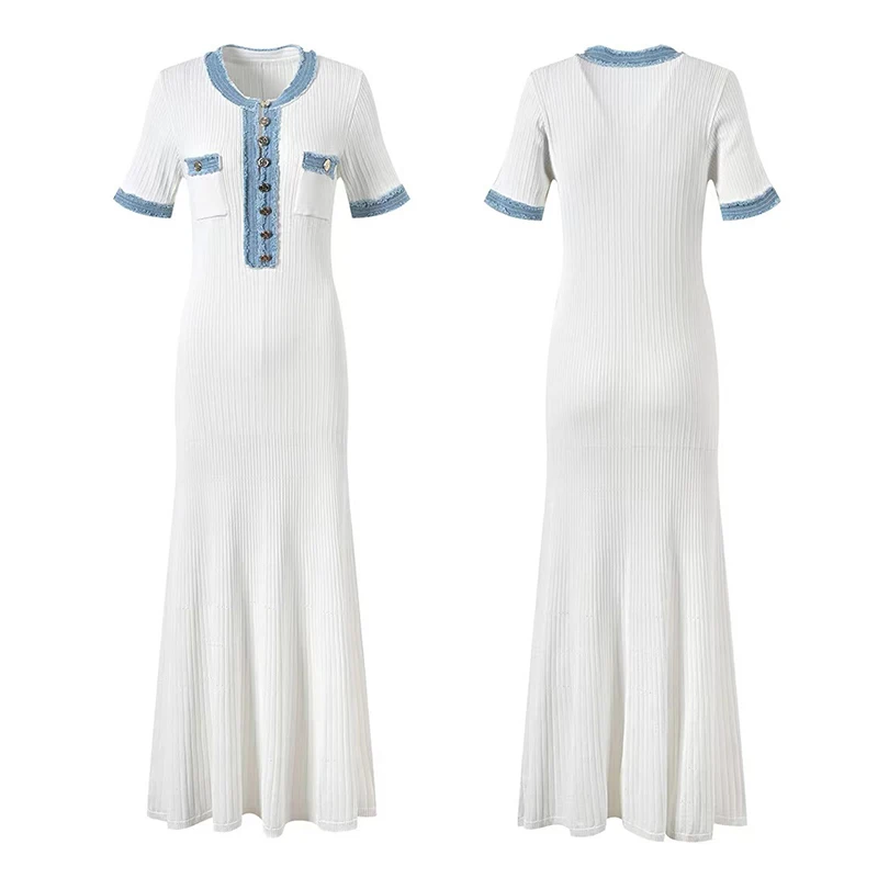 ZYHT 21541 Wholesale Crew Neck High Waist Casual Dresses Elegant Lace Velvet Mermaid Hem Ruched Long Sleeve Dresses for Women