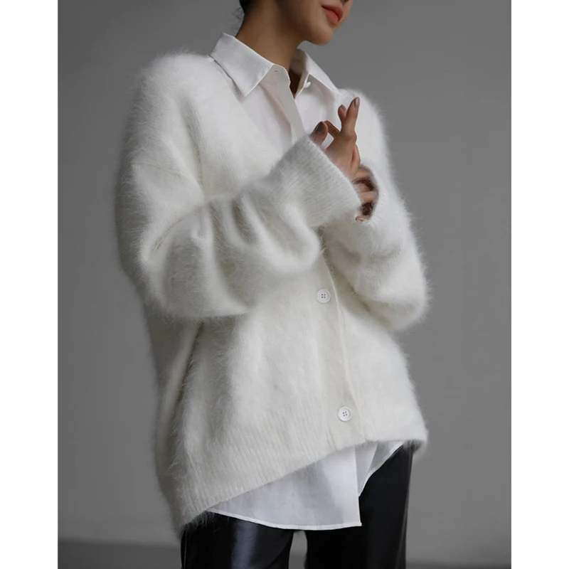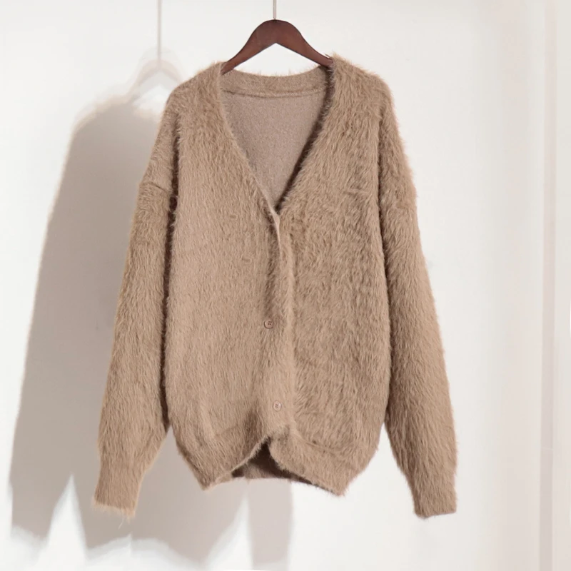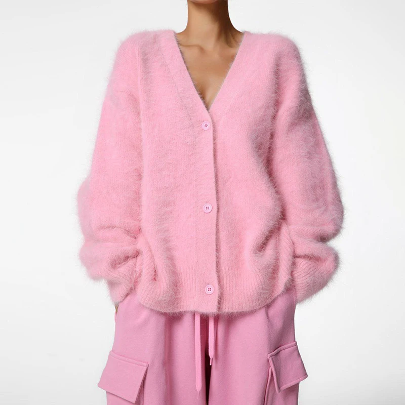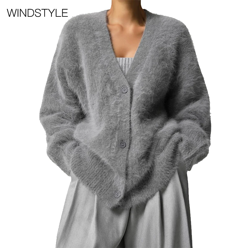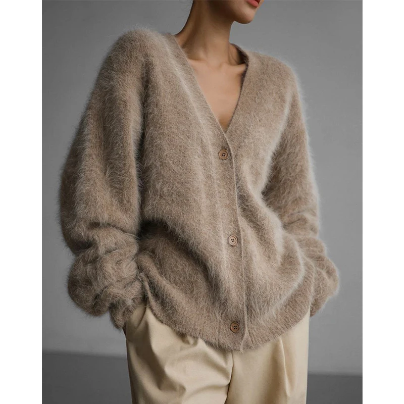 Women's Casual Nylon Sweater Cardigan Long-Sleeved V-Neck Coat with Button Decoration Knitted Solid Pattern for Autumn